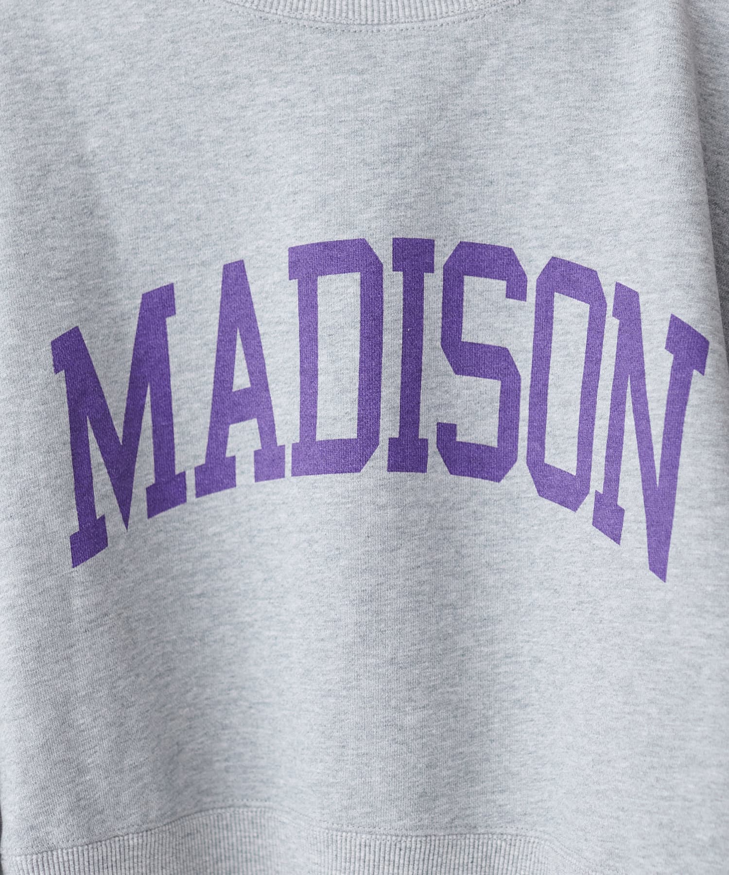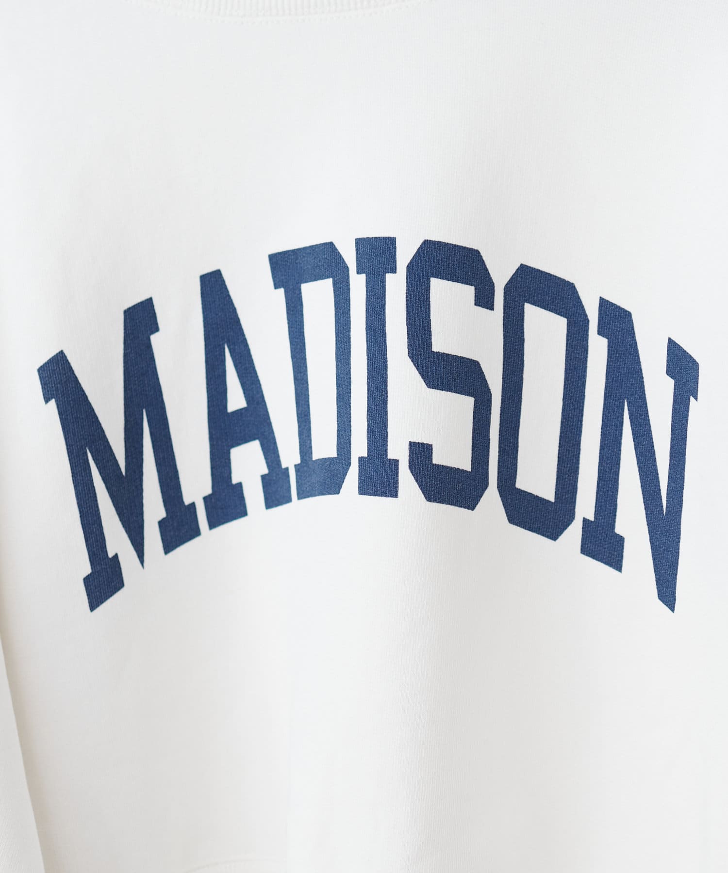 アメリカンスクールをイメージしたカレッジ風のロゴは、プリント後にヴィンテージ加工を施しused感をプラス。