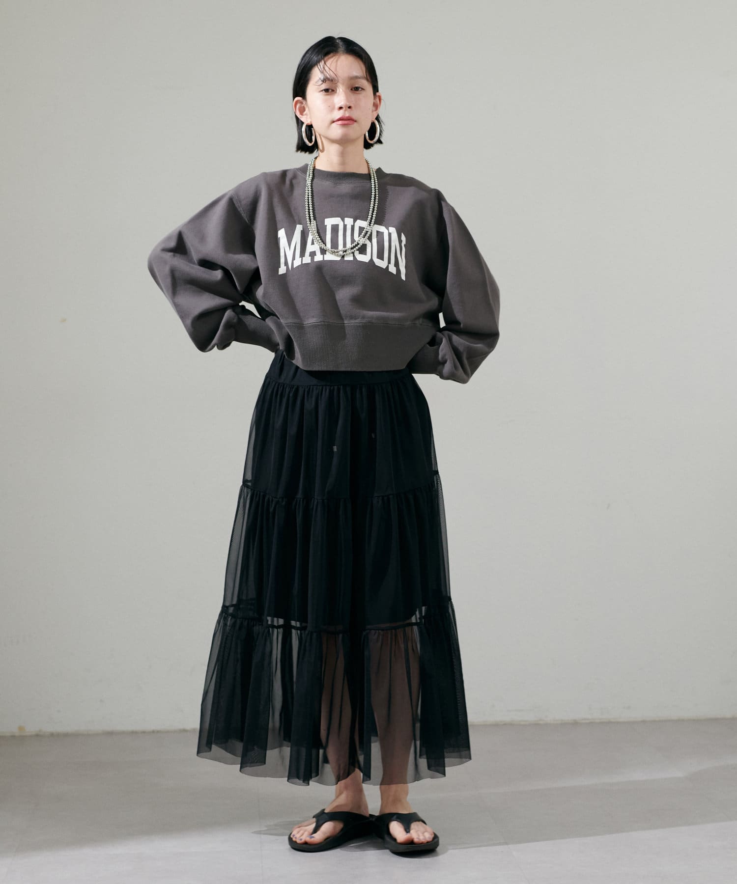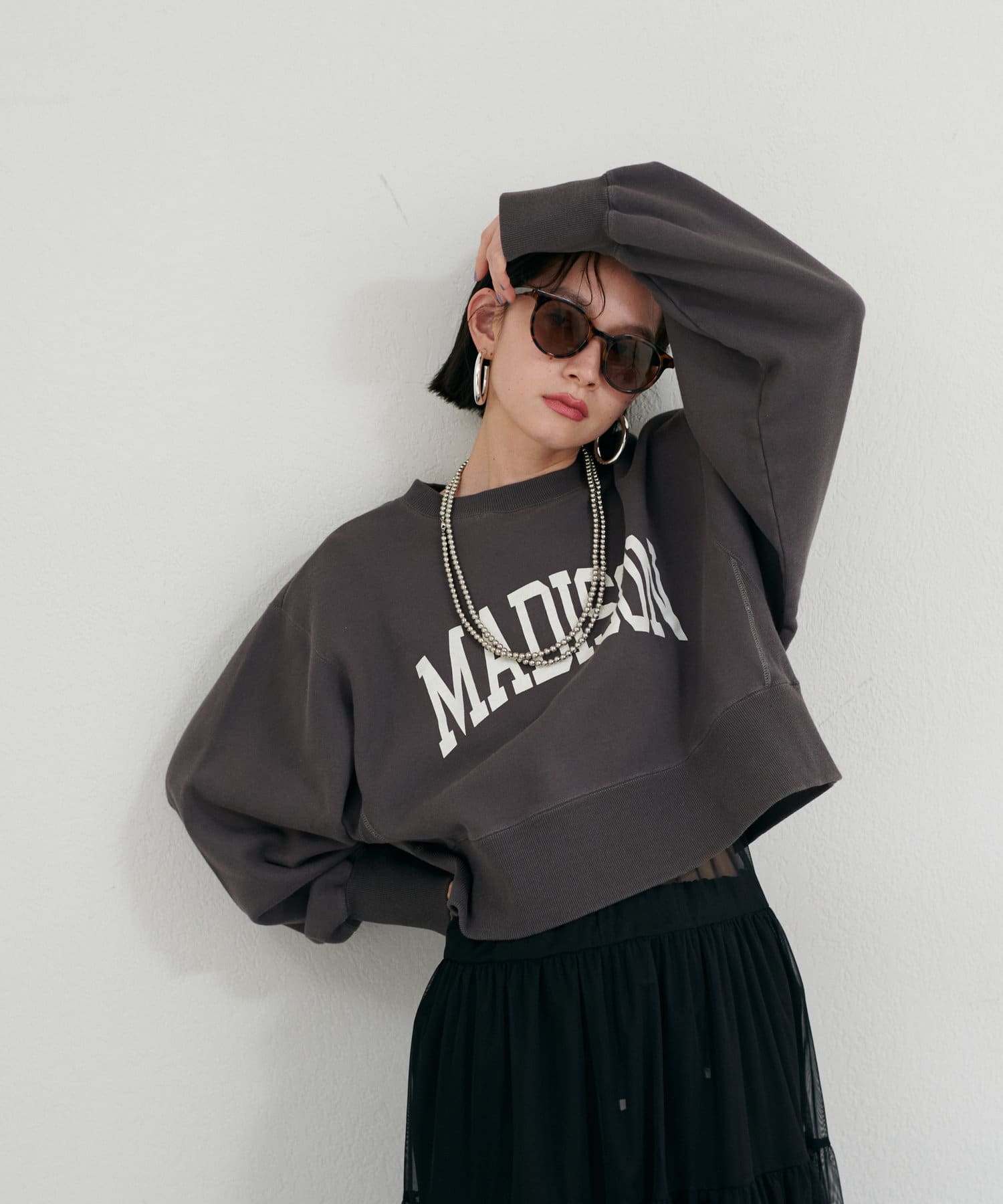 コンパクトなボックスシルエットで抜け感を表現した大人のトレーナー。