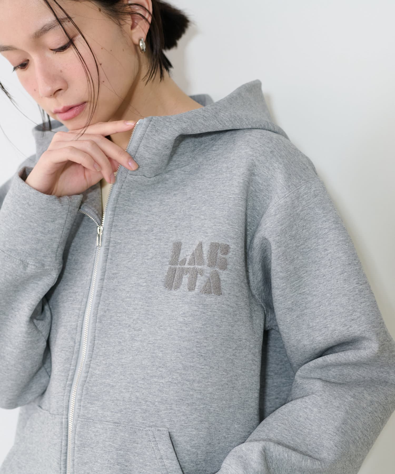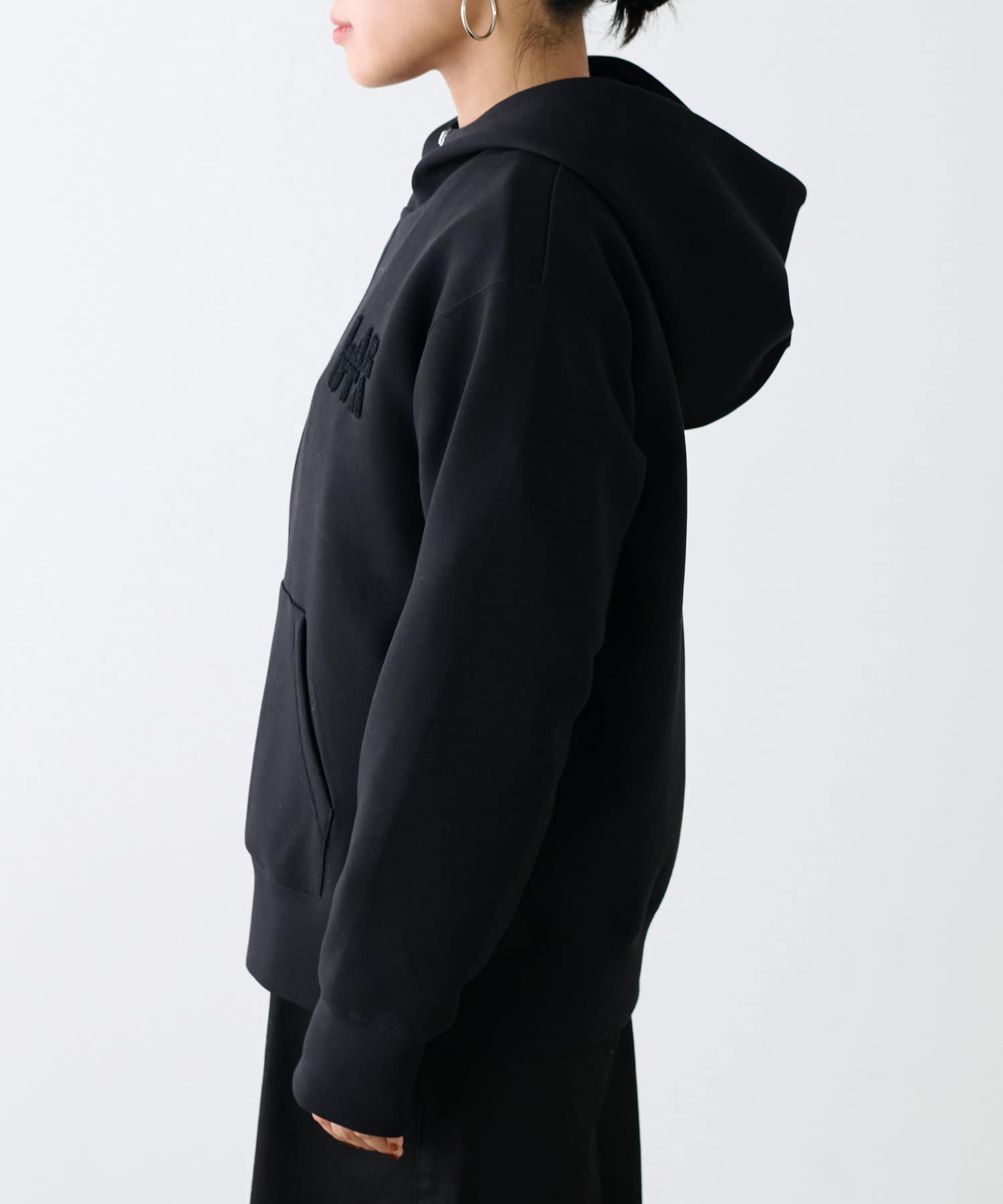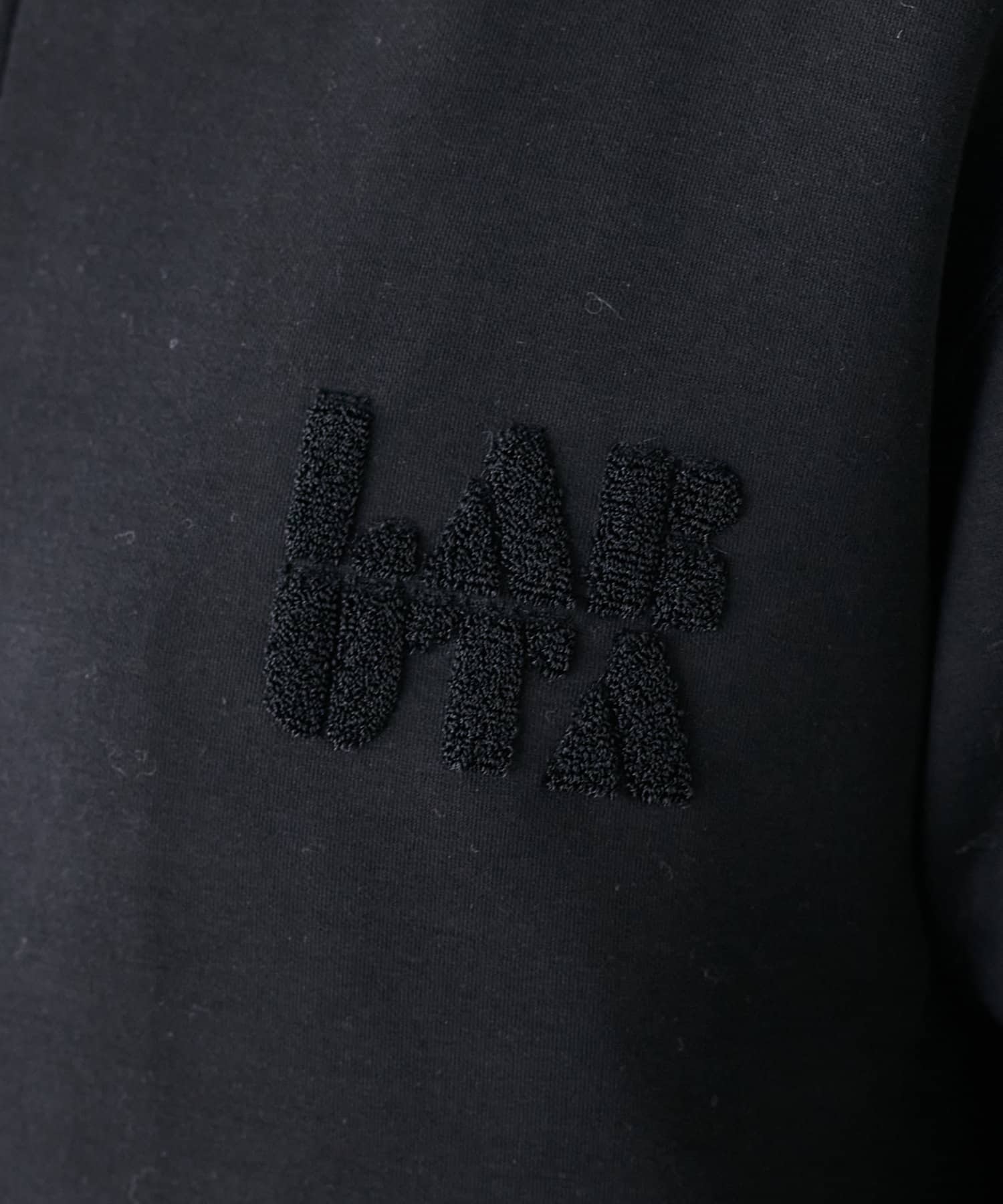 胸元に施されたロゴ刺繍はボディカラーに合わせた配色で、さり気なく上品な印象に。
