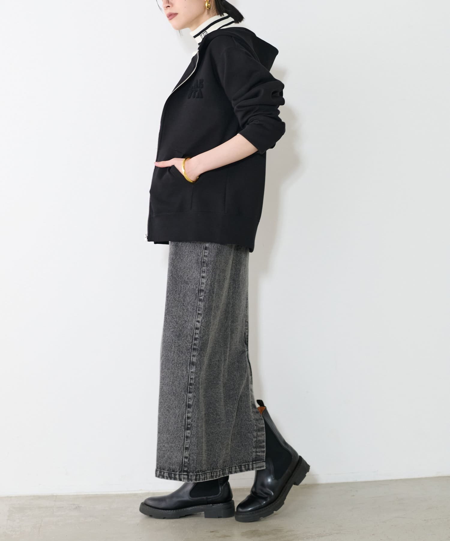 デニムやスラックスと相性抜群なのはもちろん、落ち感のあるナロースカートやマーメイドシルエットのスカートを合わせると、トレンドライクでレディな着こなしに。