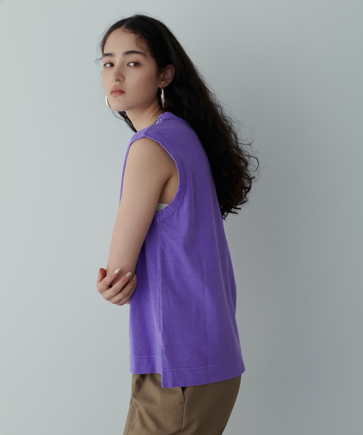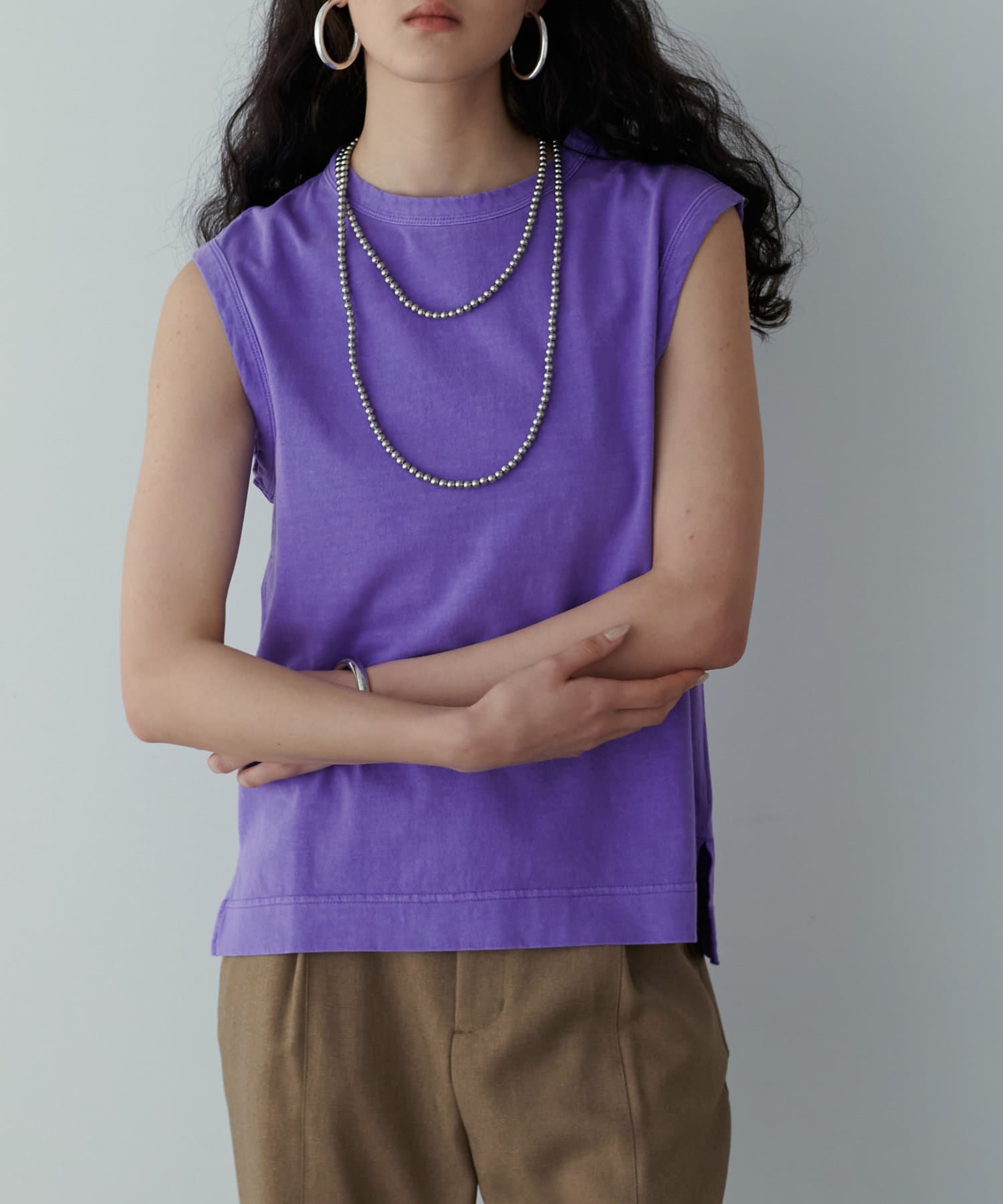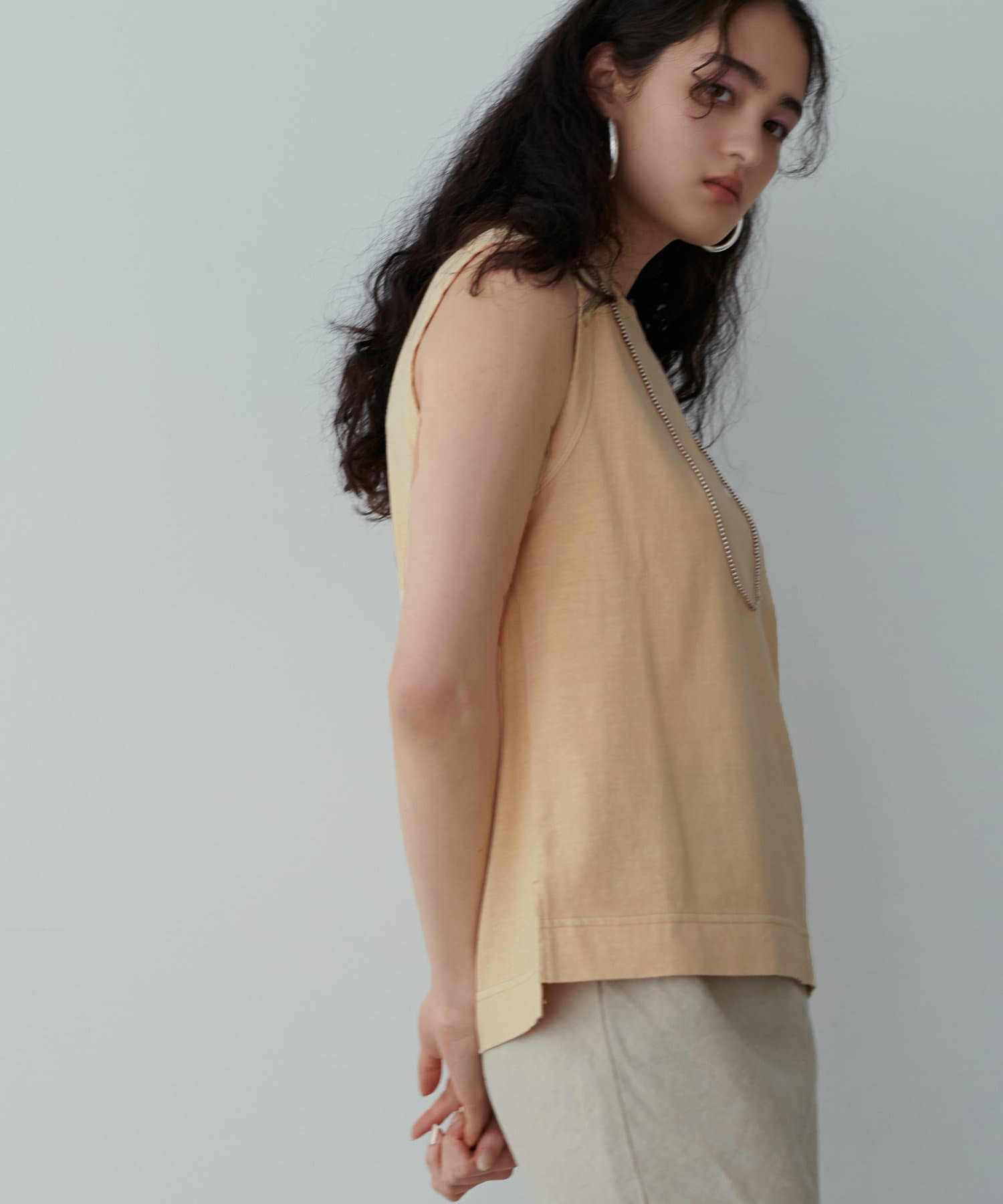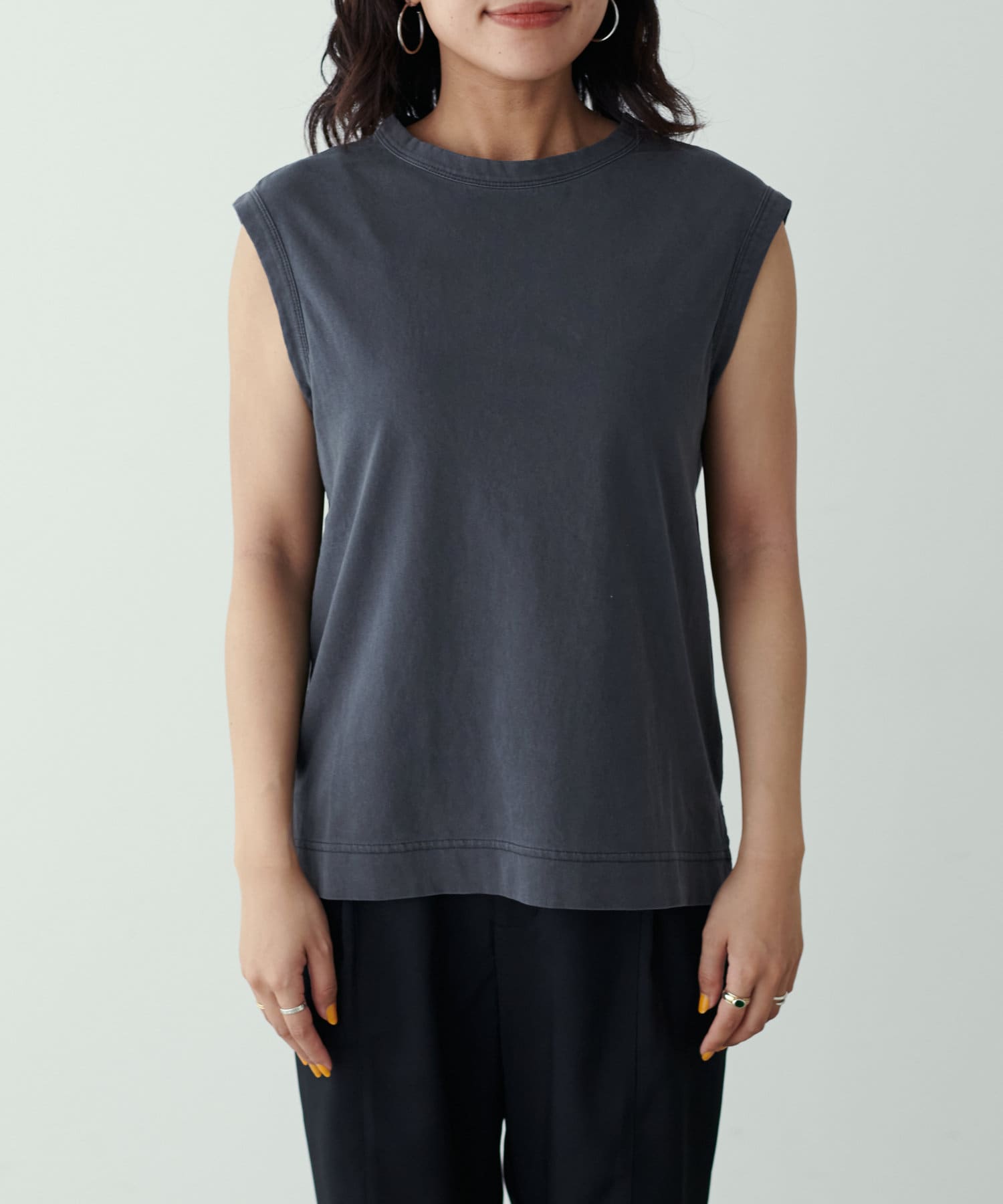 さらりと着られる生地感で、1枚使いはもちろん、インナーとしても活躍してくれるシーズンレスなノースリーブTシャツ。