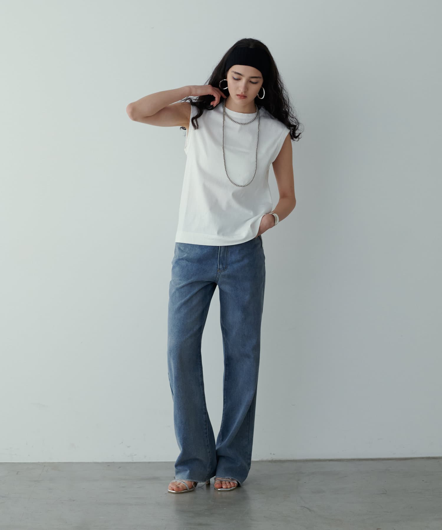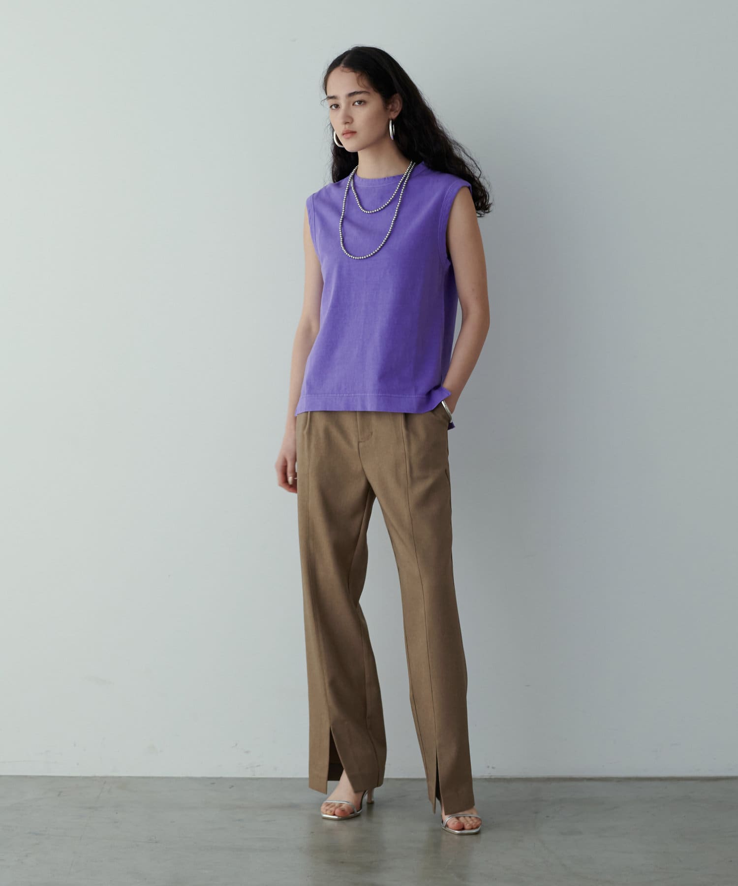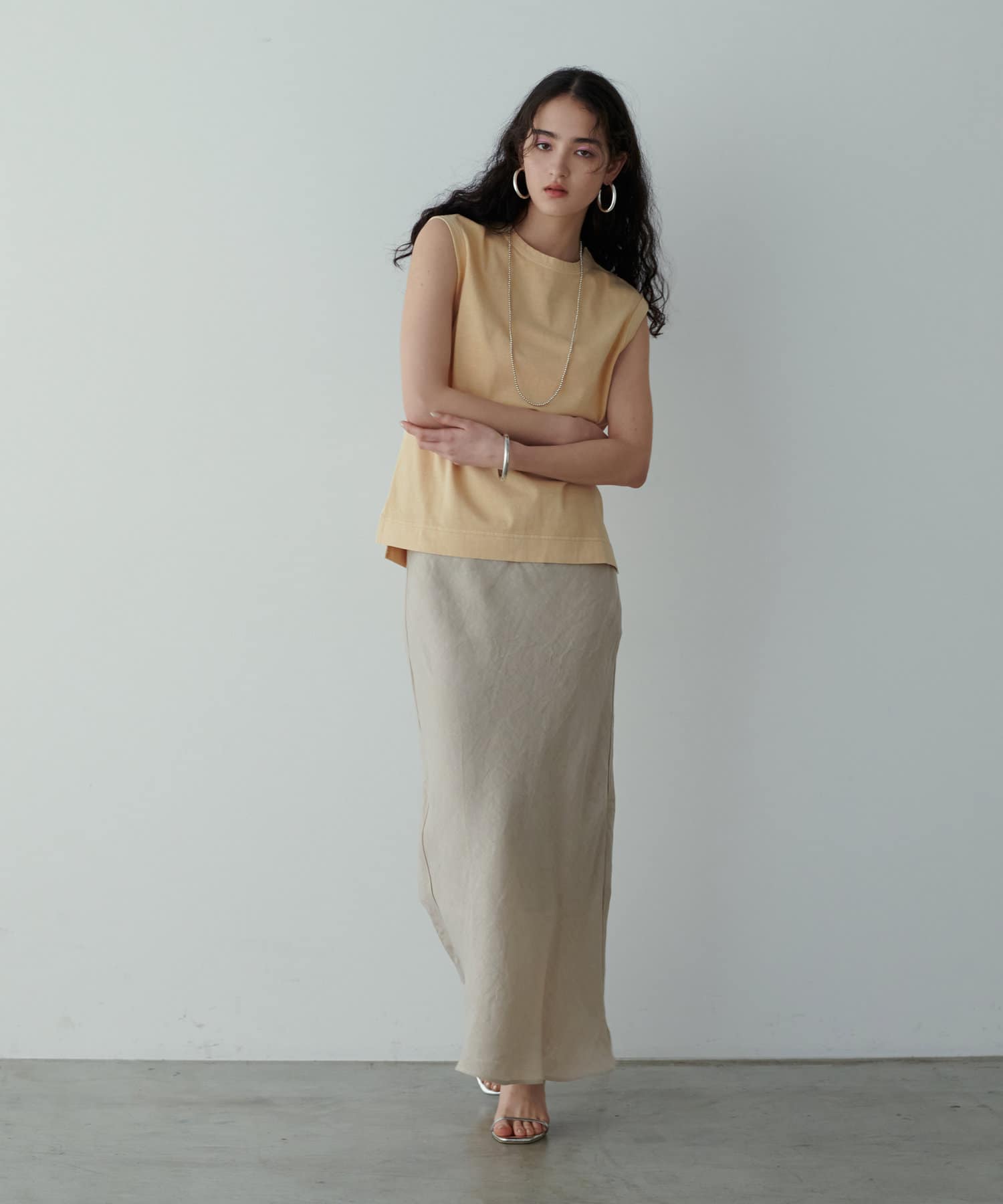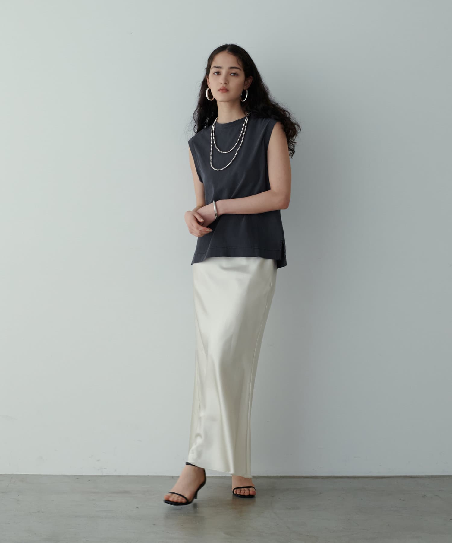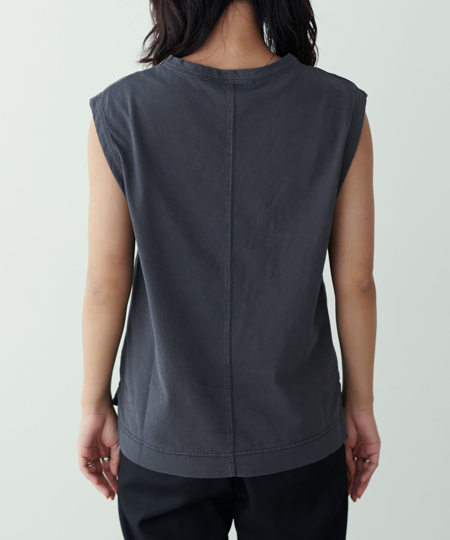 さらりと着られる生地感で、1枚使いはもちろん、インナーとしても活躍してくれるシーズンレスなノースリーブTシャツ。
