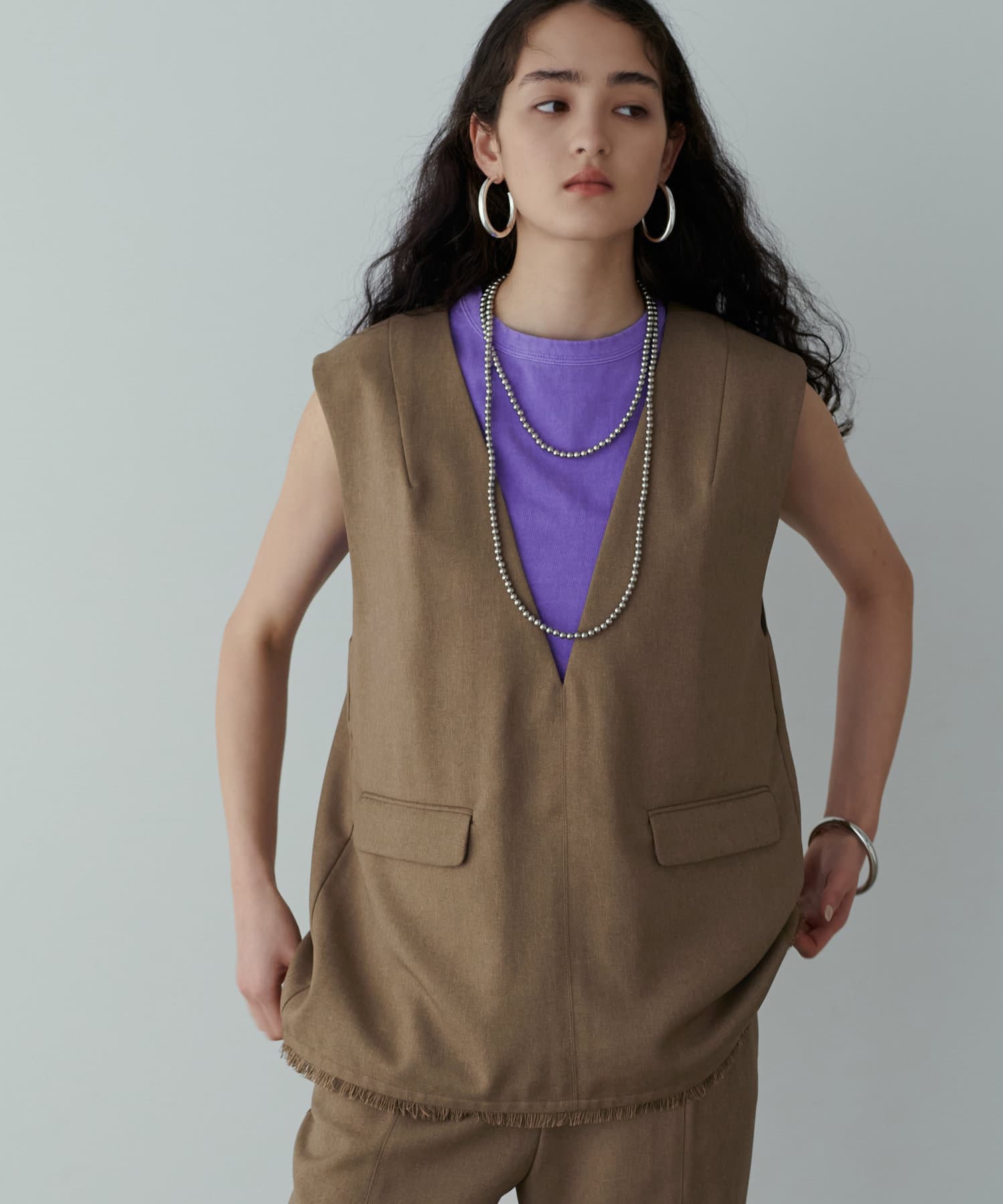 1枚使いはもちろん、オーバーサイズのシャツを羽織ったり、トレンドのジレやベストを重ねたりとレイヤードスタイルも楽しめる1着。