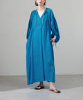 ブルー: ワンピース レーヨン80% リネン20% / インナー ポリエステル100%