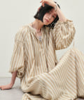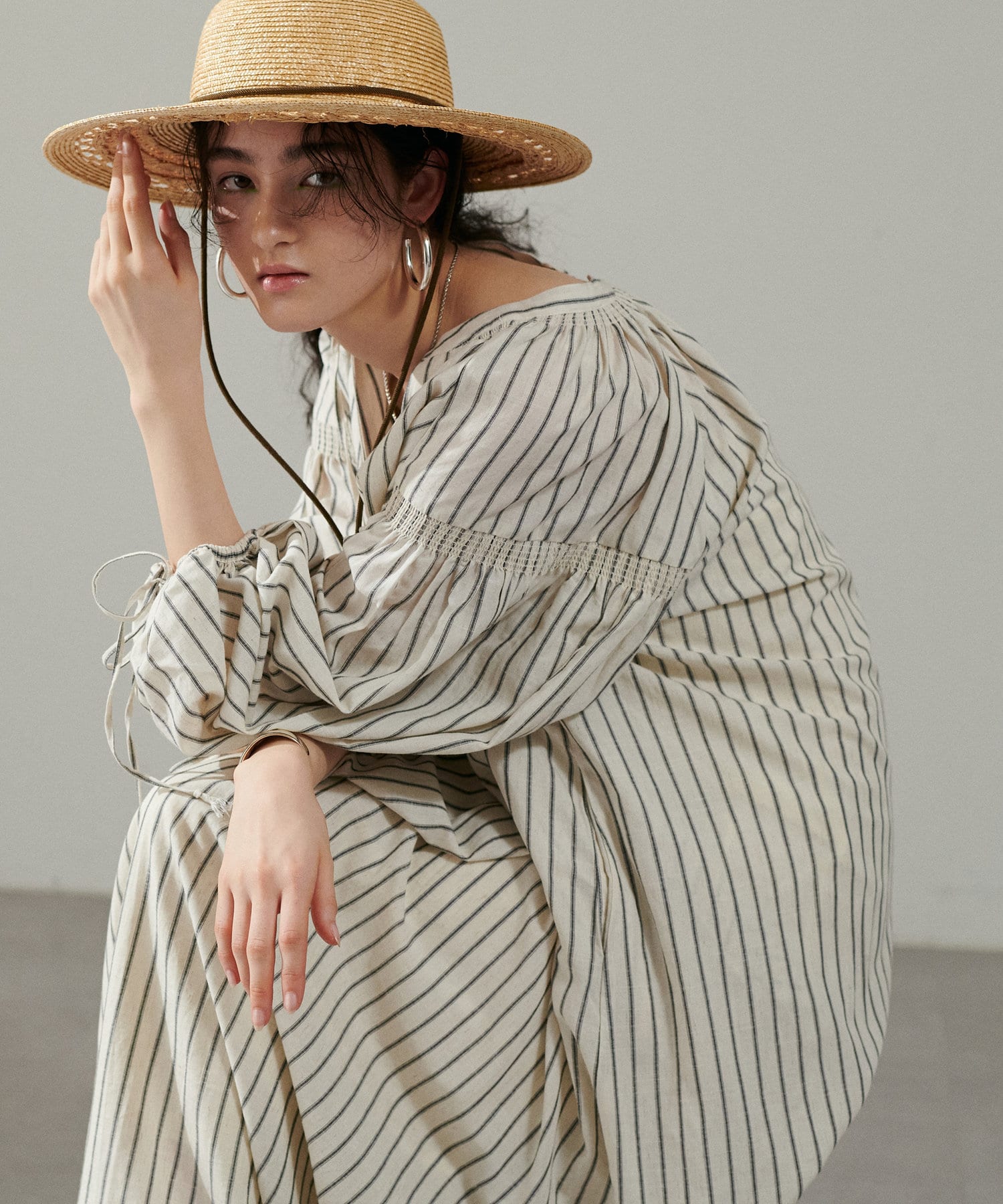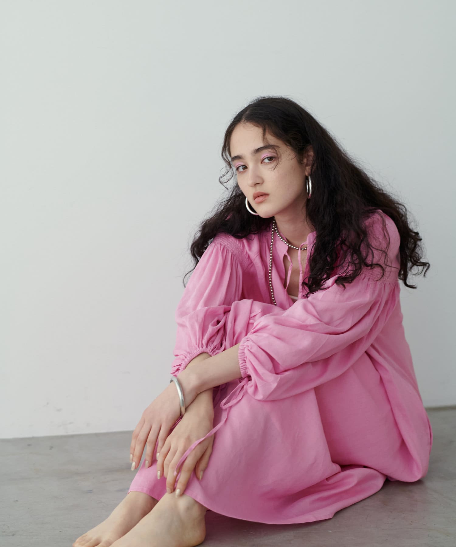 首周りと肩周りにはスモッキングを取り入れて表情豊かに。
