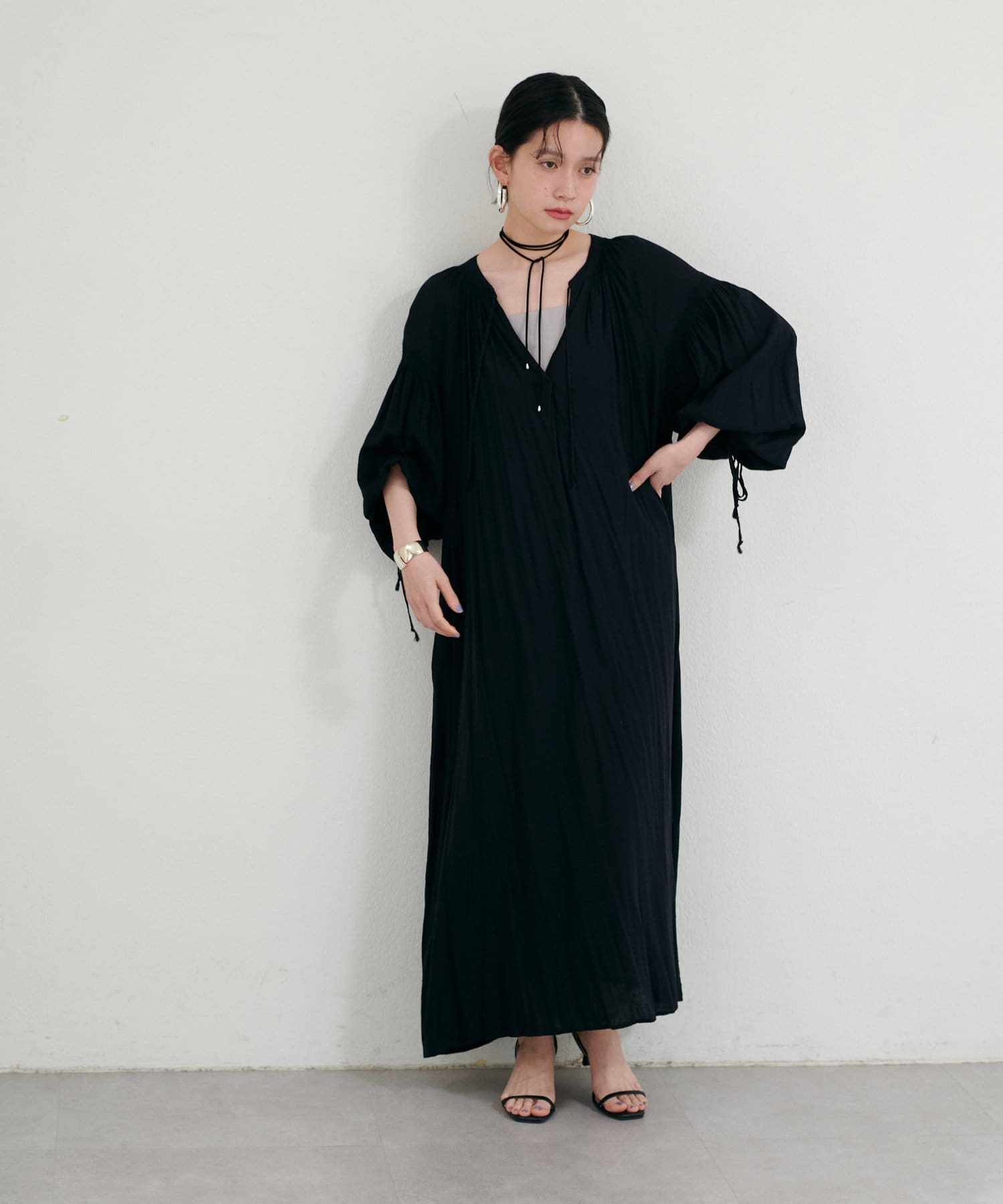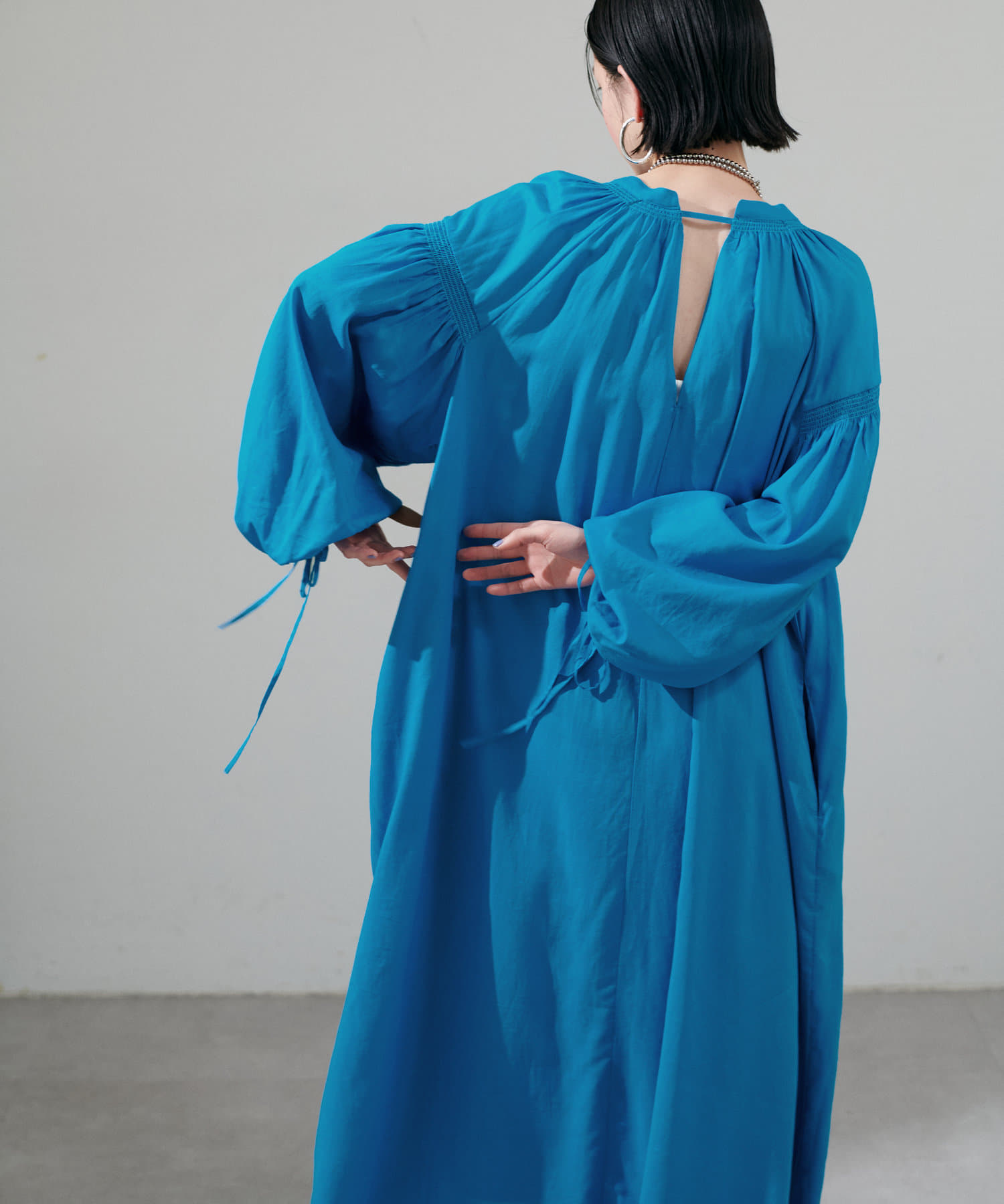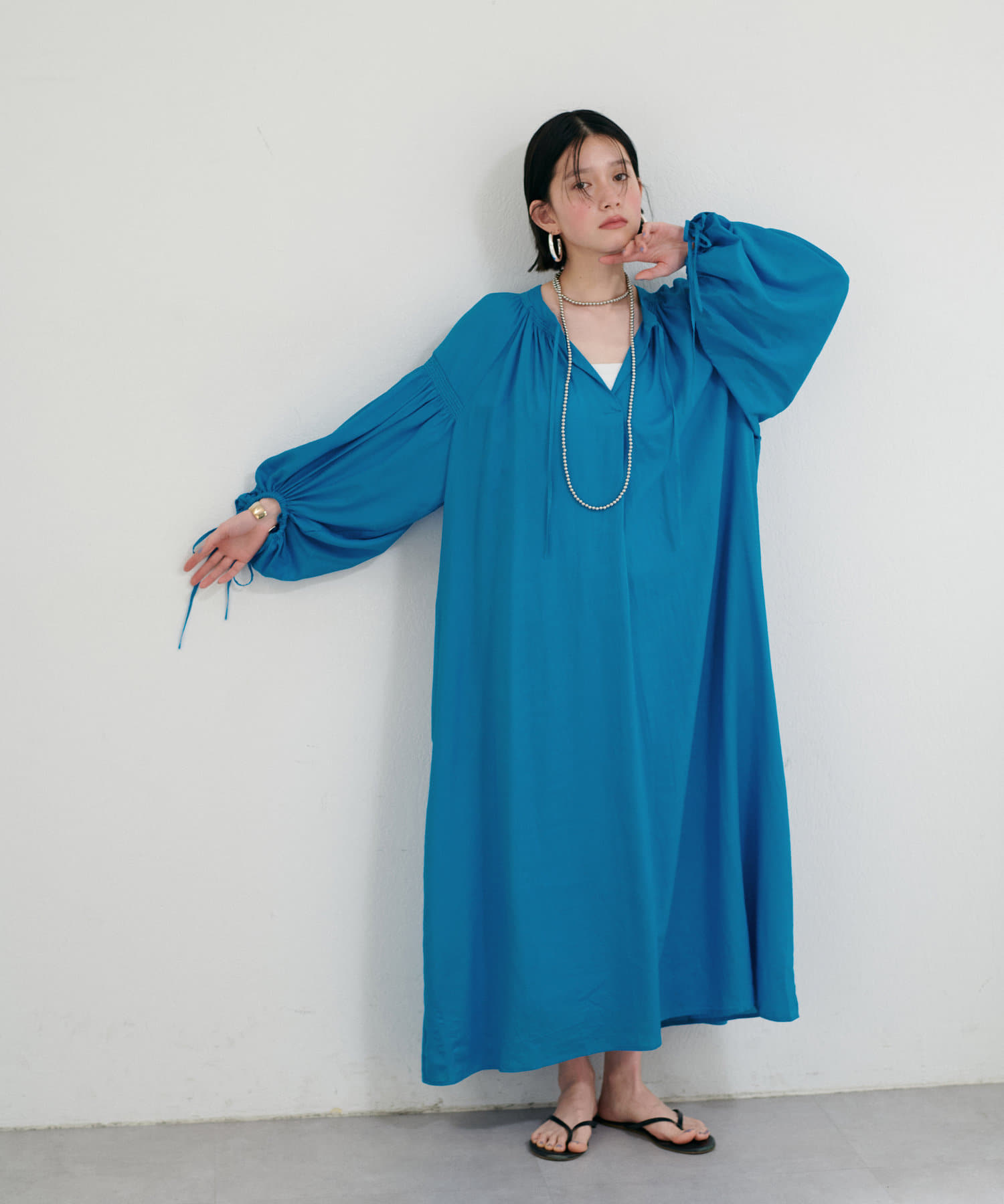 ボリュームスリーブ大人のたっぷりギャザーワンピース