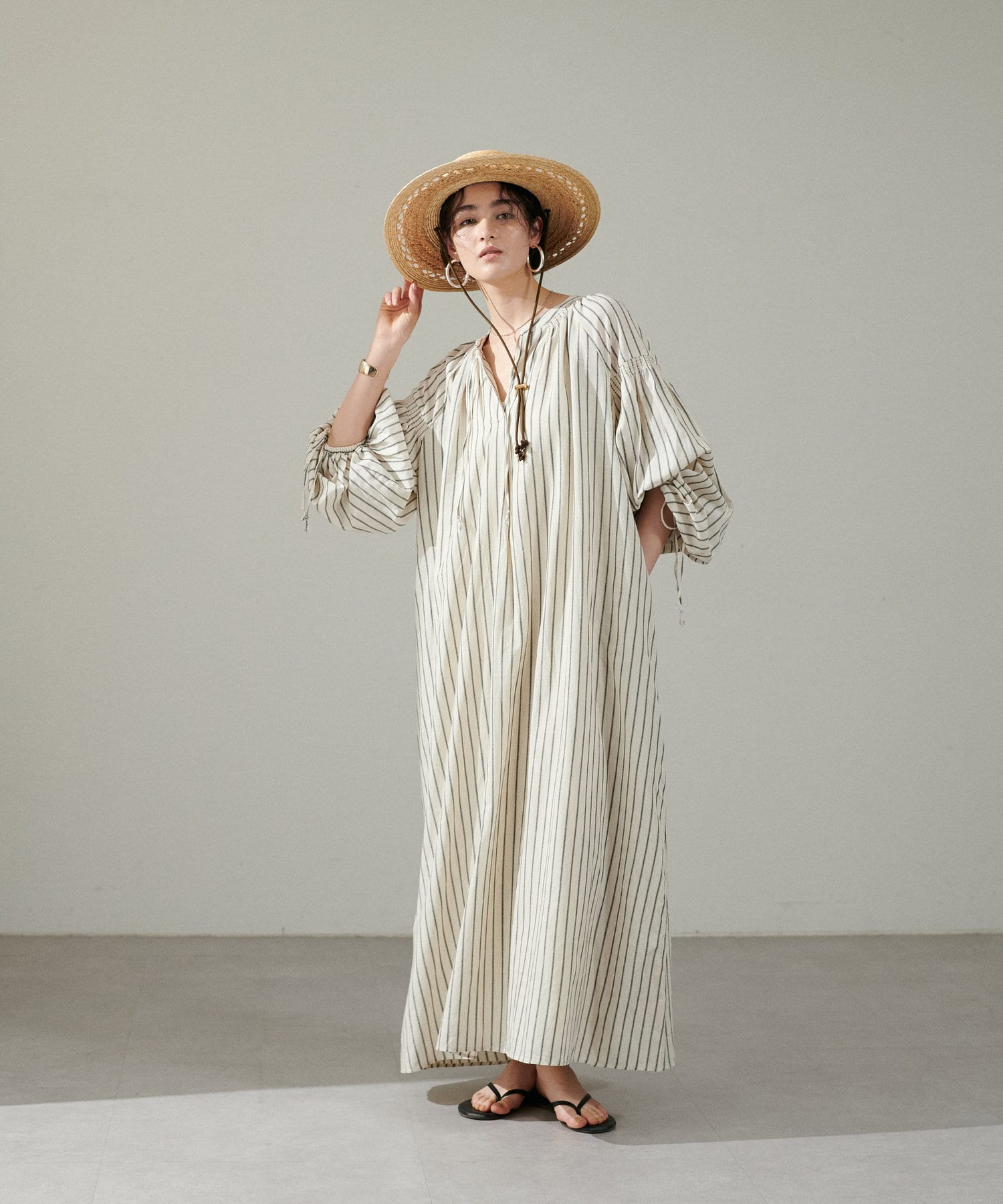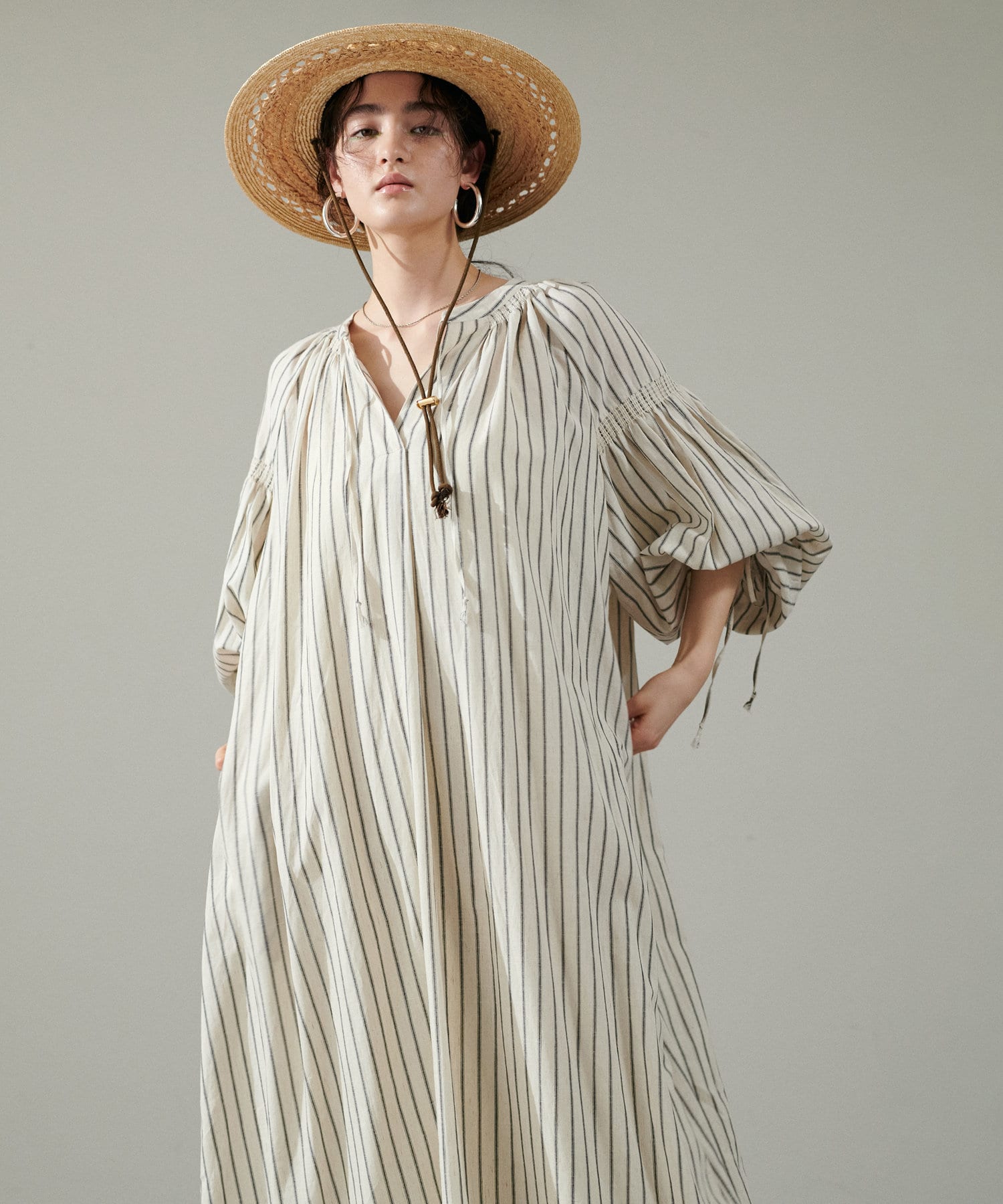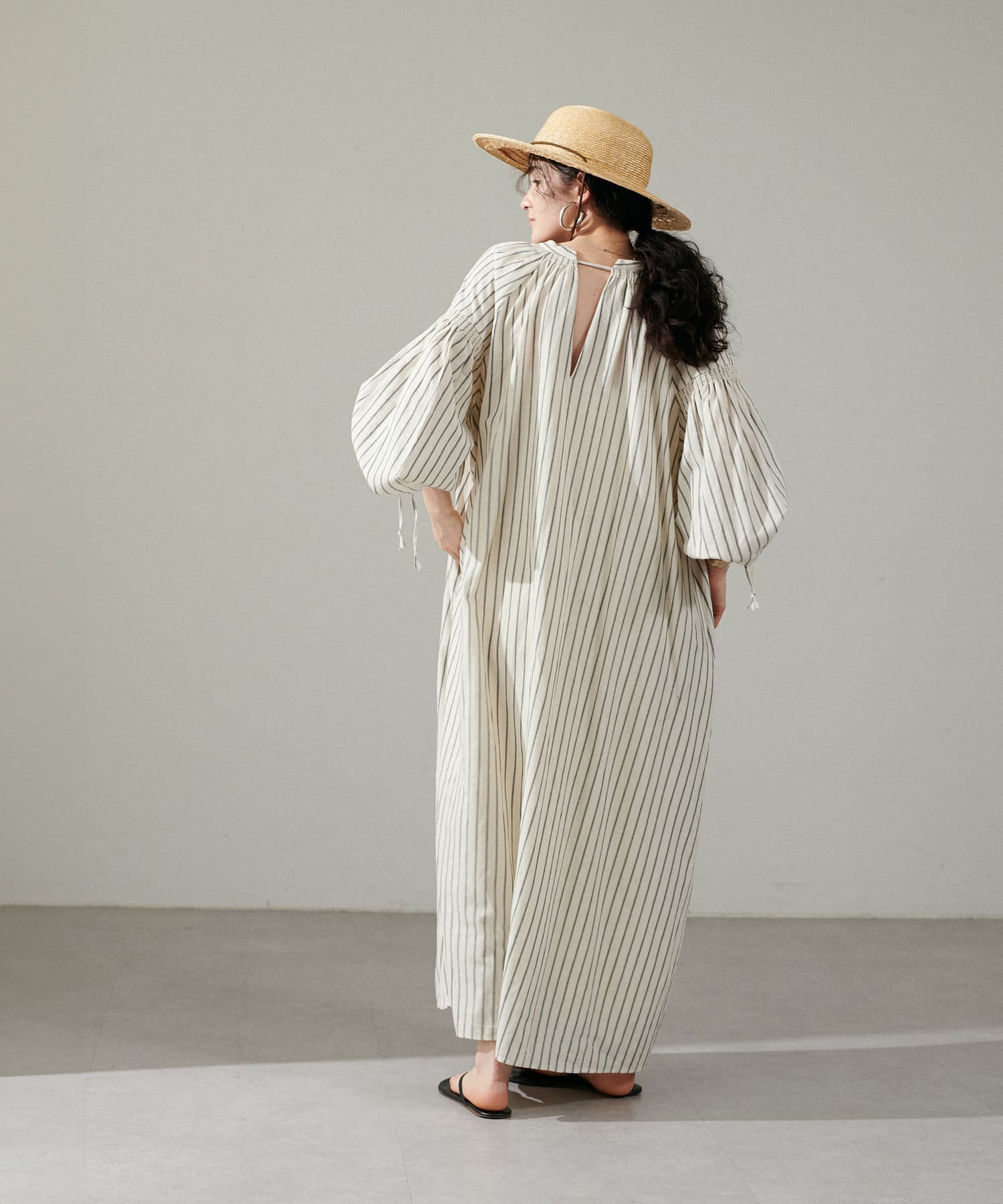 ボリュームスリーブ大人のたっぷりギャザーワンピース