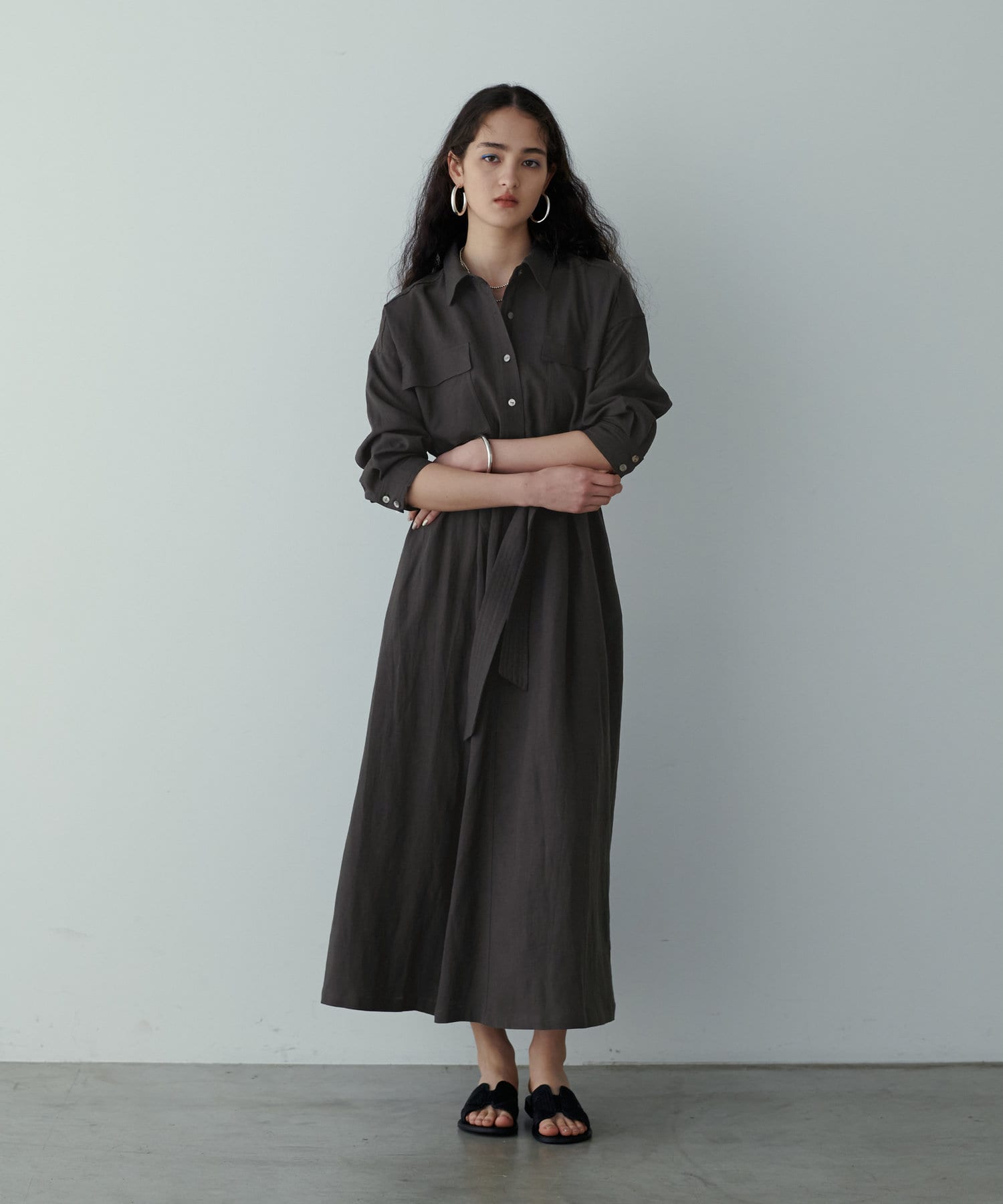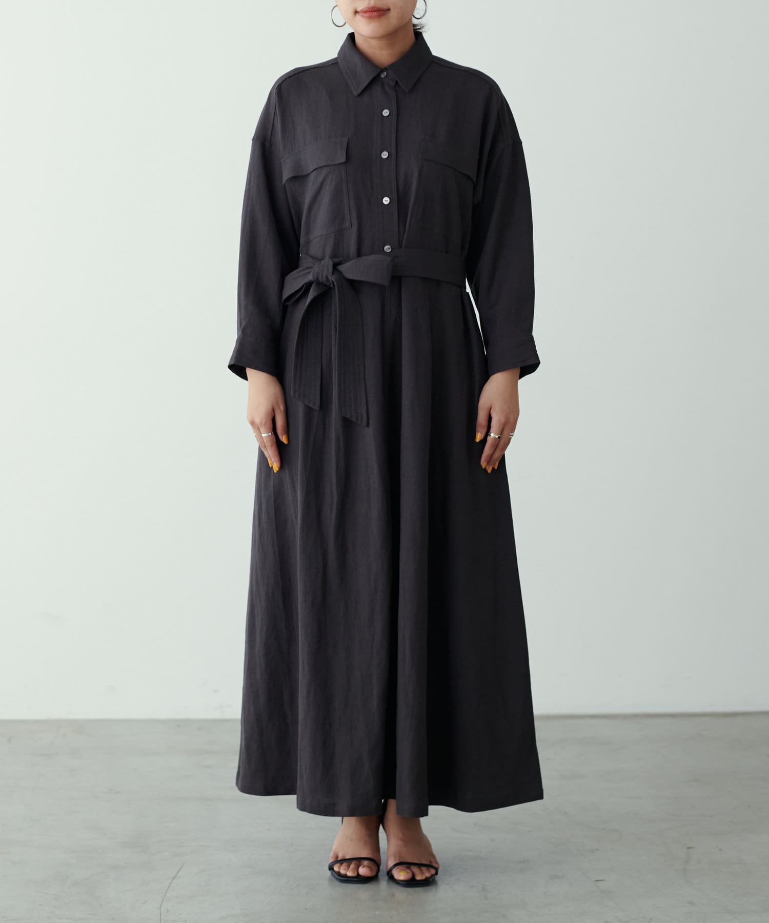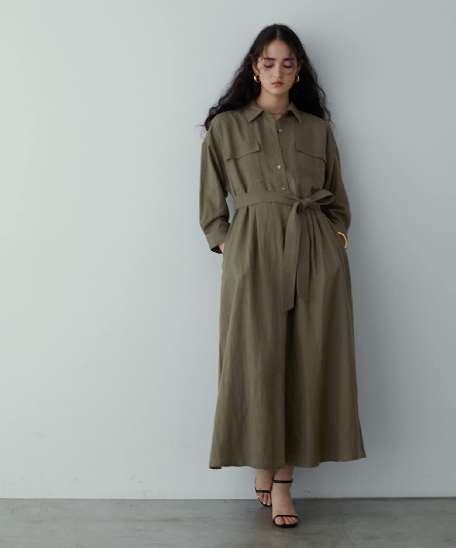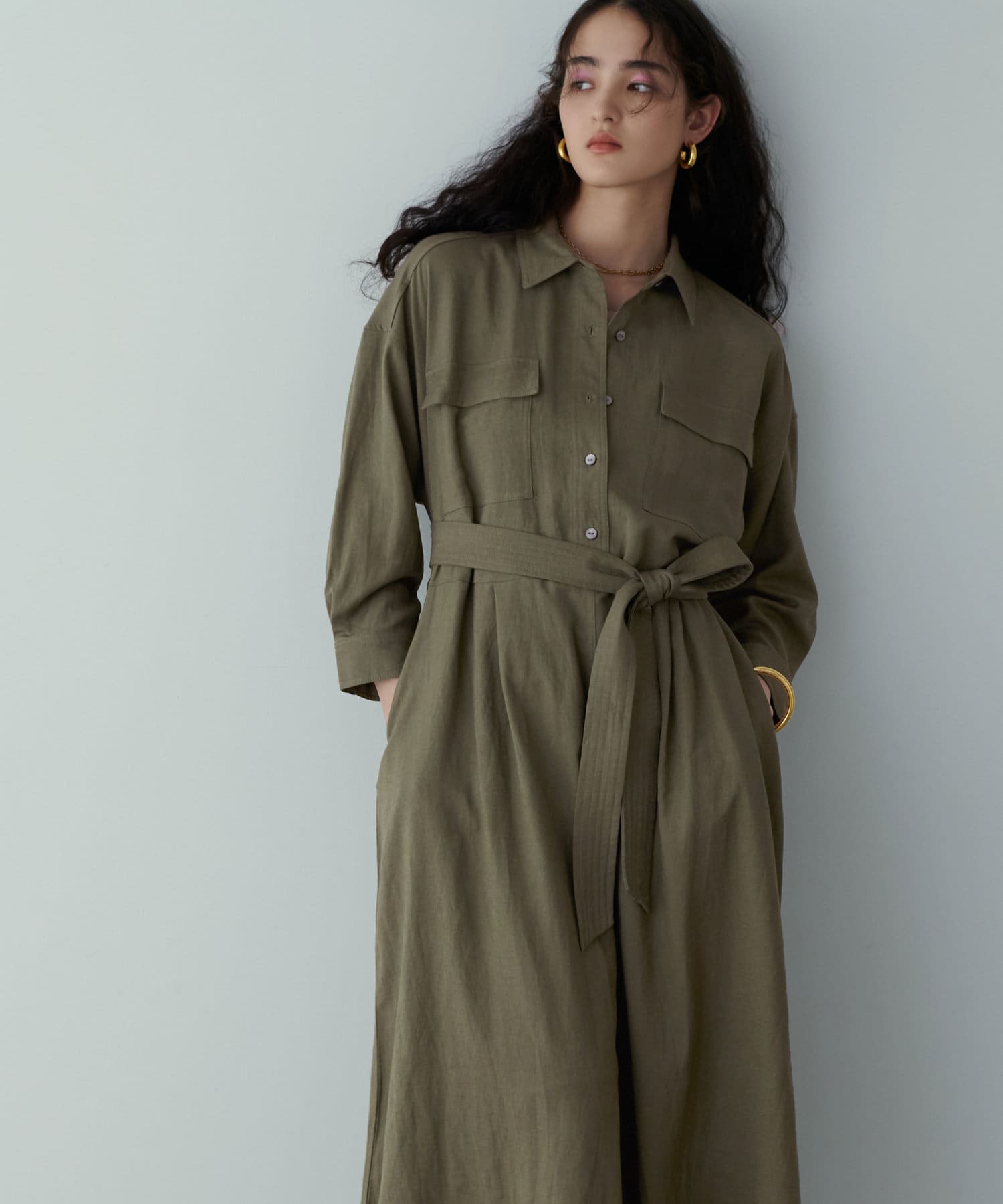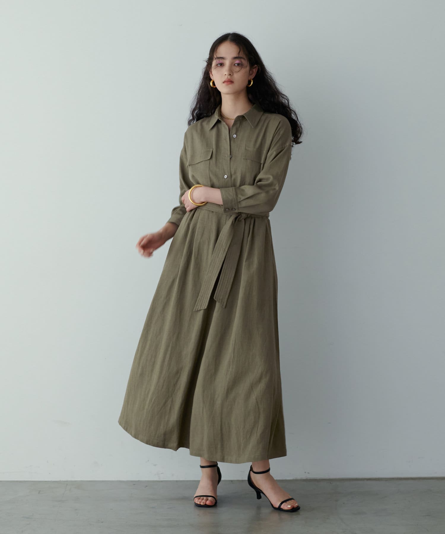 • LARUTA(ラルータ) 麻レーヨンミリタリーシャツワンピース