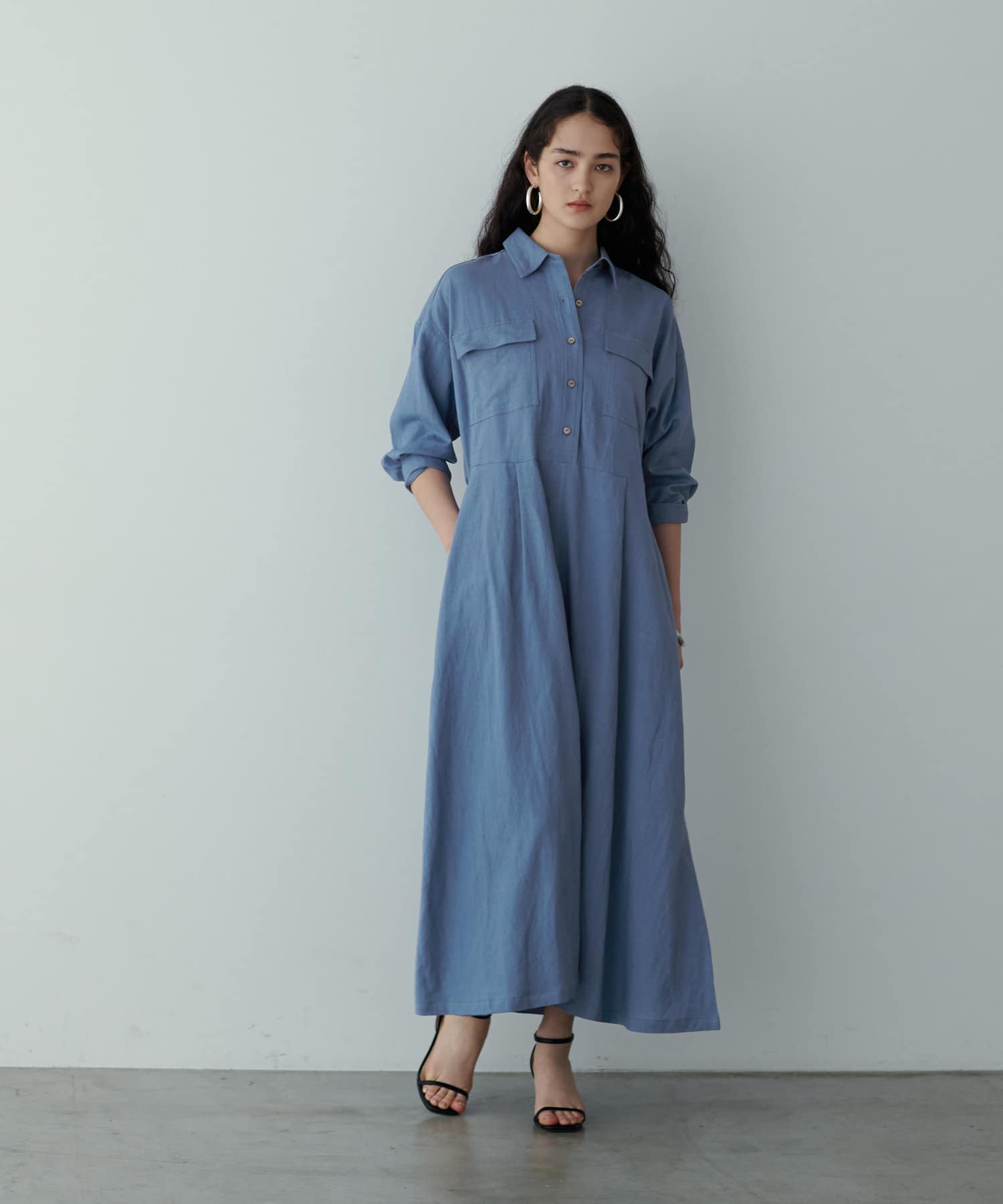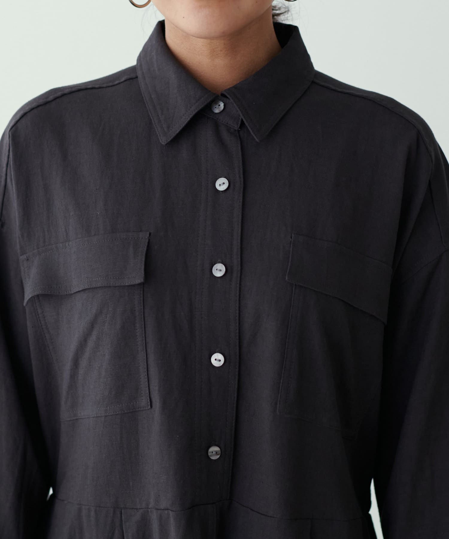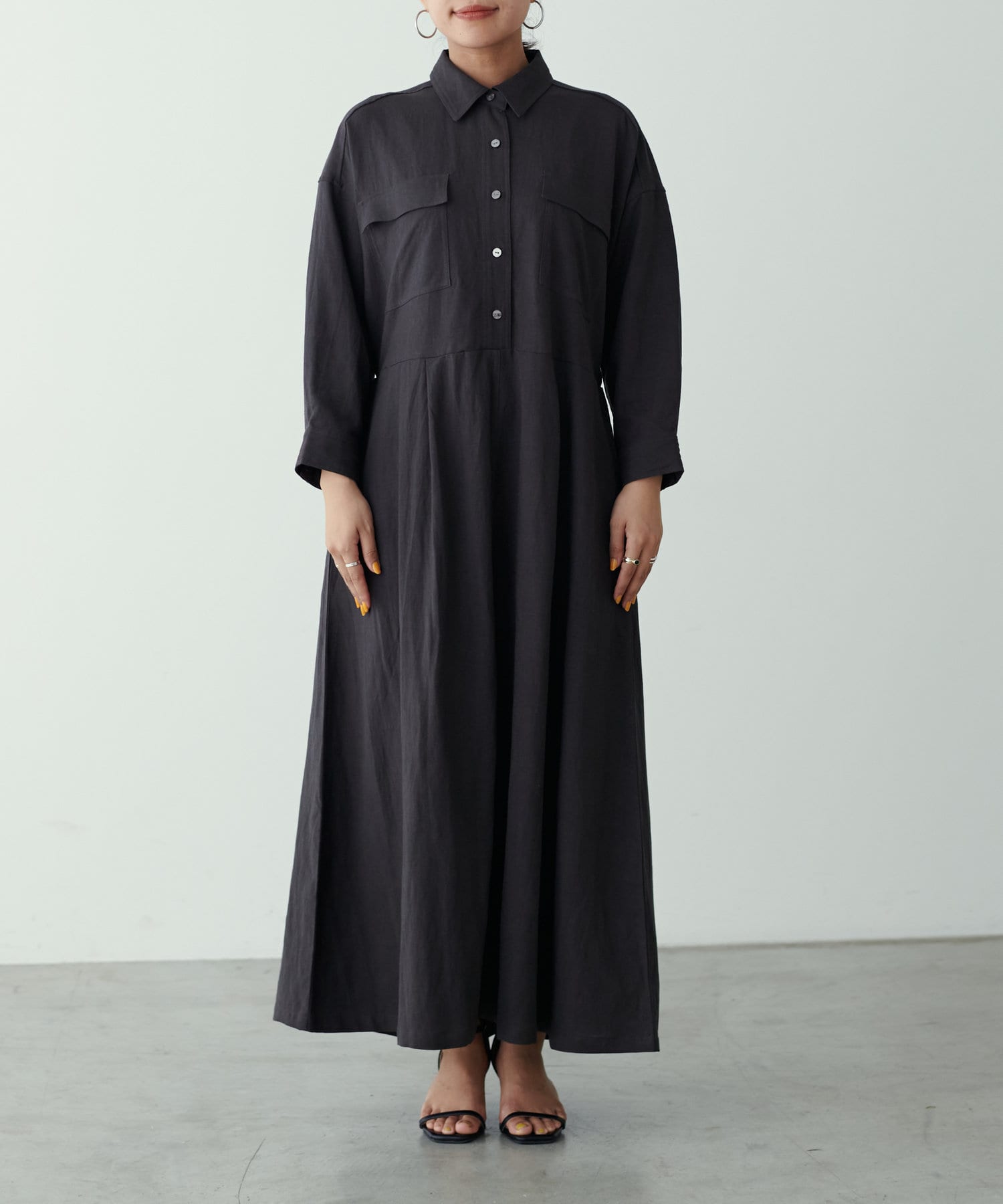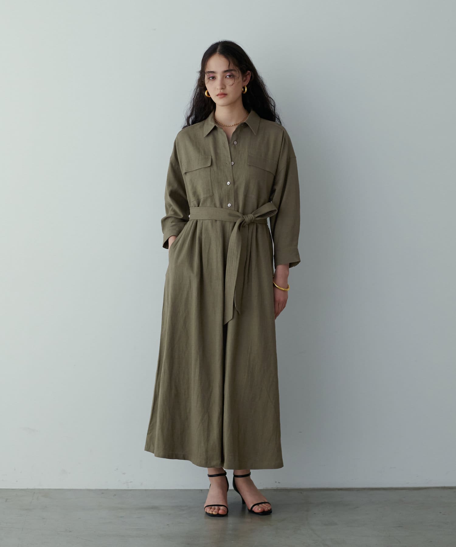 • LARUTA(ラルータ) 麻レーヨンミリタリーシャツワンピース