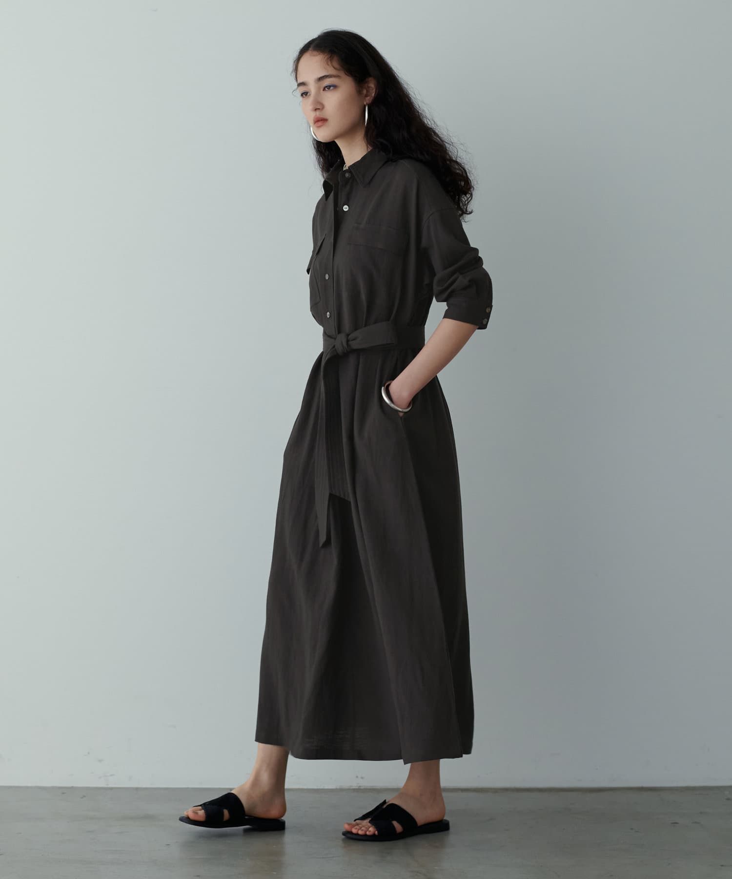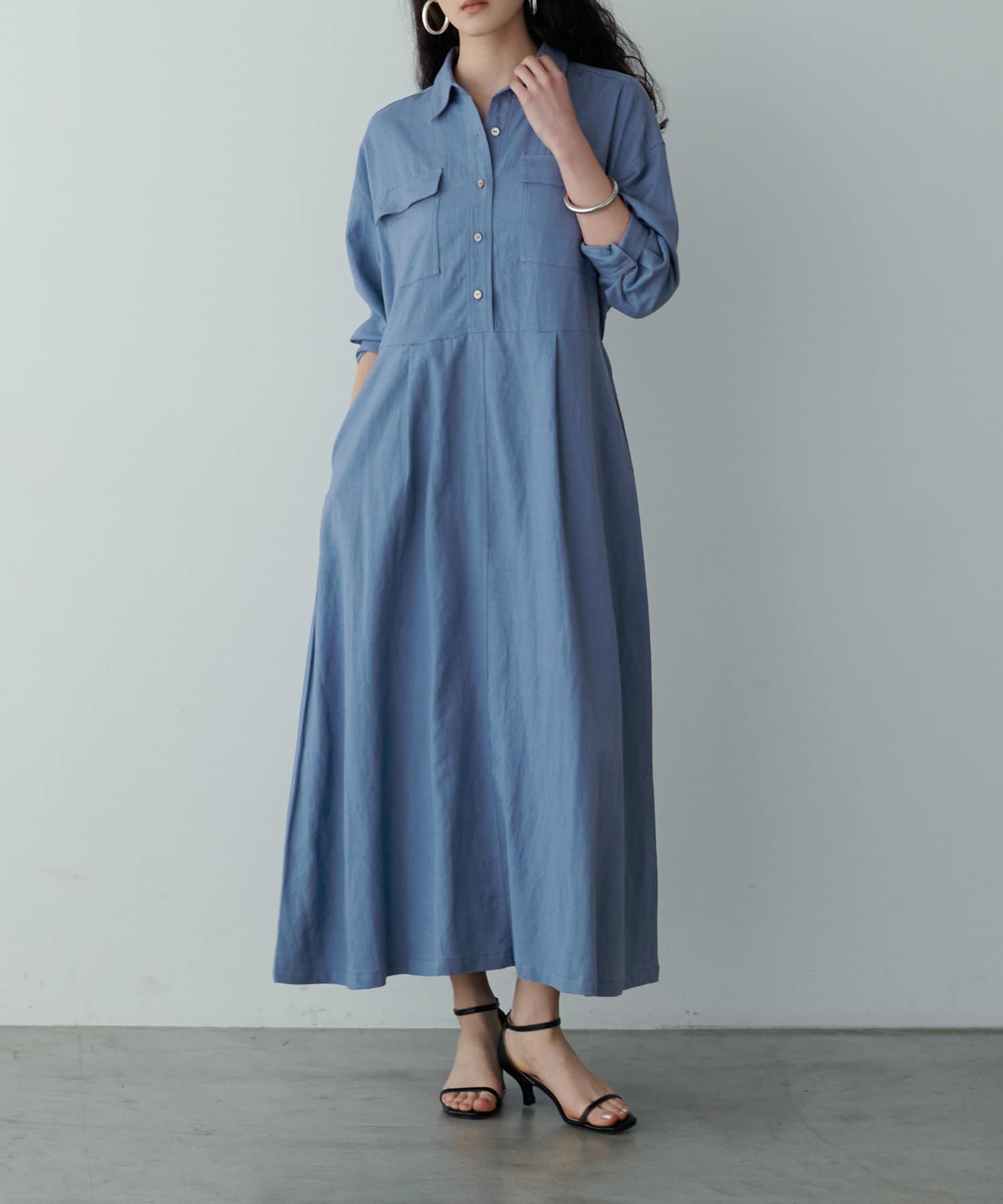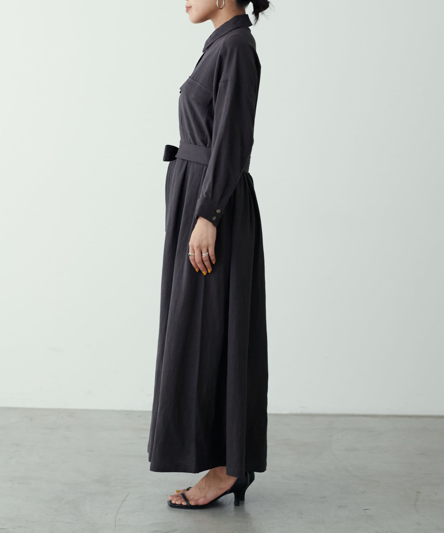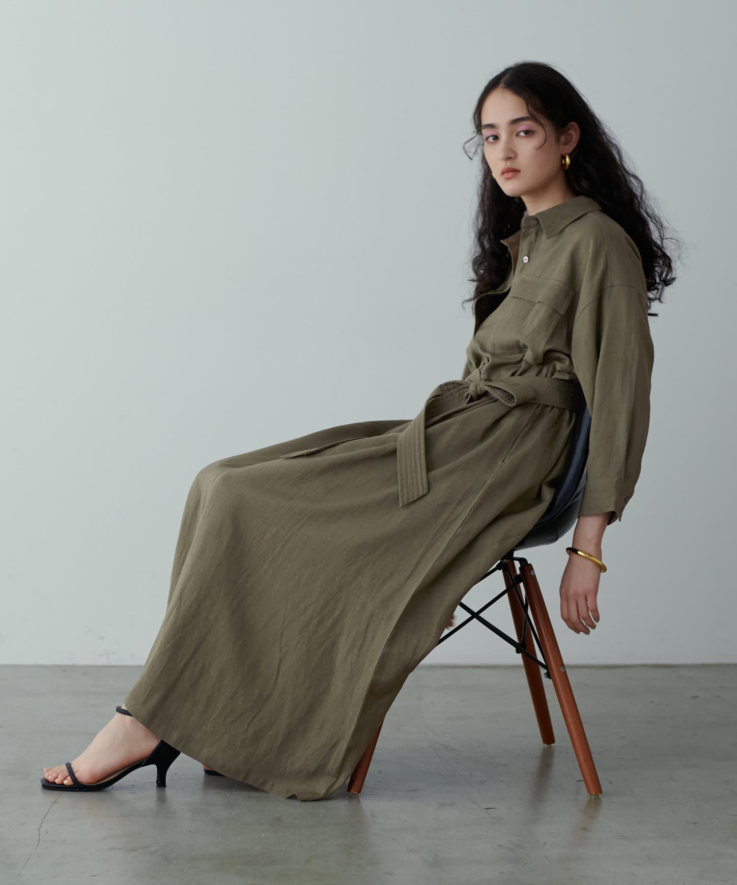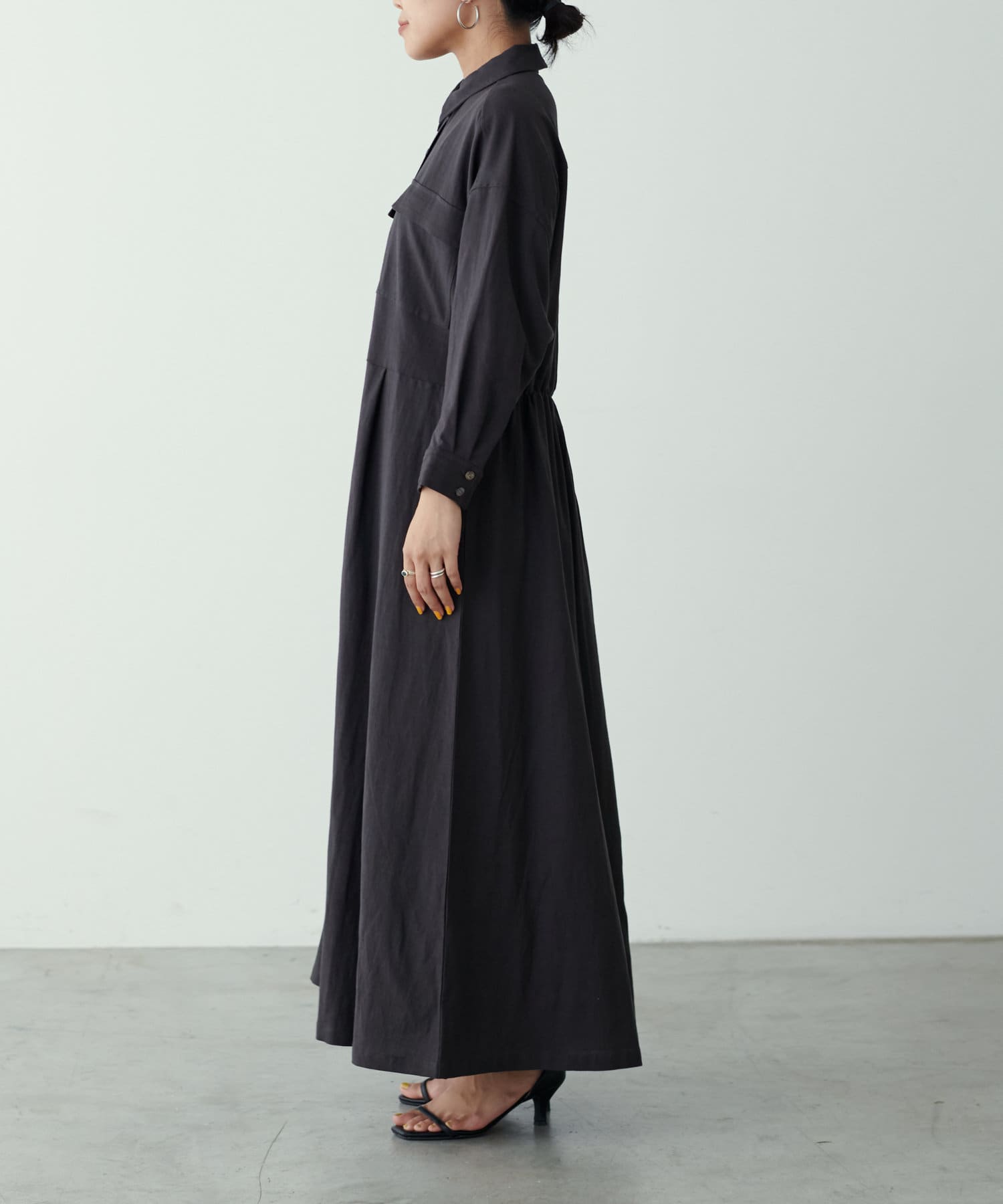 • LARUTA(ラルータ) 麻レーヨンミリタリーシャツワンピース