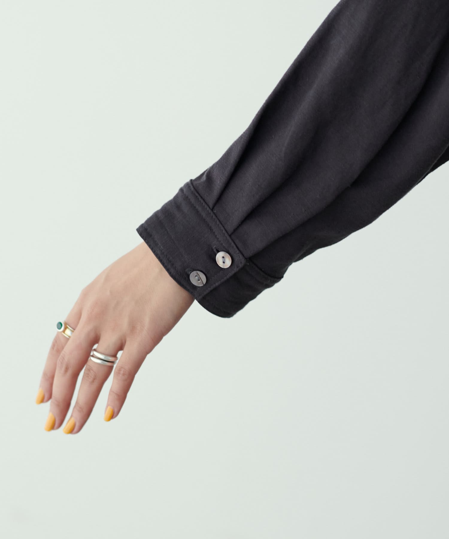 落ち感のある素材でボディラインを拾わず、リラクシーな着心地が魅力の1着です。