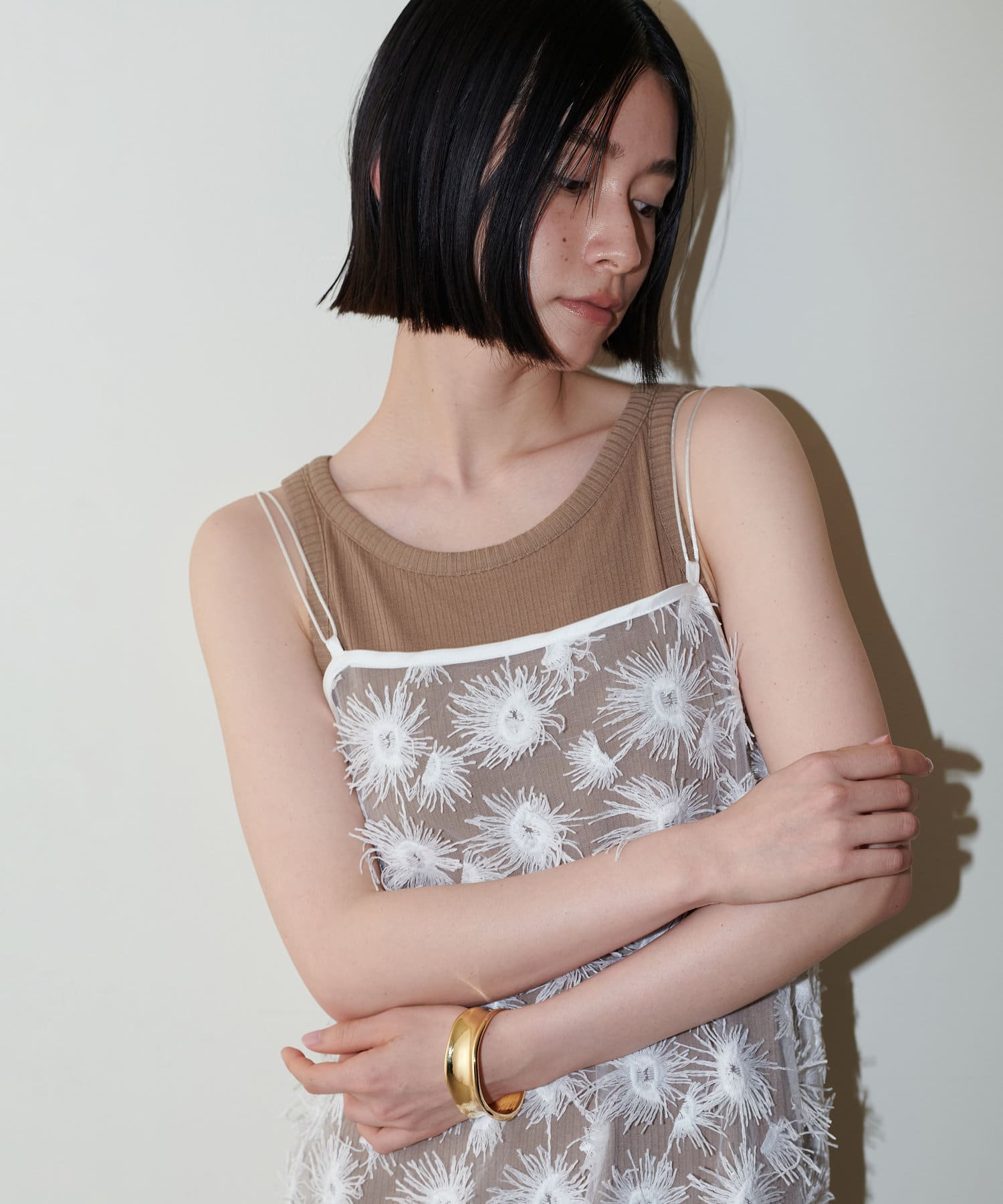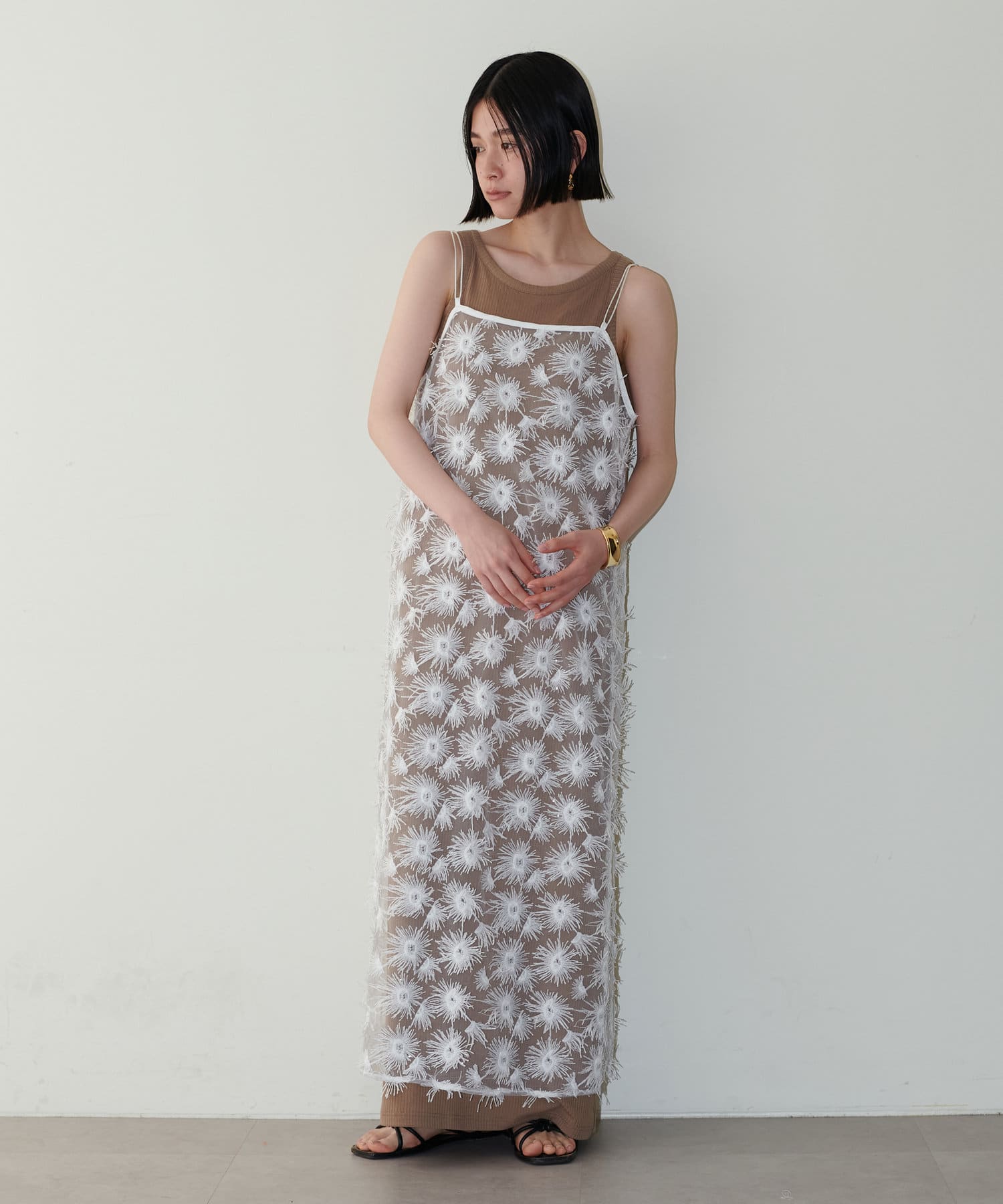 トレンド感のある装いに。歩くたびに動きの出るデザインがレイヤードしていても