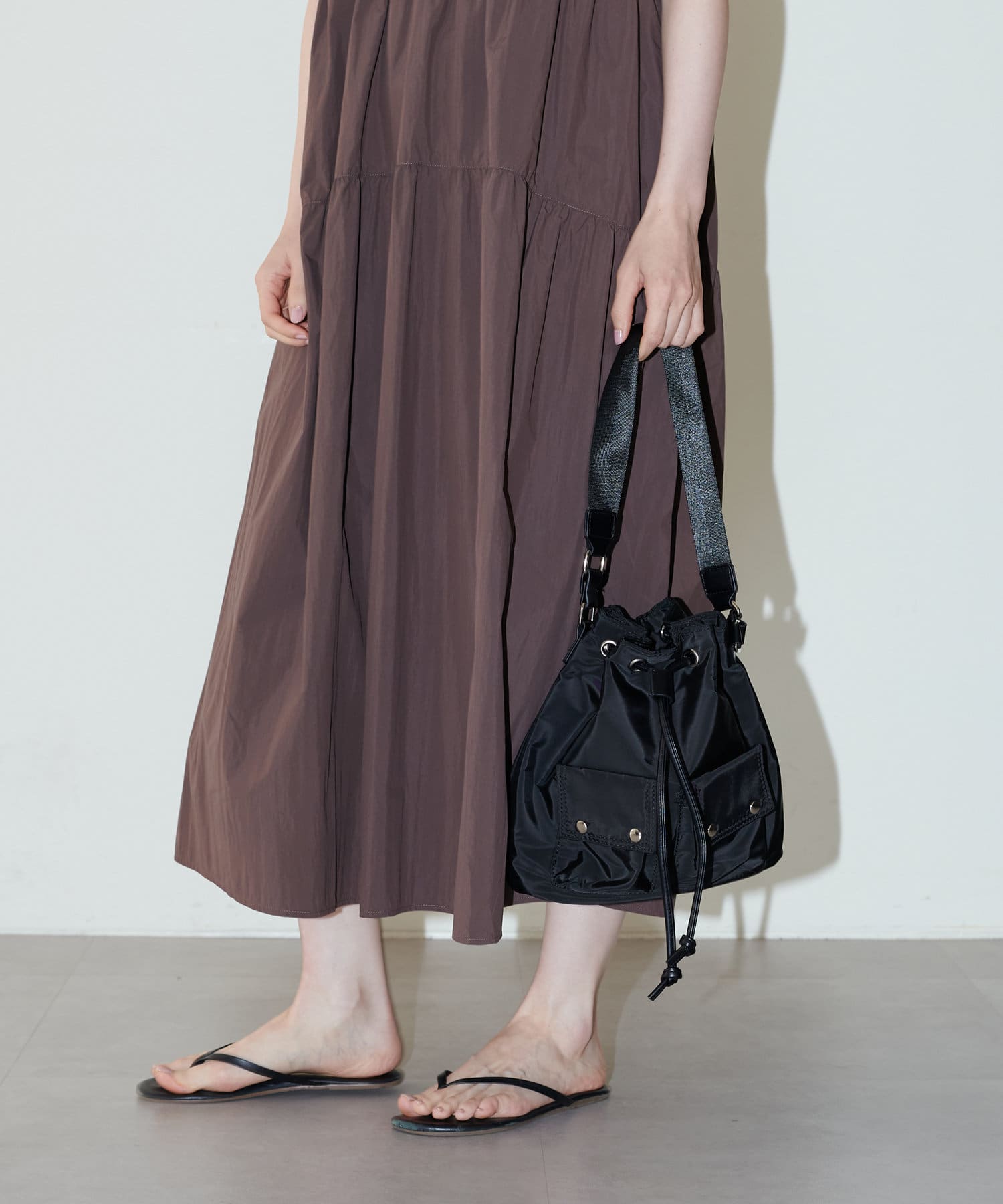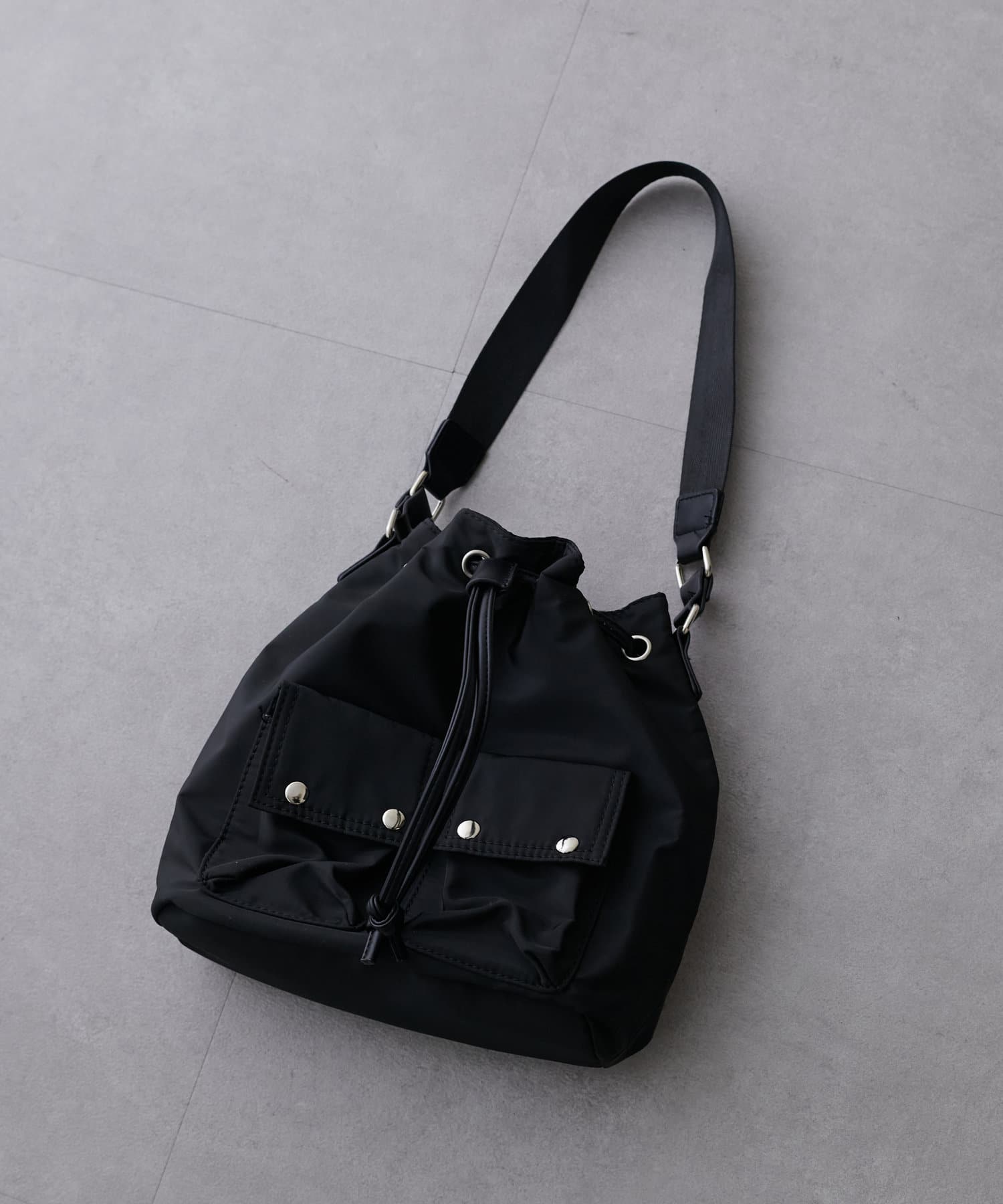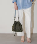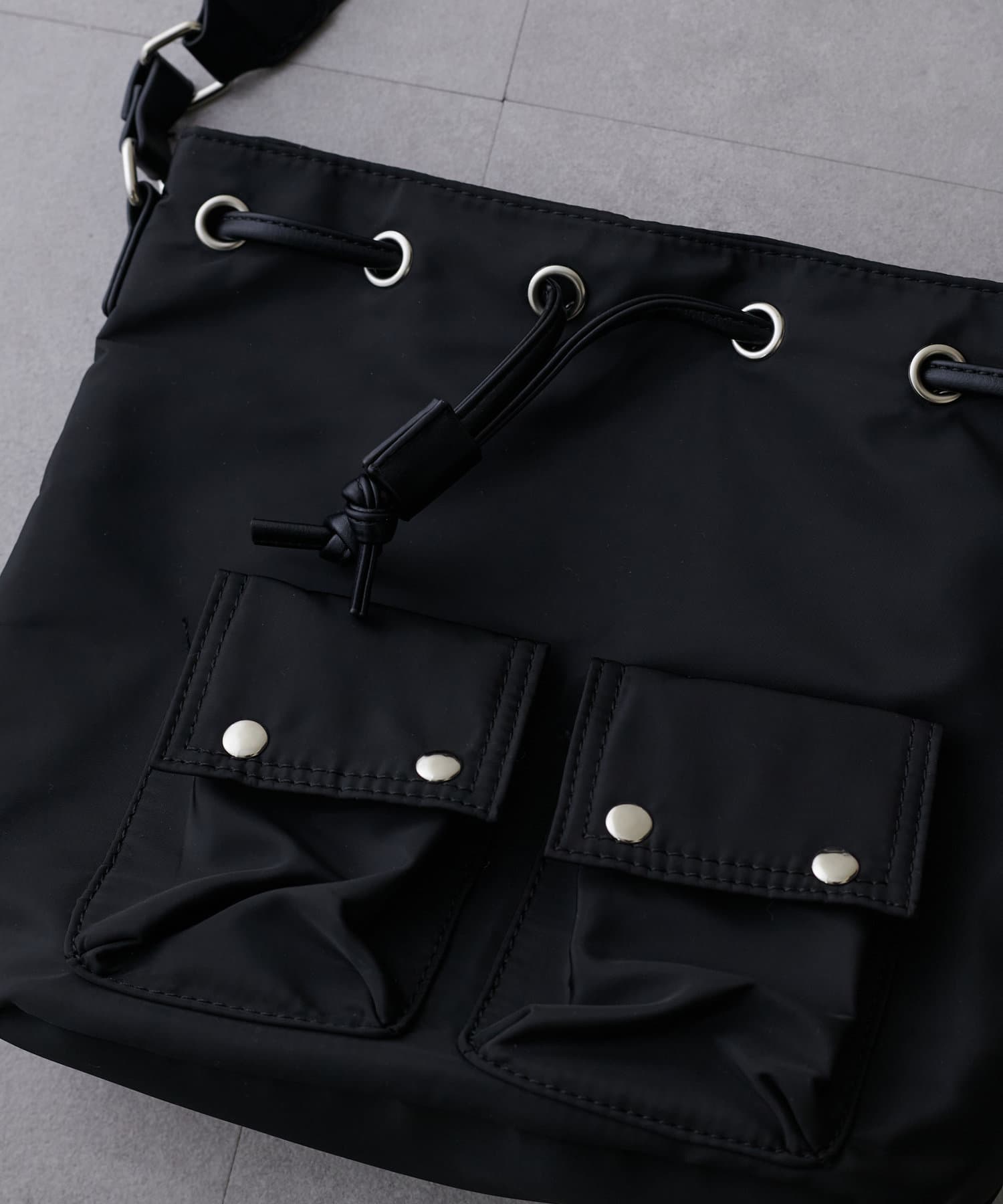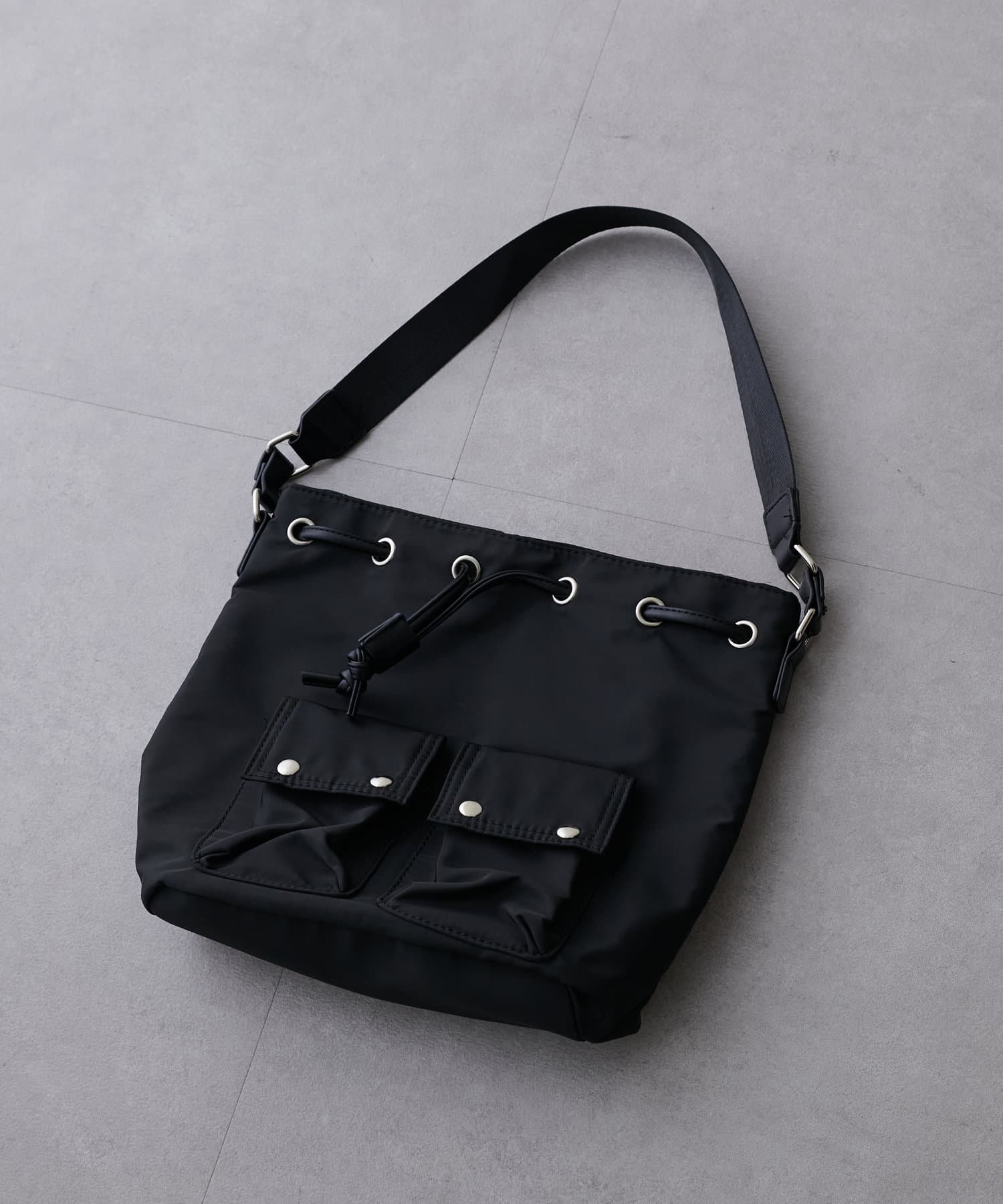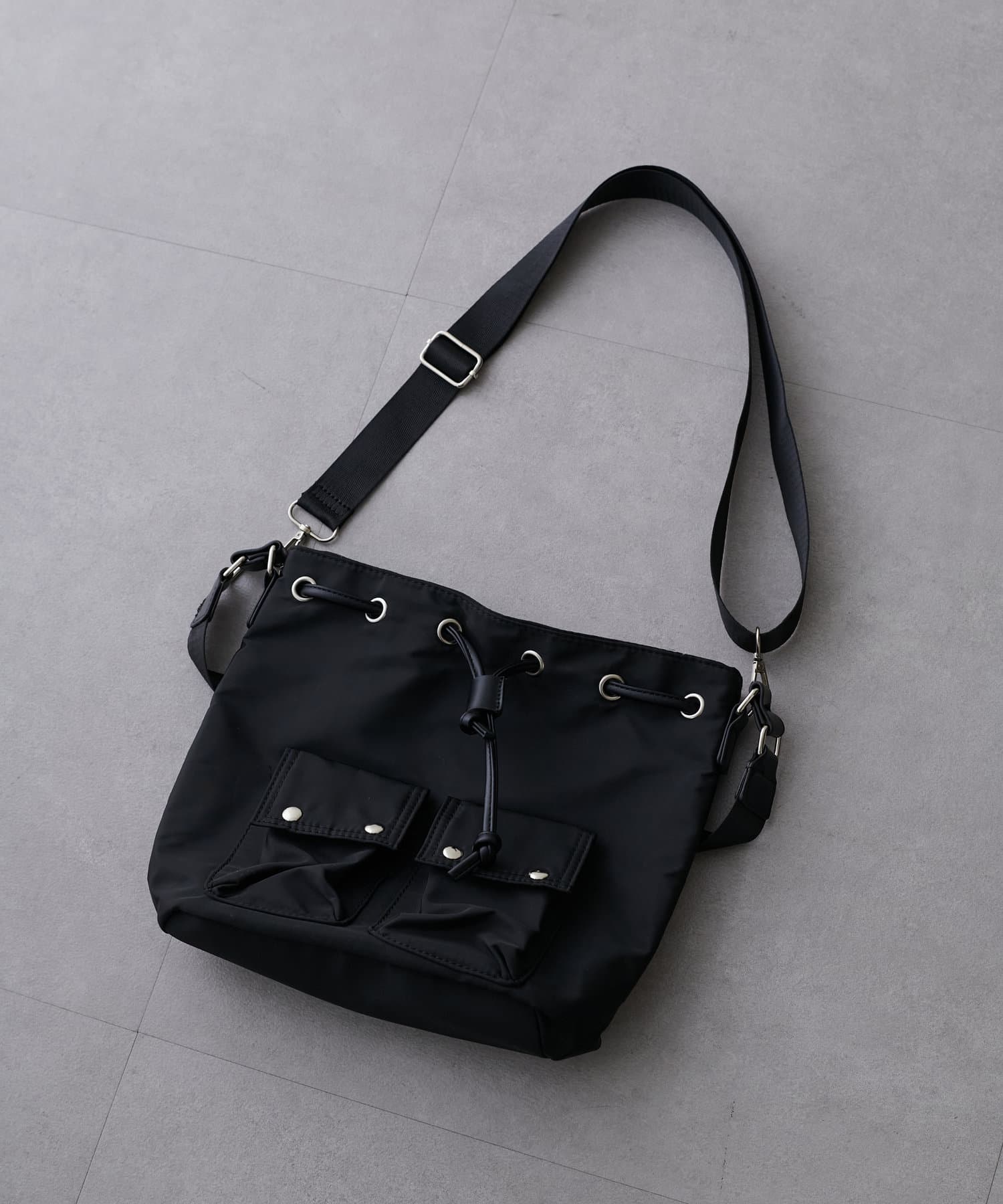 ダブルポケットや合皮のストラップでこなれ感を演出。