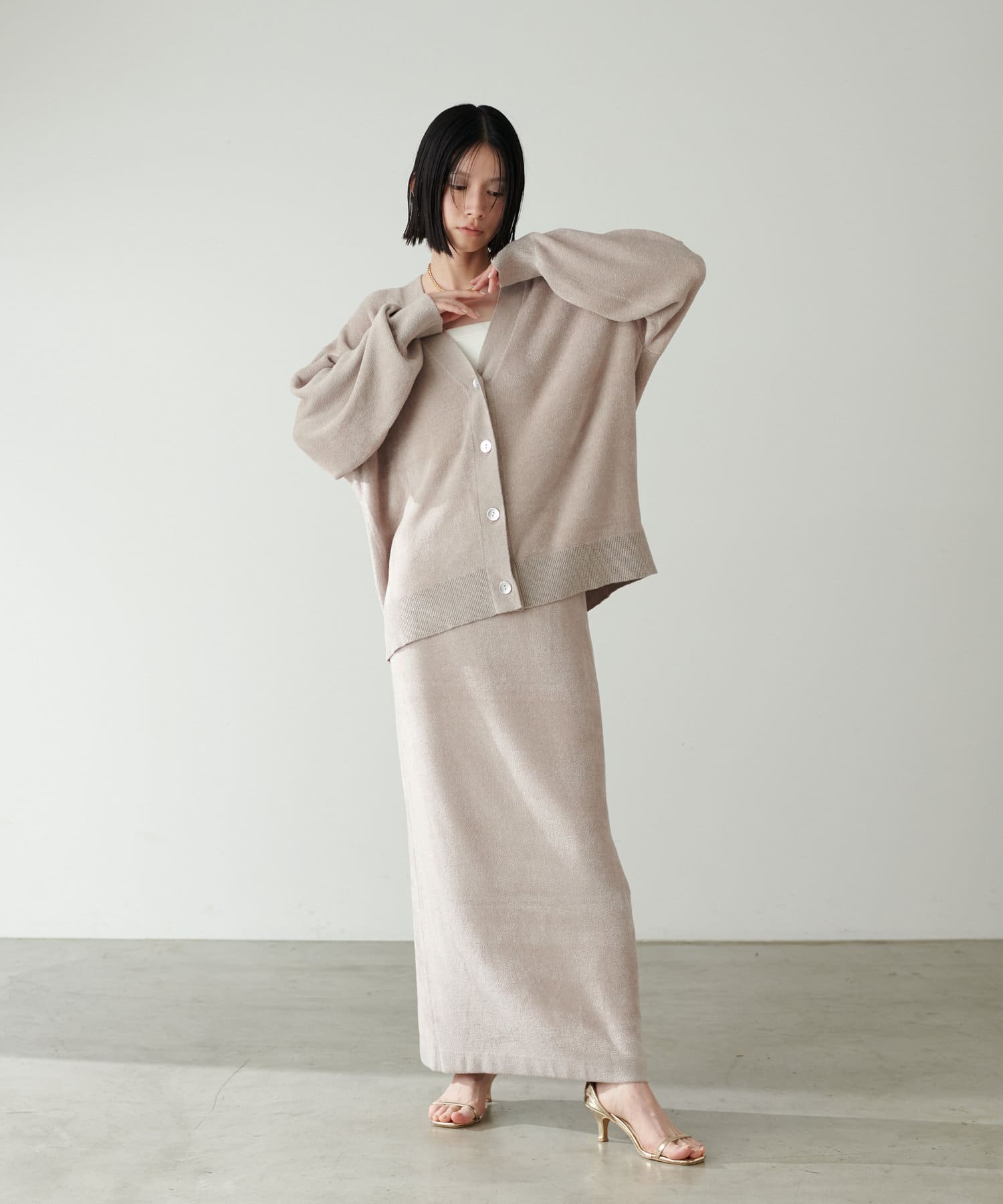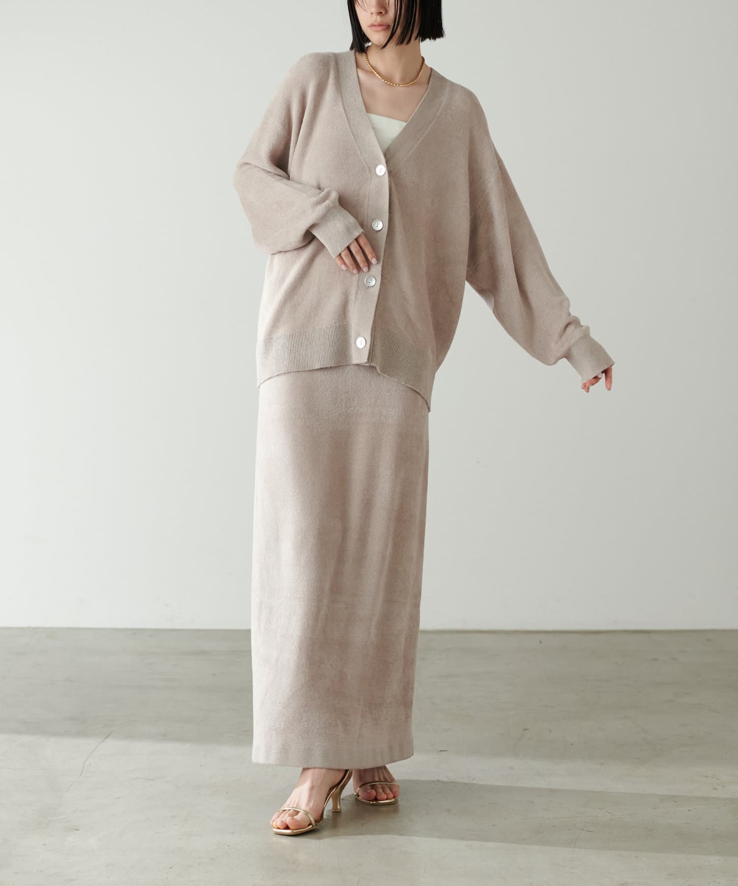 3042050280 モチフワミニフェザーニットショートカーディガン