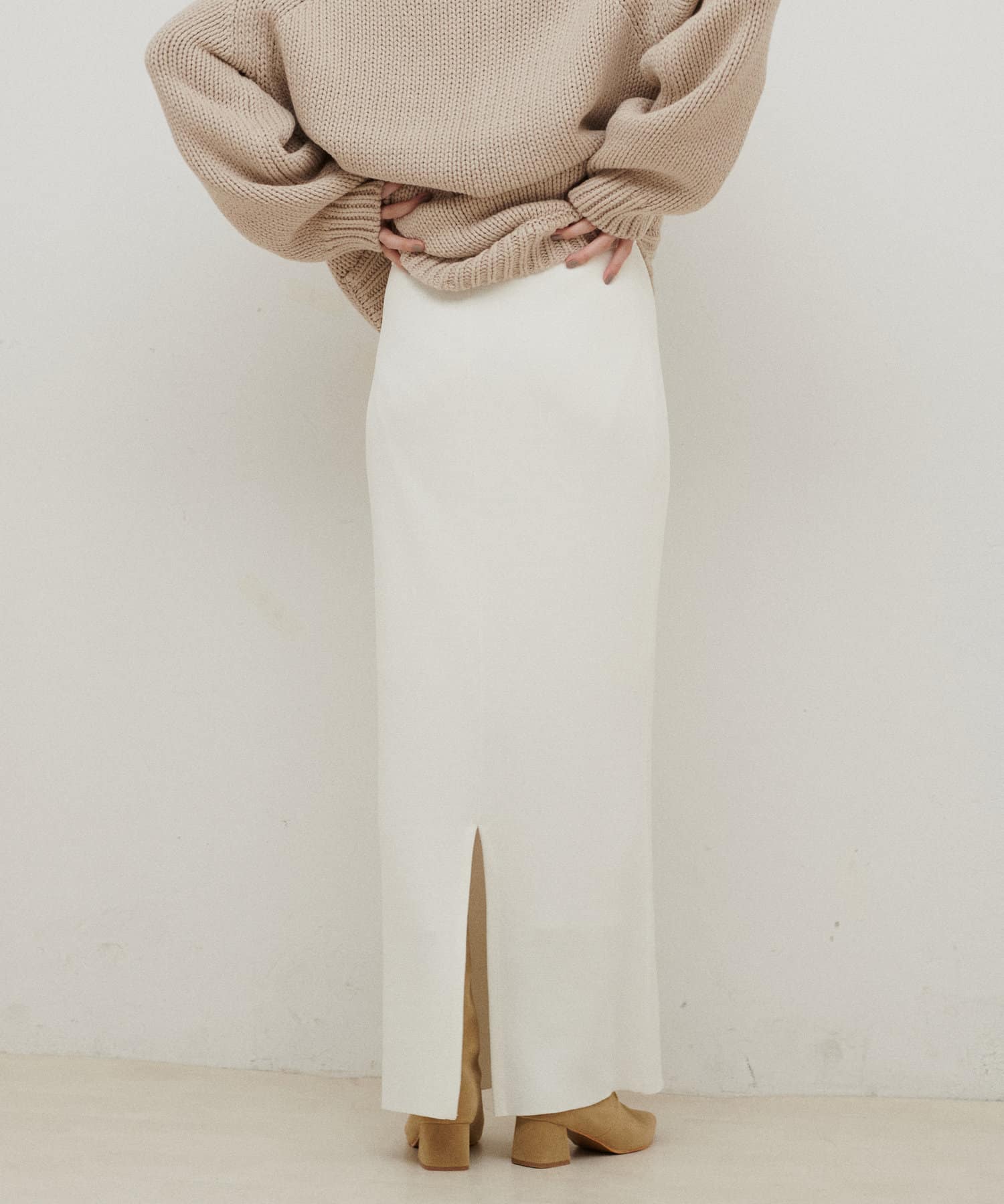 シンプルなIラインシルエットのタイトスカート。