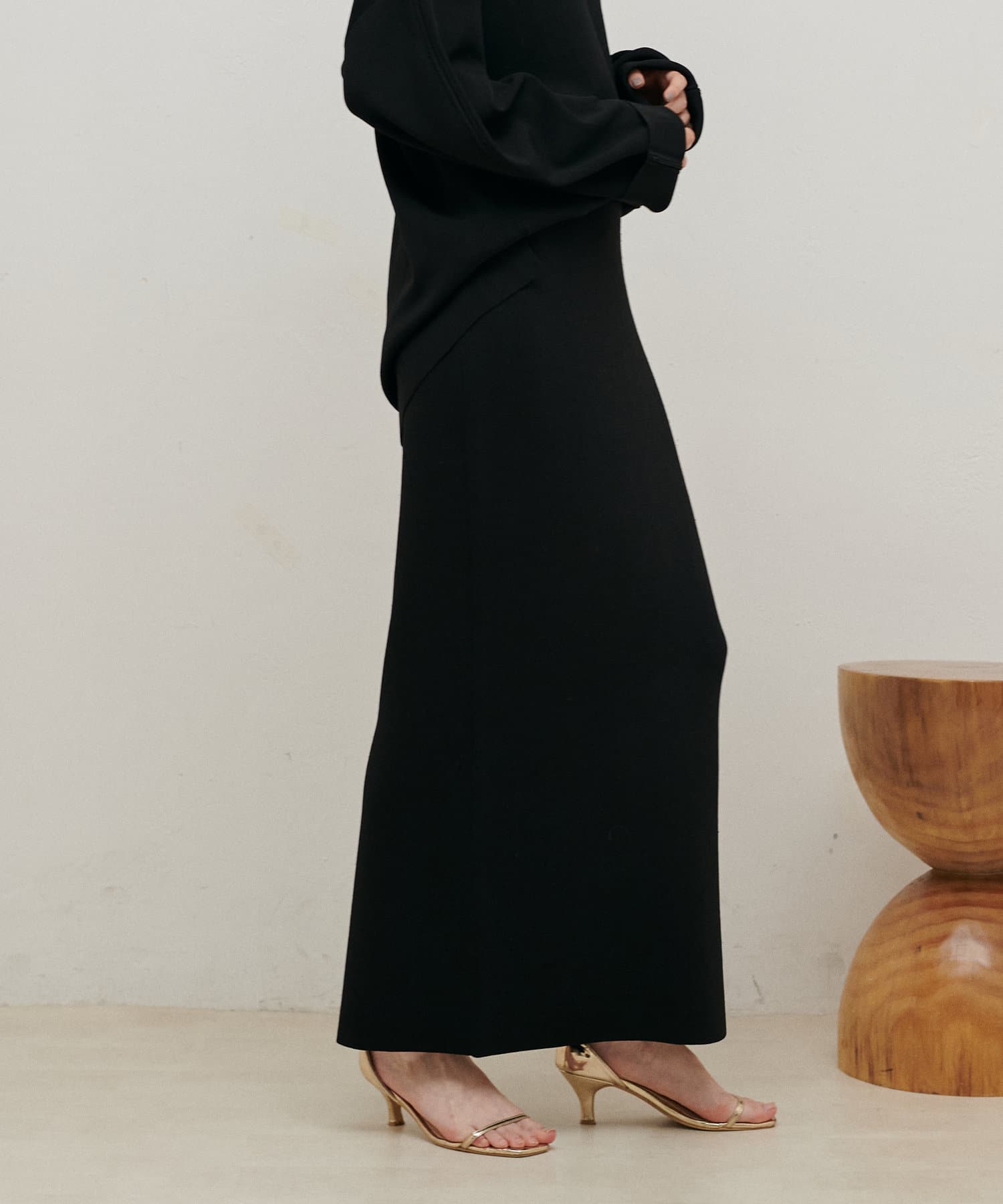 タイトのロングが欲しくてセットアップで購入。縦長効果で細見えします。ピタリとしてるのでお腹周りは出すとぽっこり見えがちなのでアウトして着た方が細く見えます。