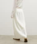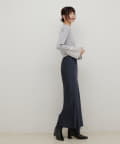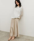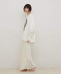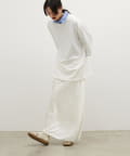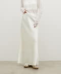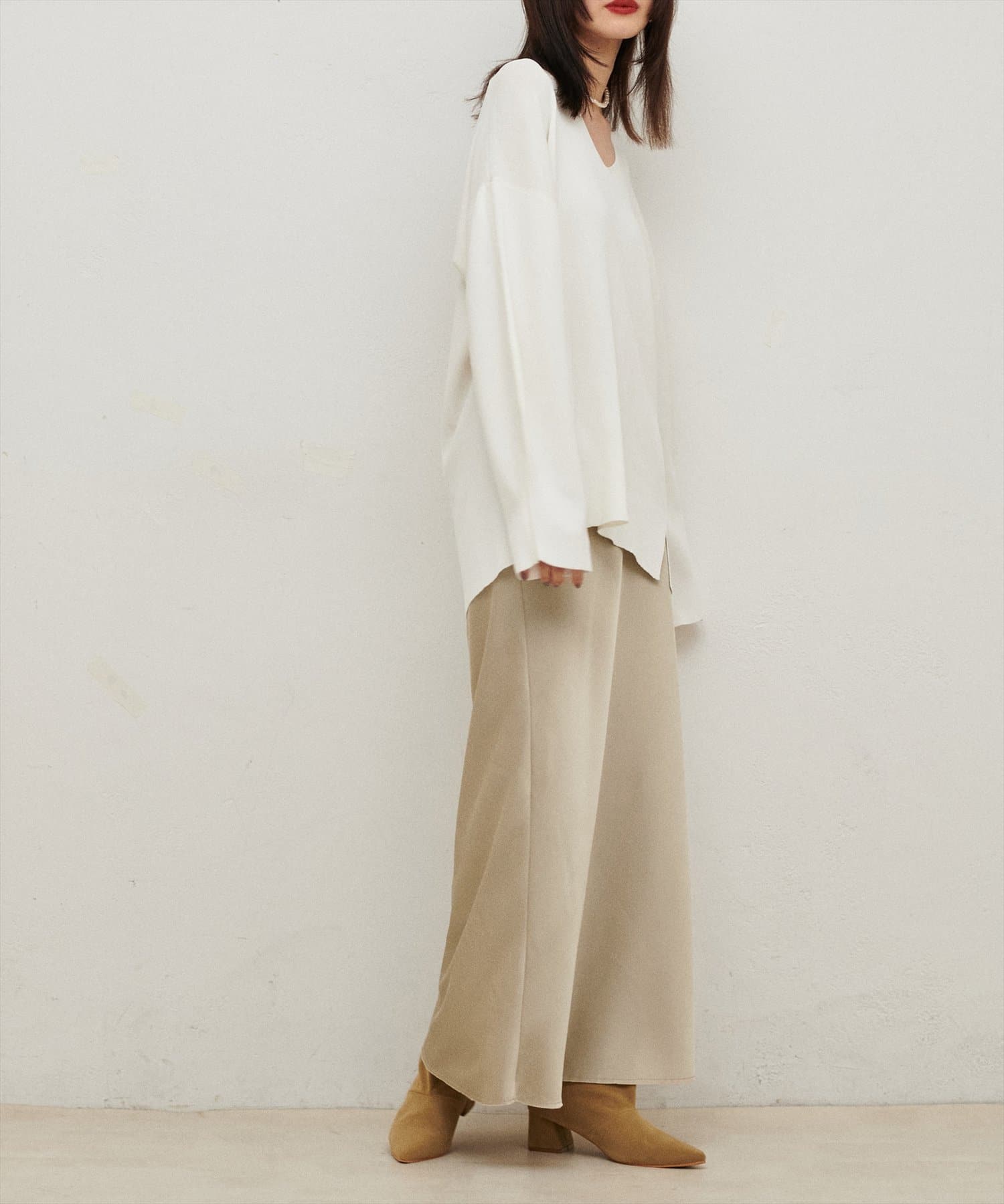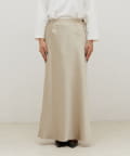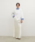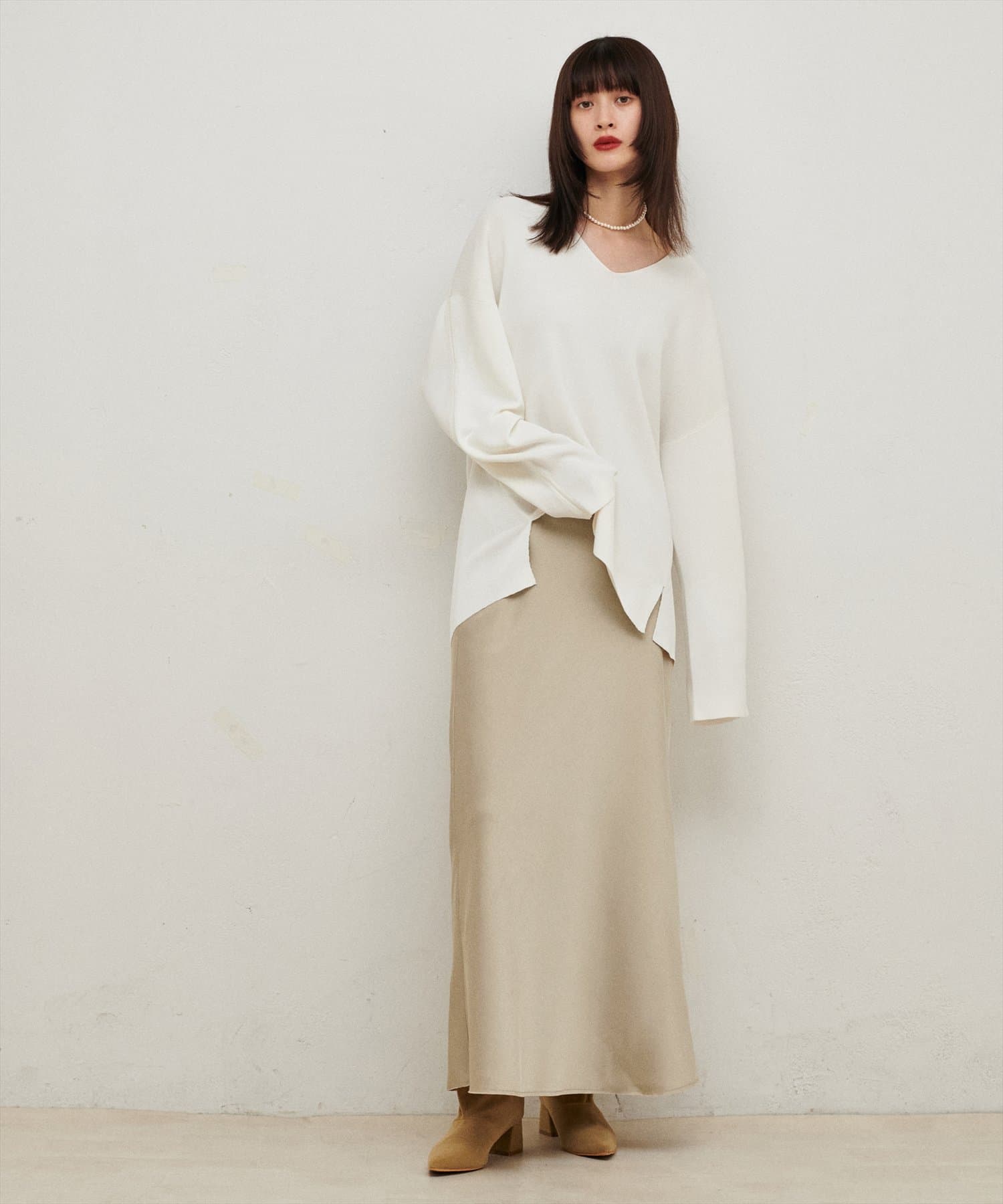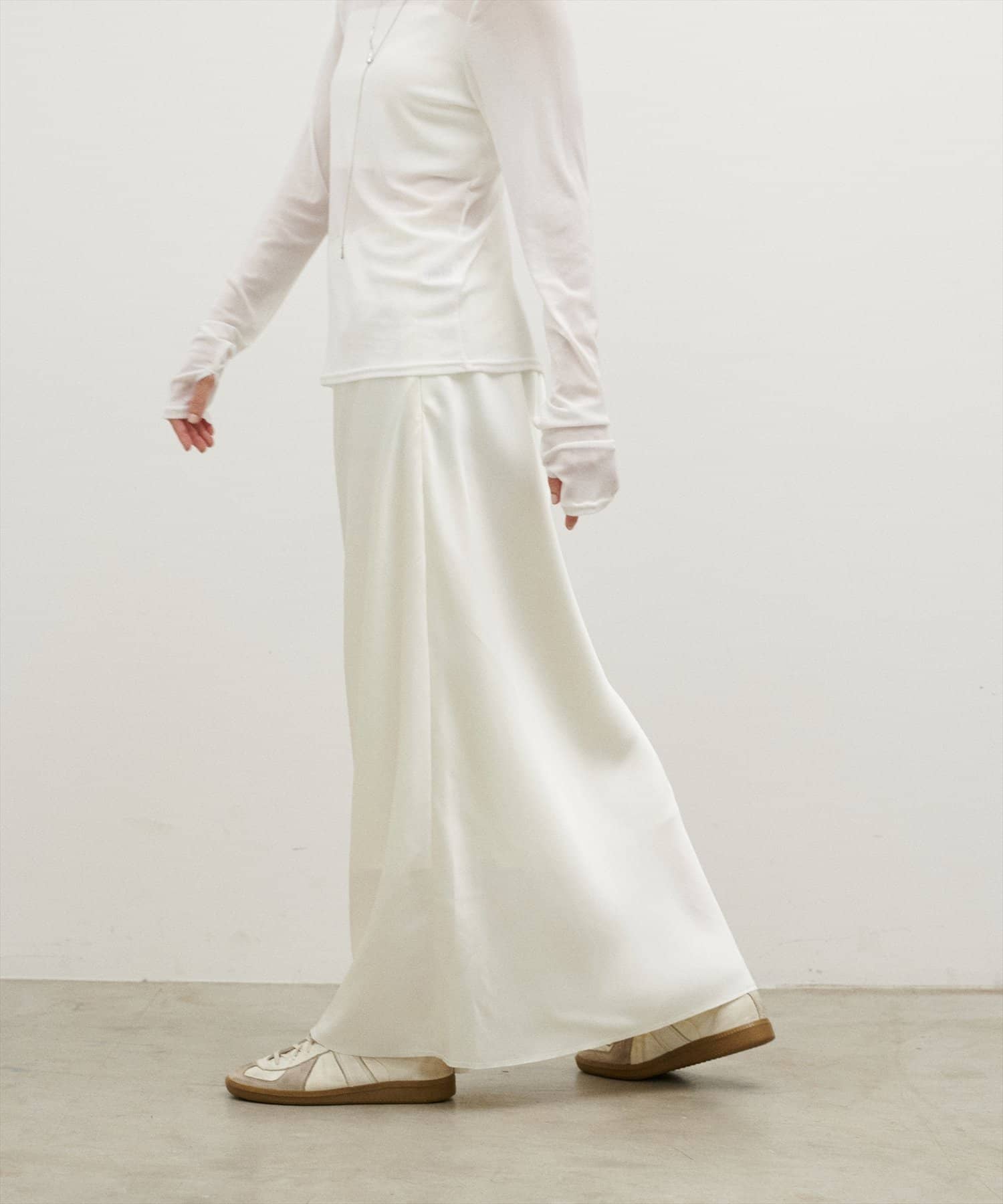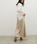 上品なロング丈で女性らしいシルエットを作り上げており、裾は断ち切り仕様に