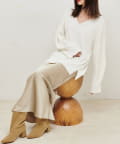 シーズンレスで着用できるので、秋冬は毛足のあるニットと合わせても◎