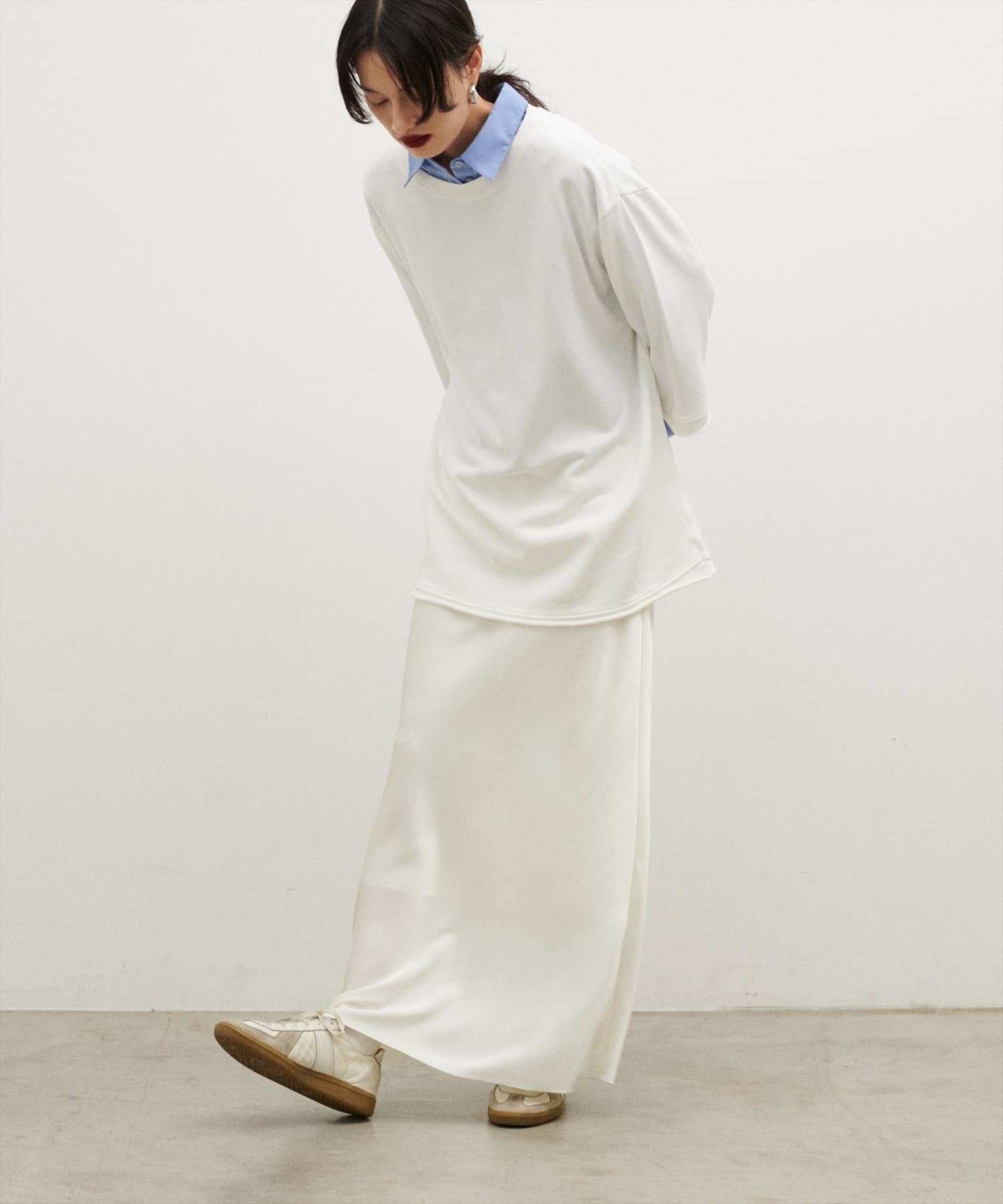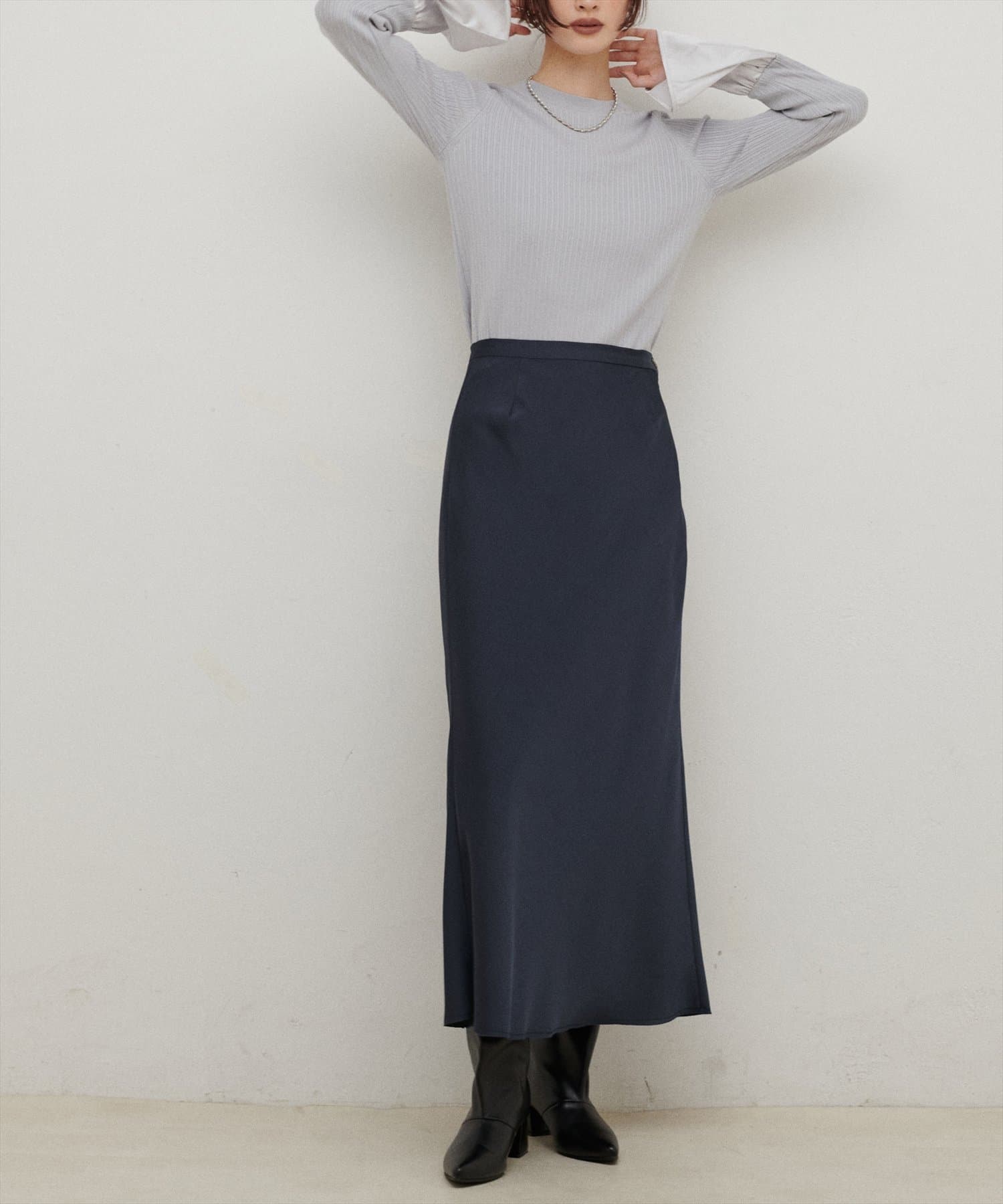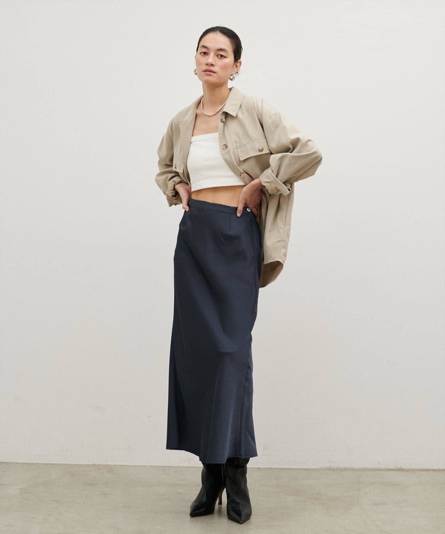 ストンと落ちるシルエットにこだわったシンプルなナロースカートは