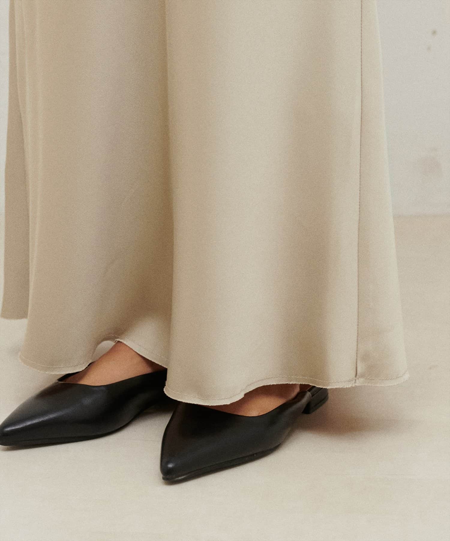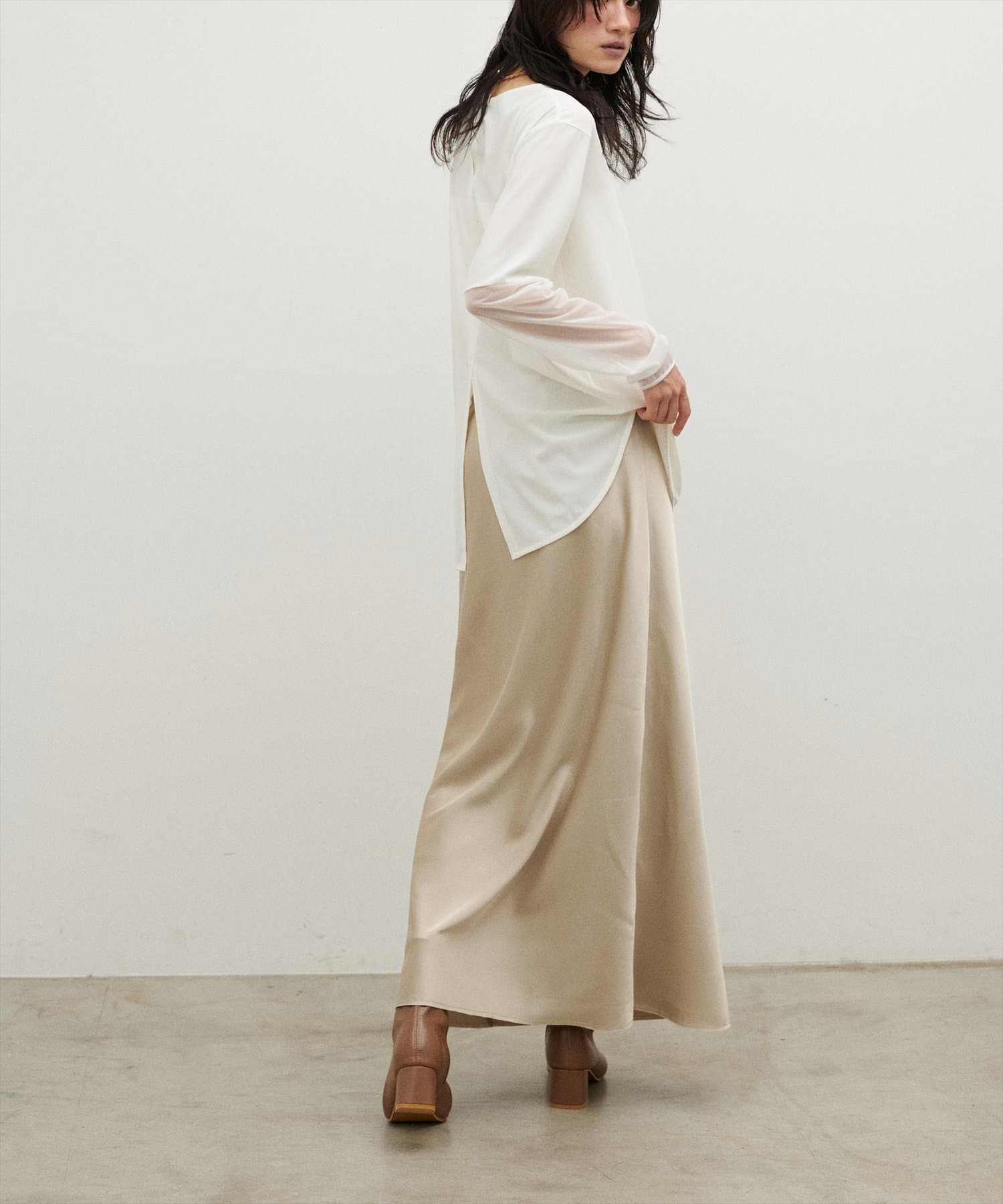サテンの上品な光沢感が日々のコーディネートを格上げしてくれること間違いなし。