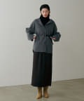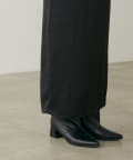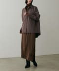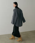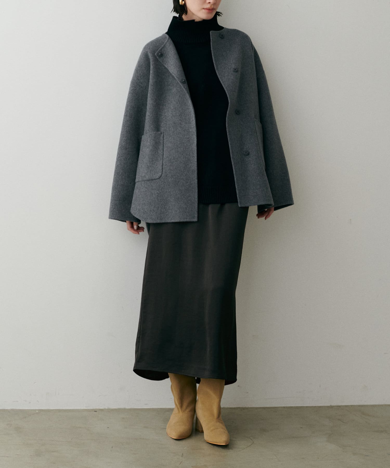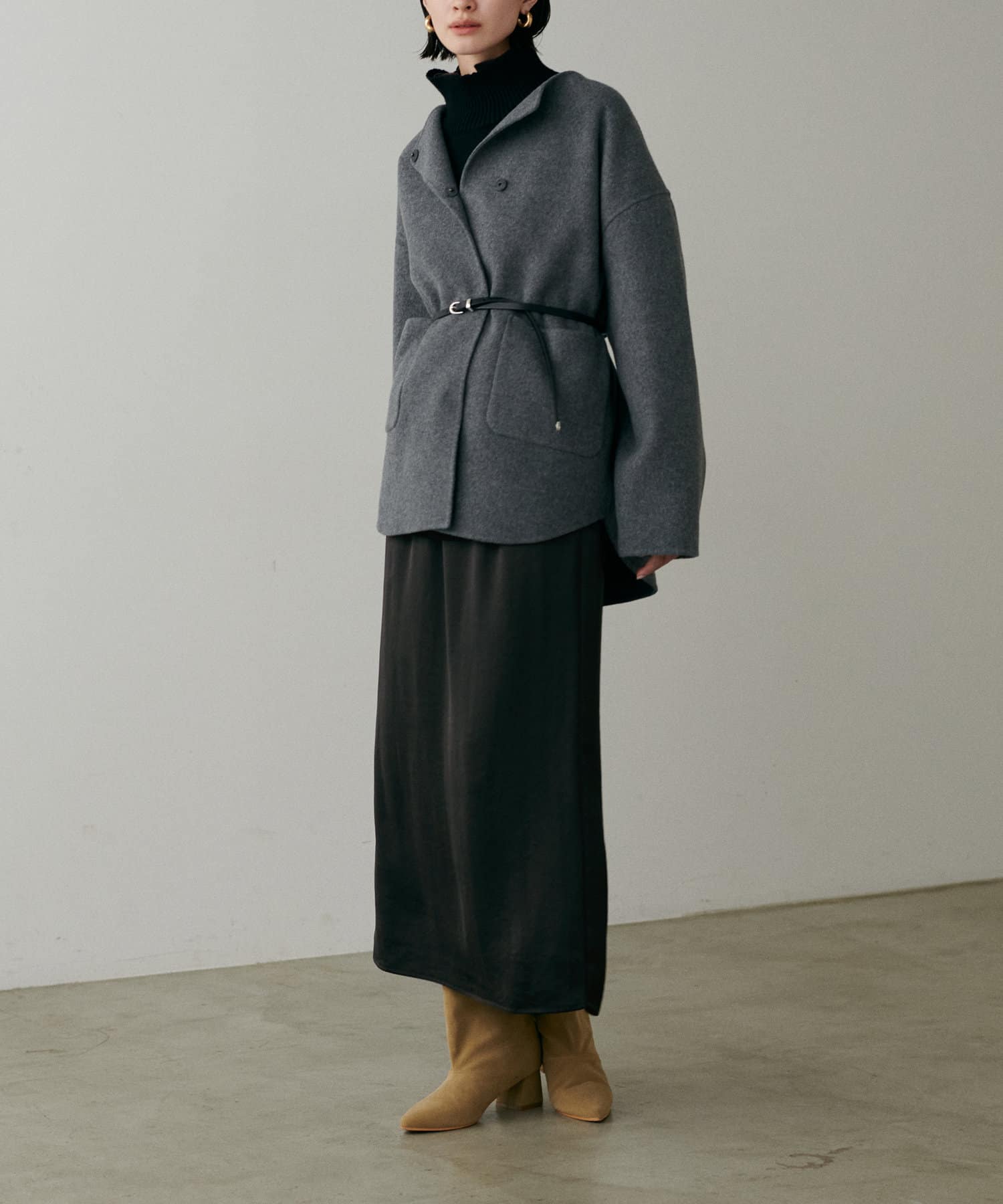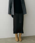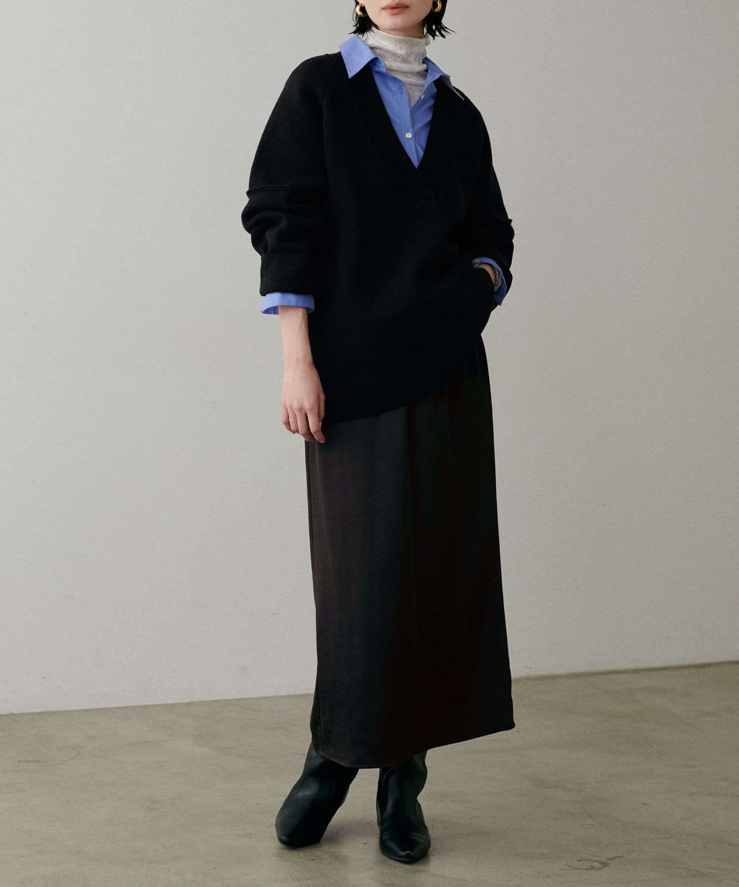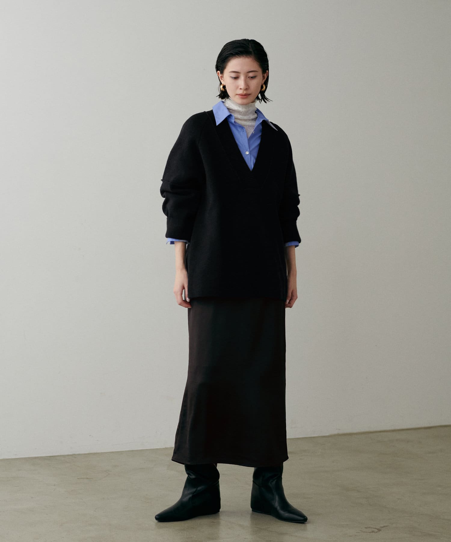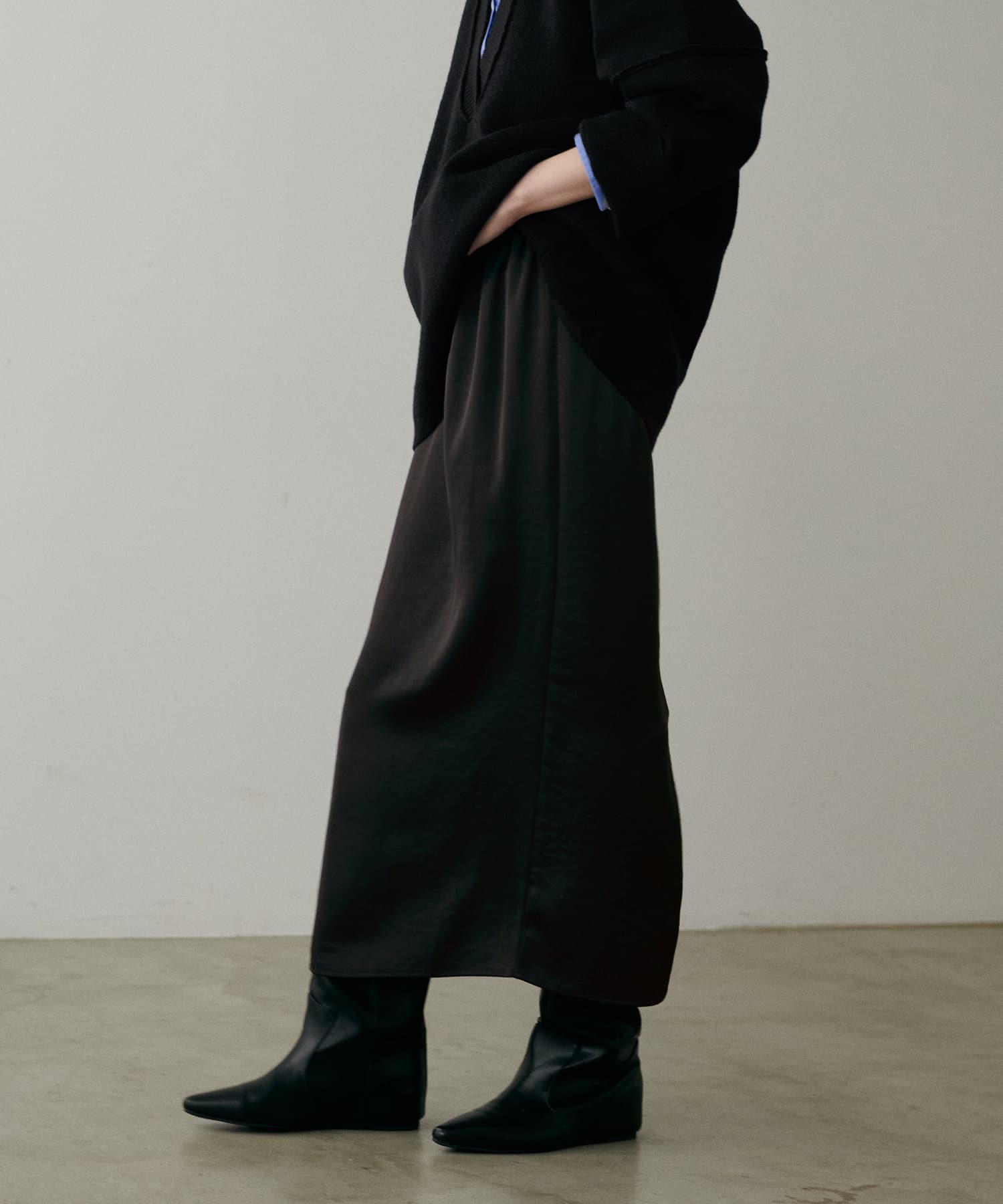 落ち感のある素材が縦のラインを強調し、すっきりとした見え方に。