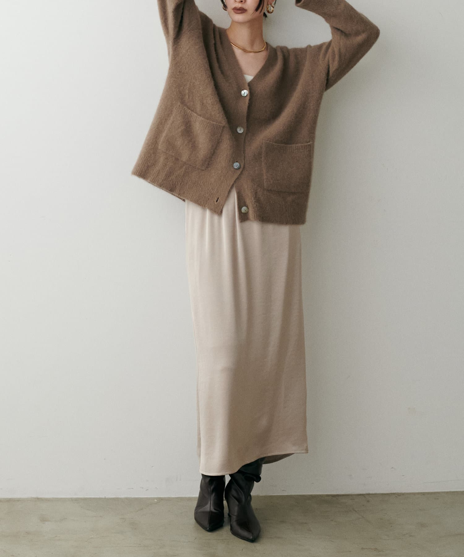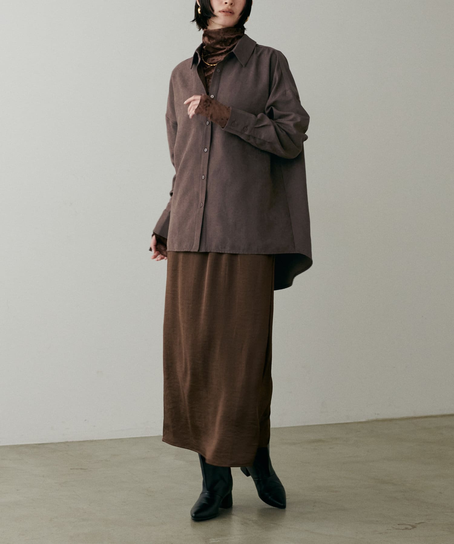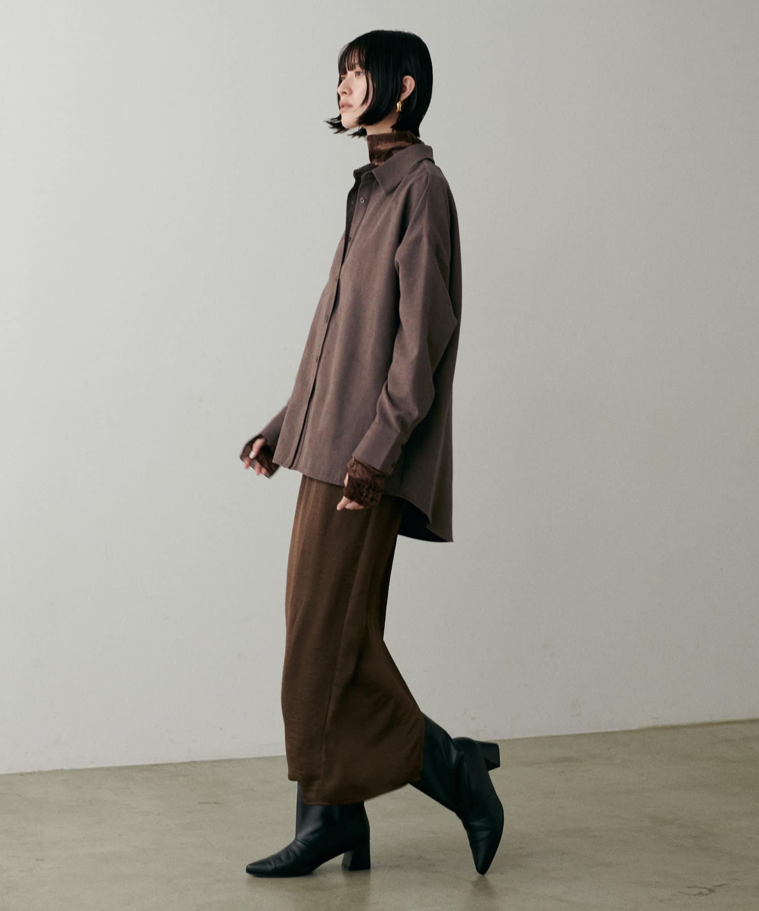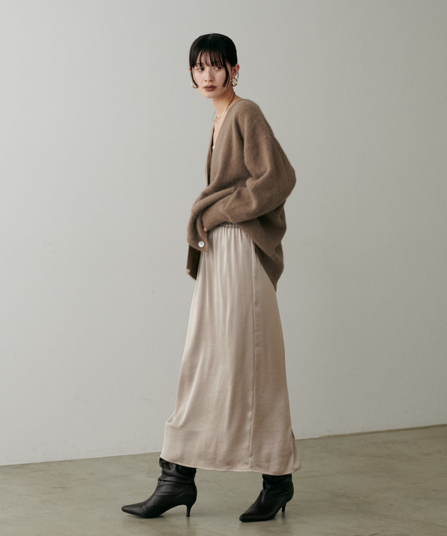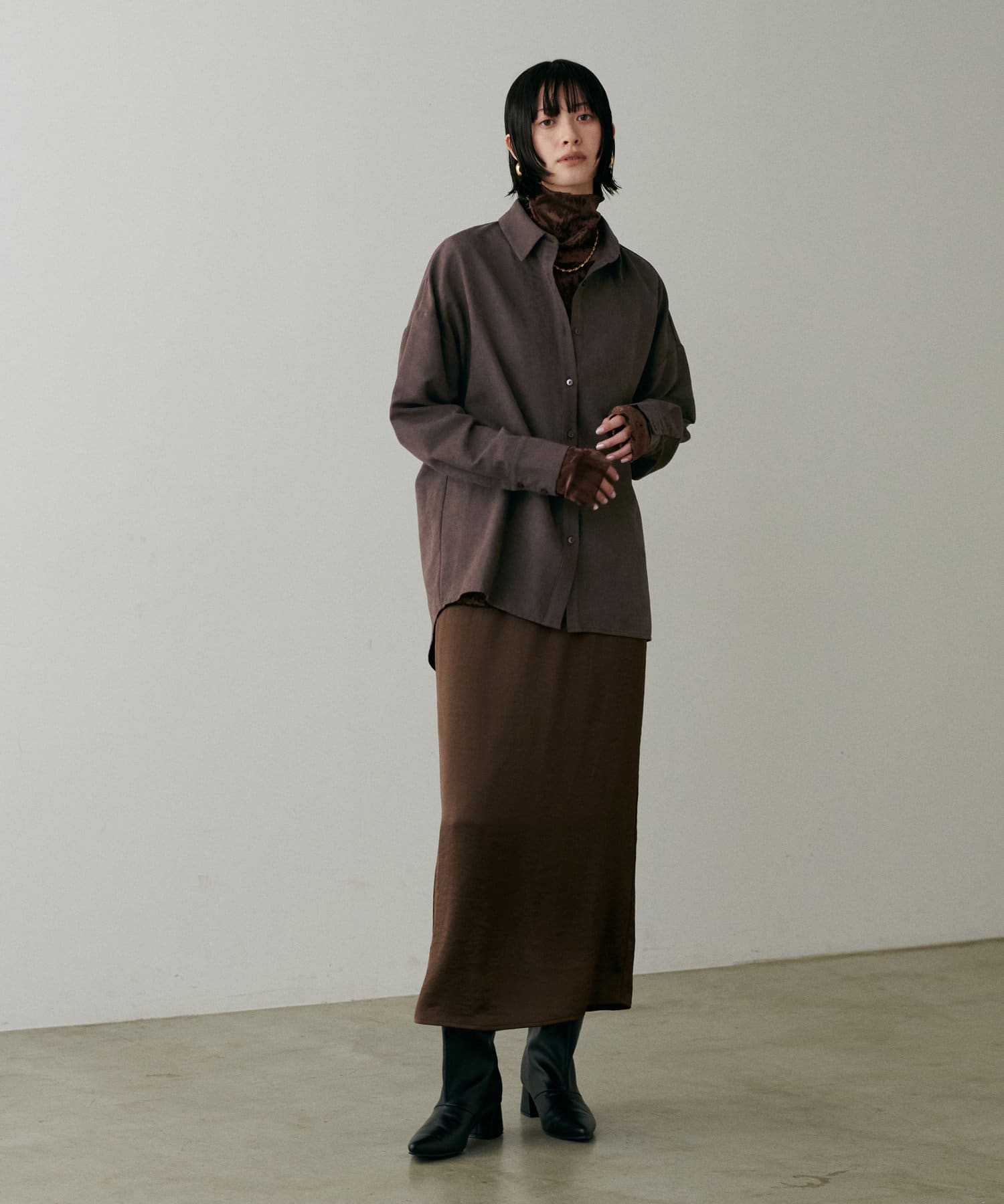 滑らかな生地感は動く度に大人上品な印象を与えてくれます。