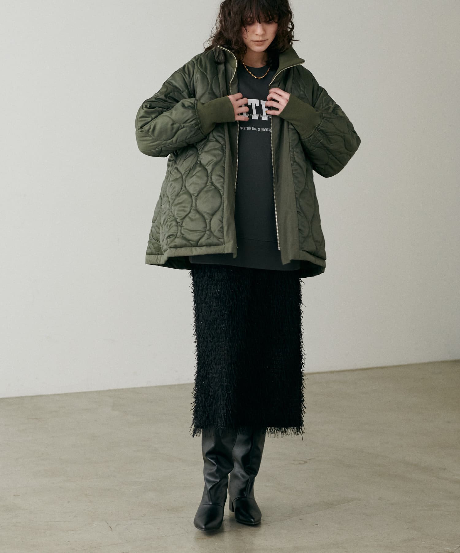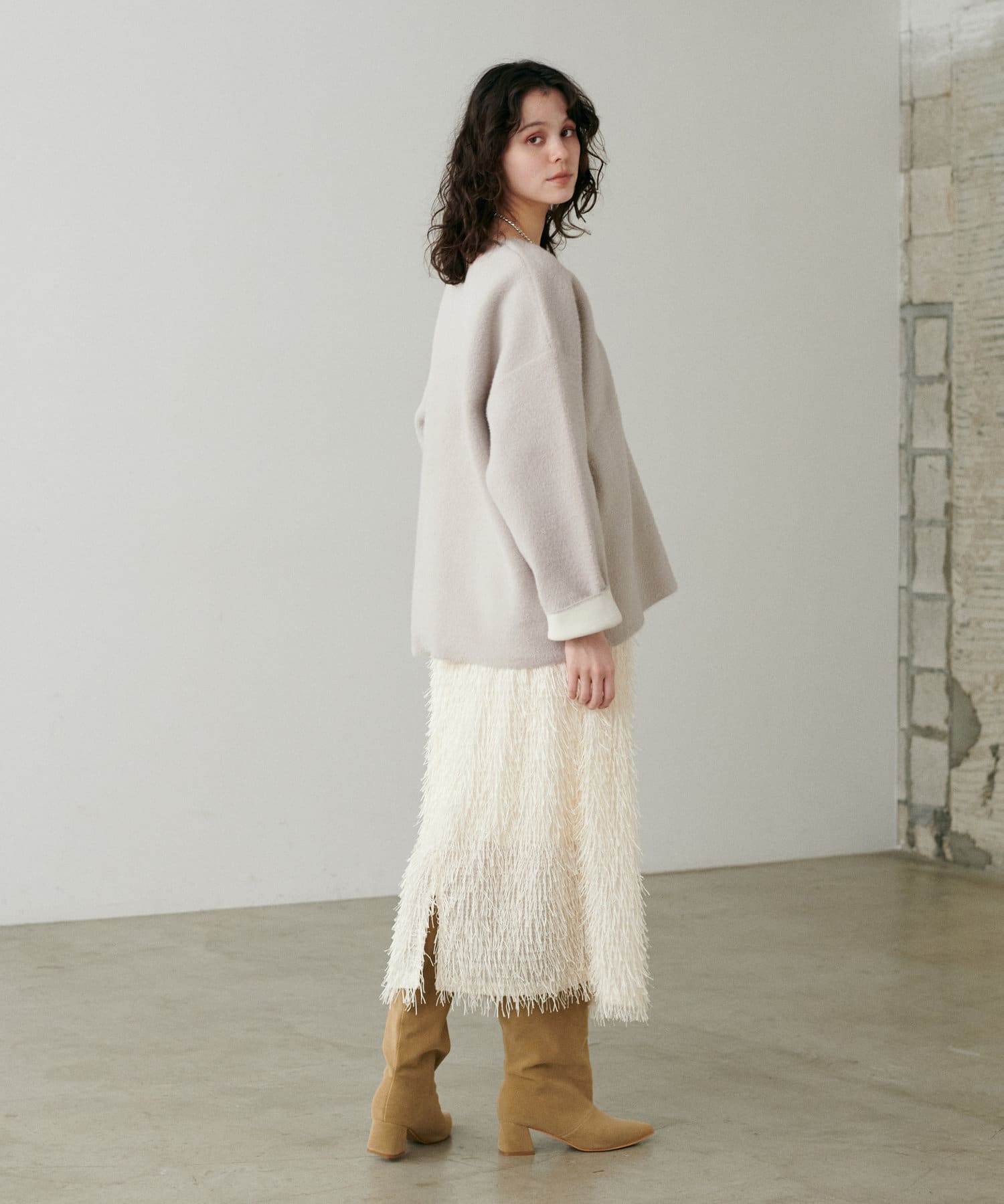 程よい華やかさがあり、秋冬のコーディネートが楽しくなる1枚。