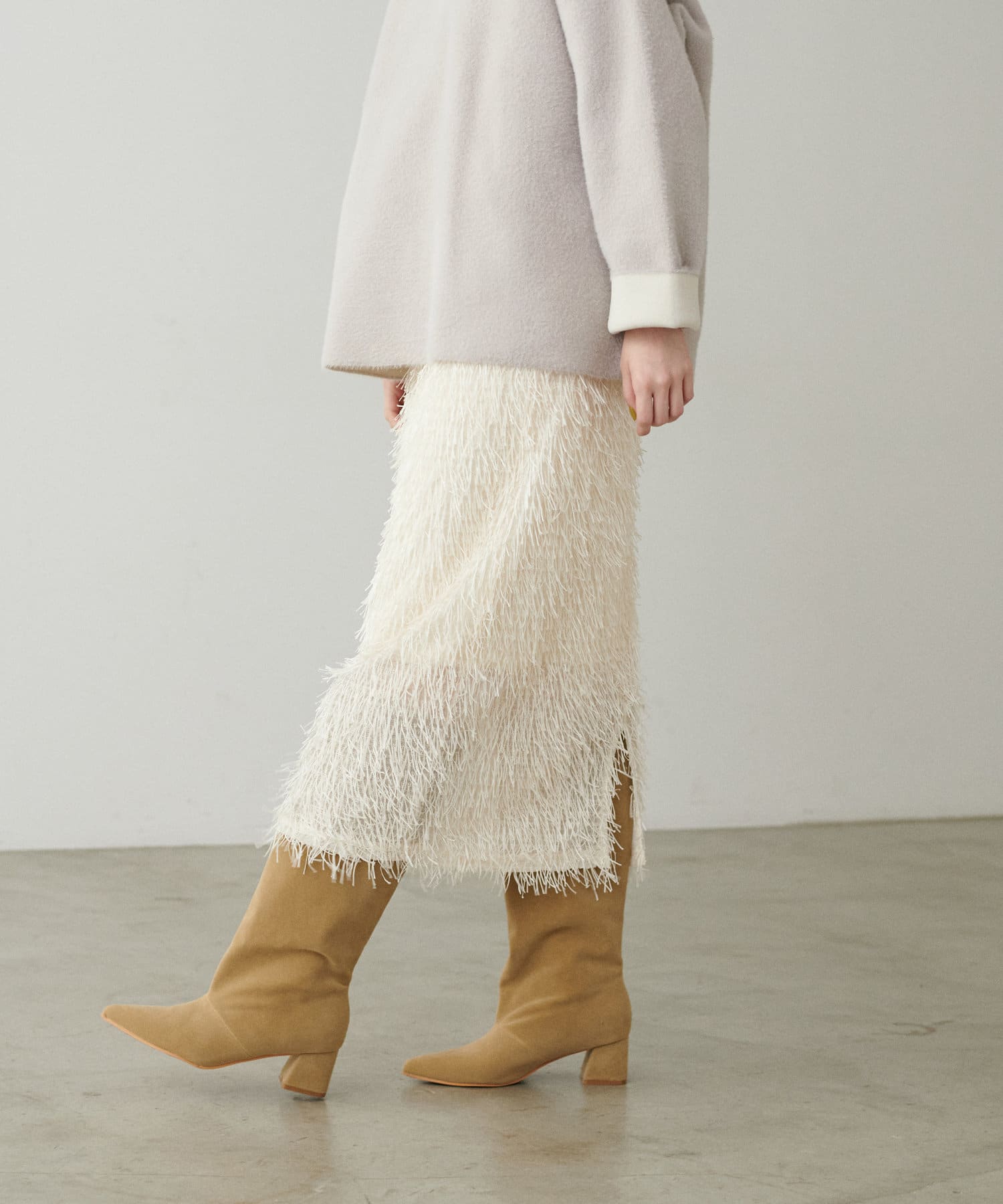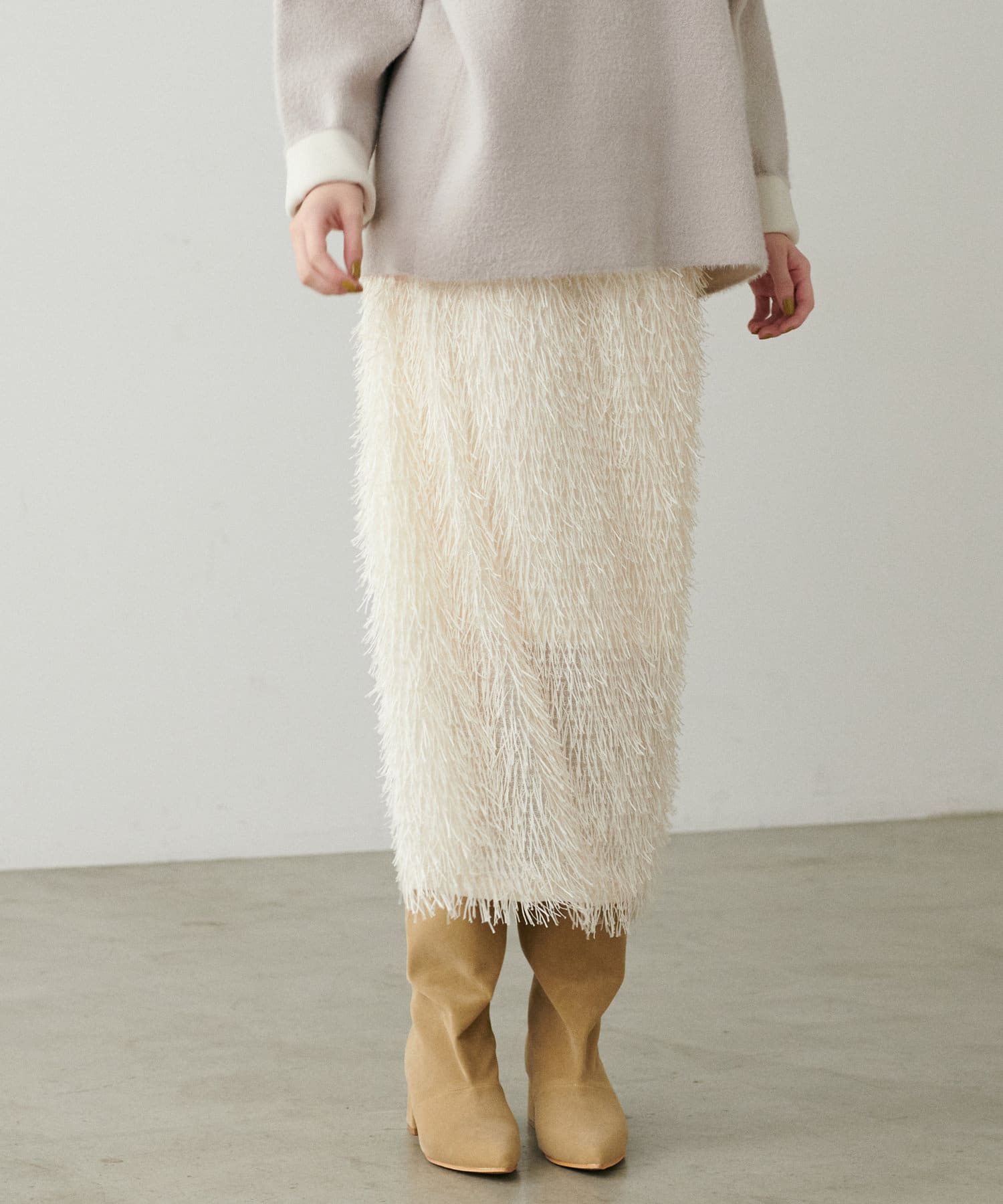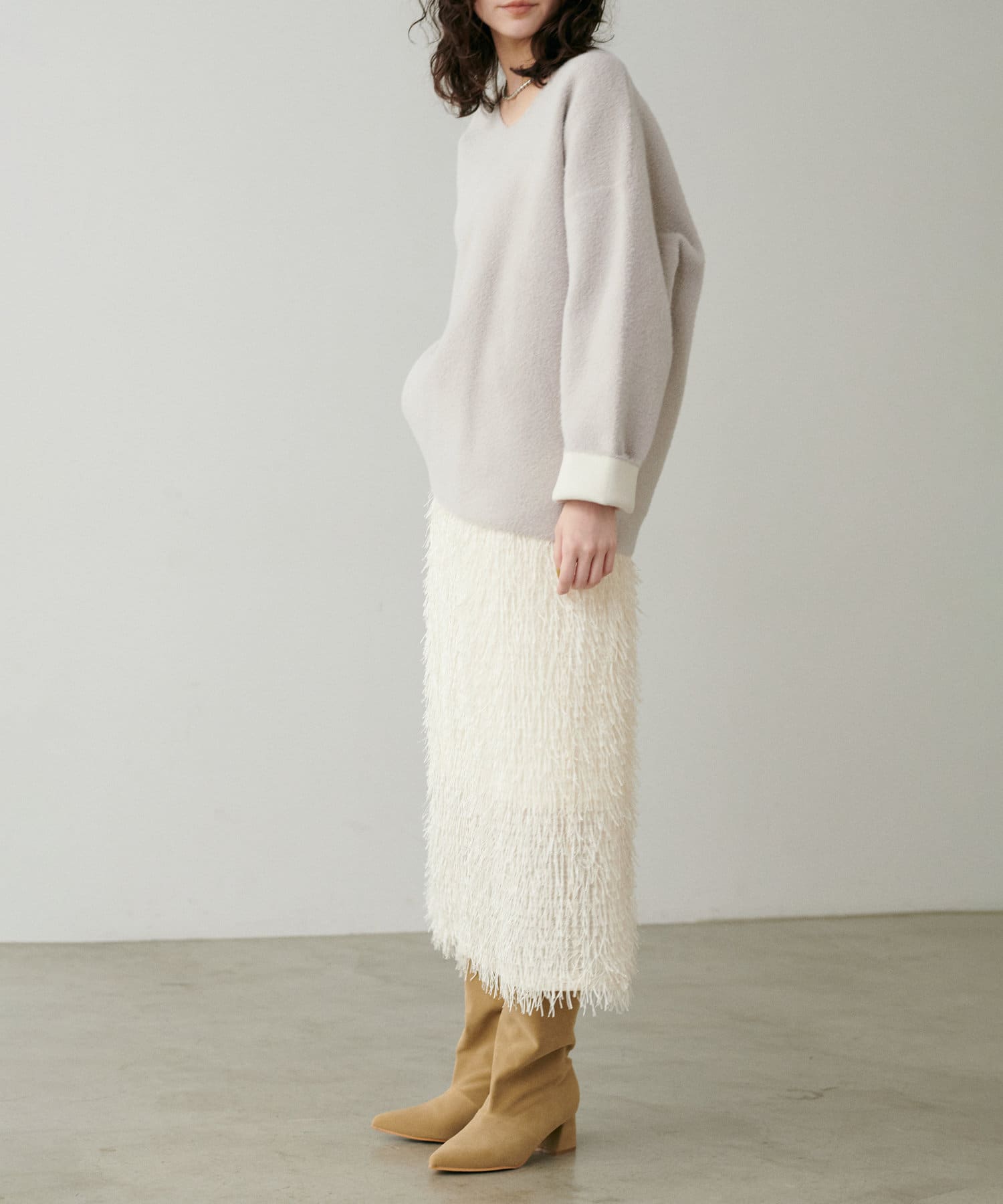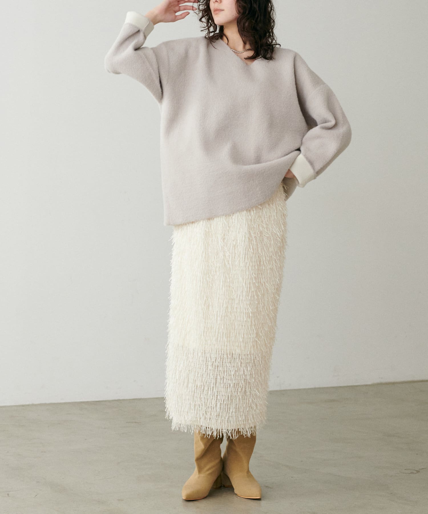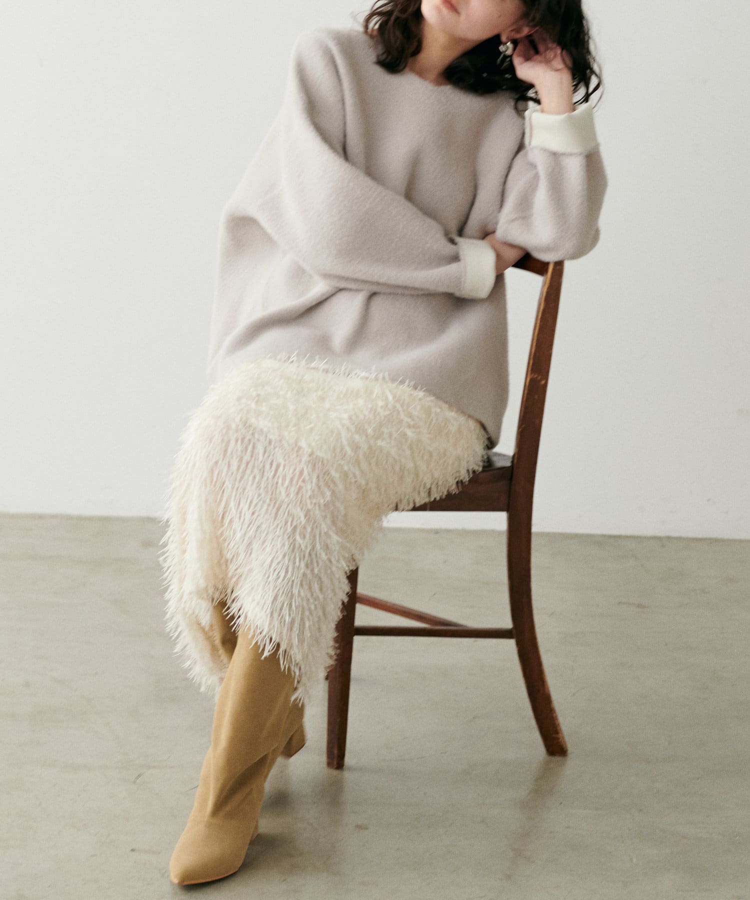 フェレットタッチシャギー接結ニットなど女性らしいシルエットや