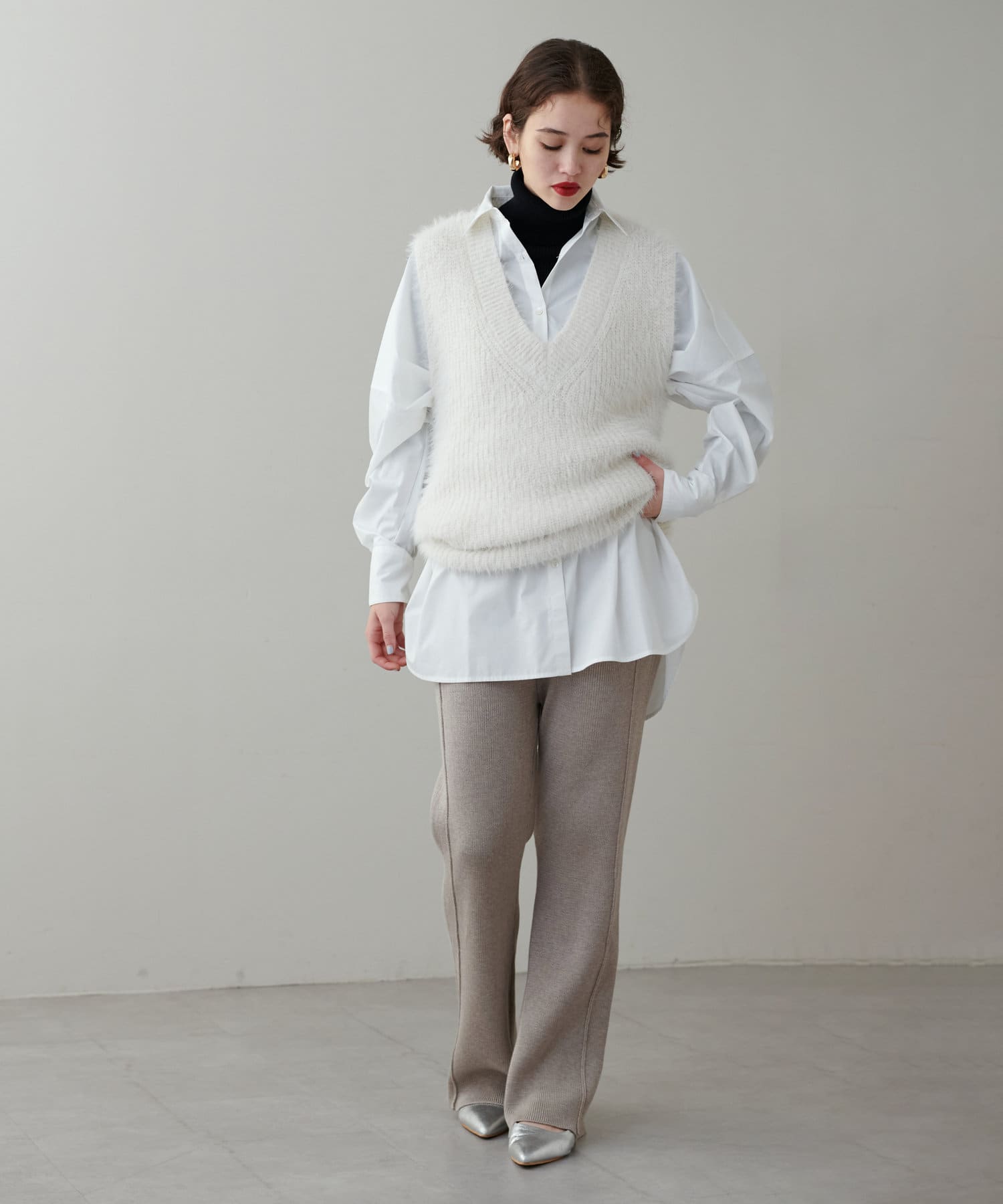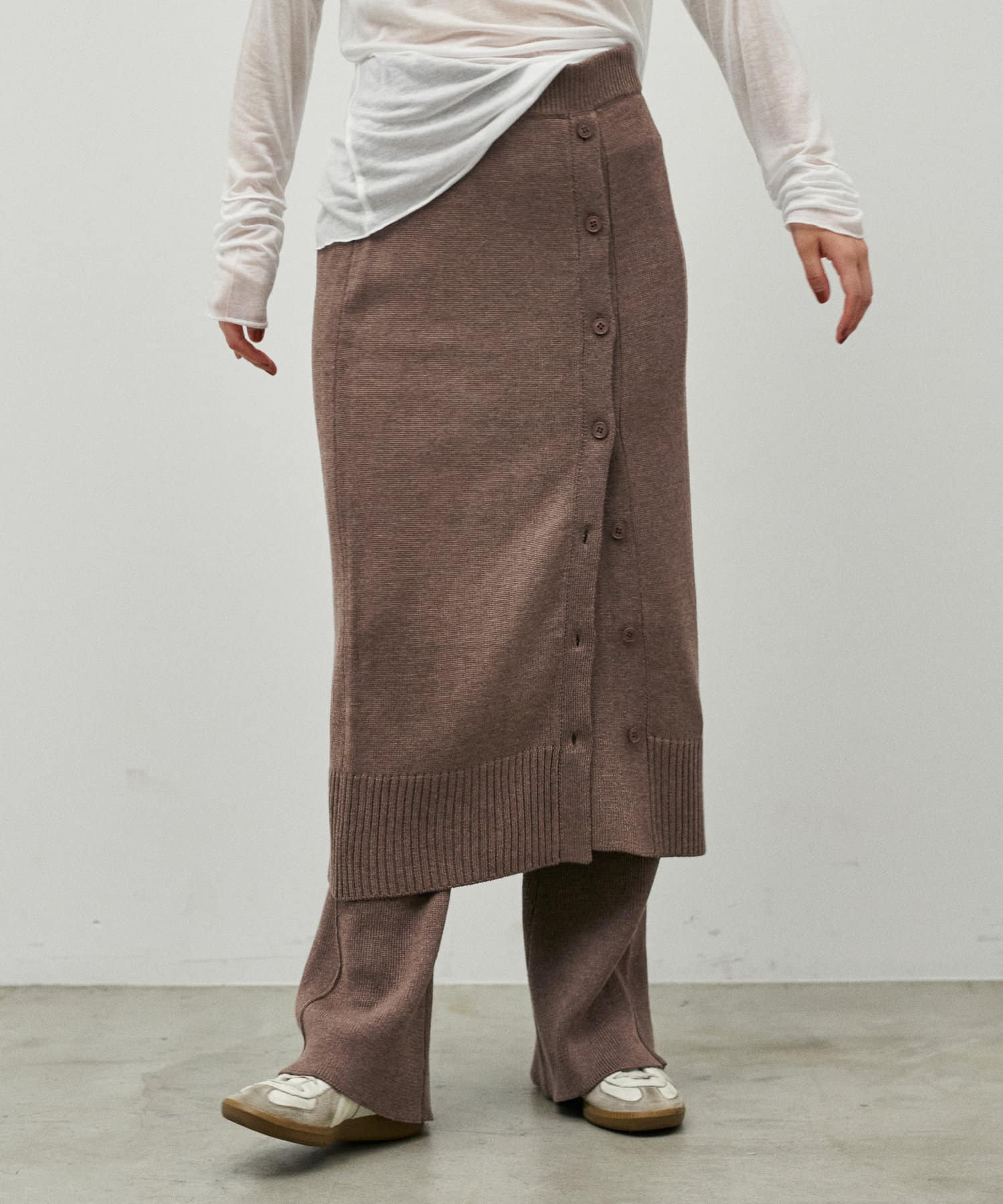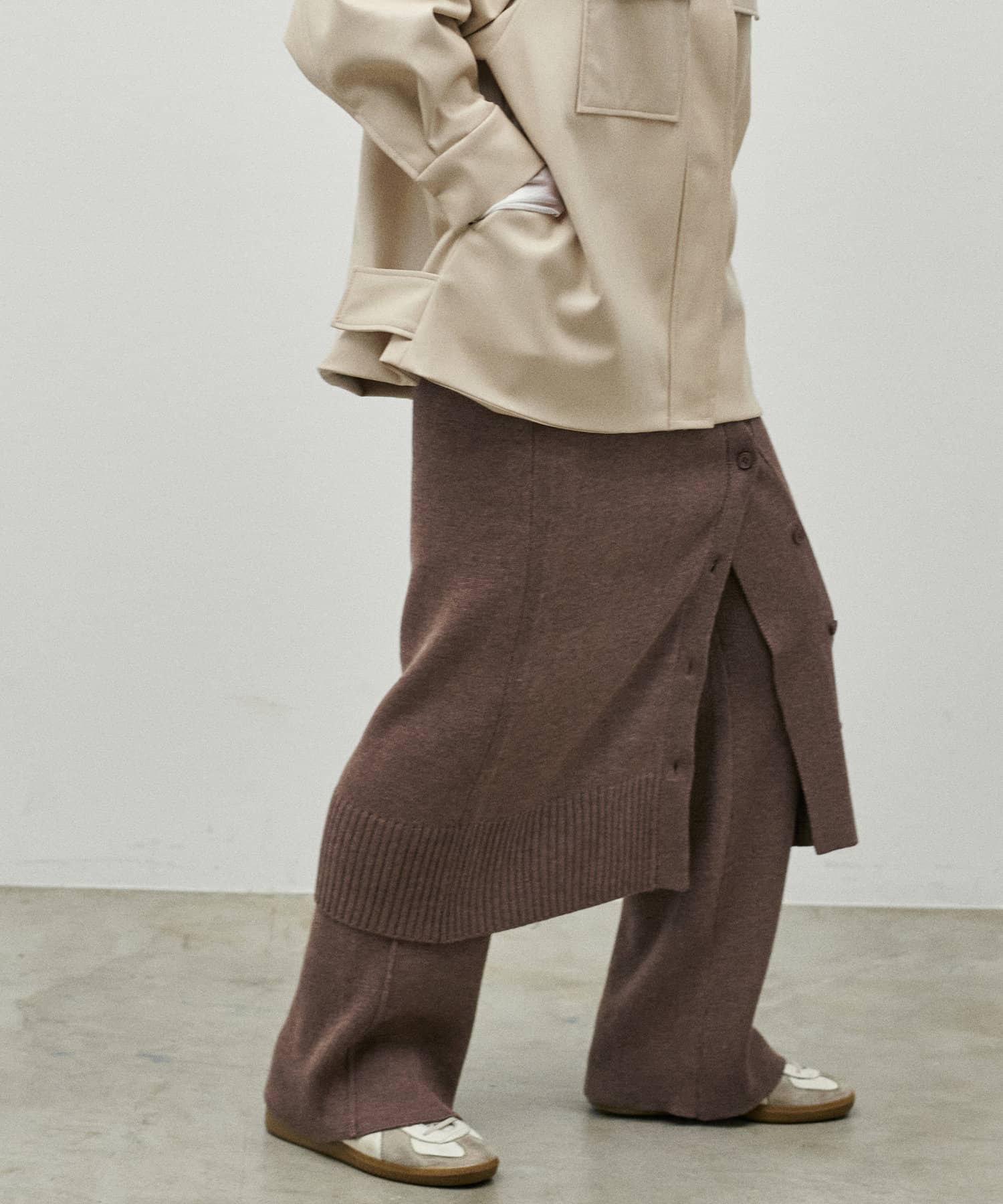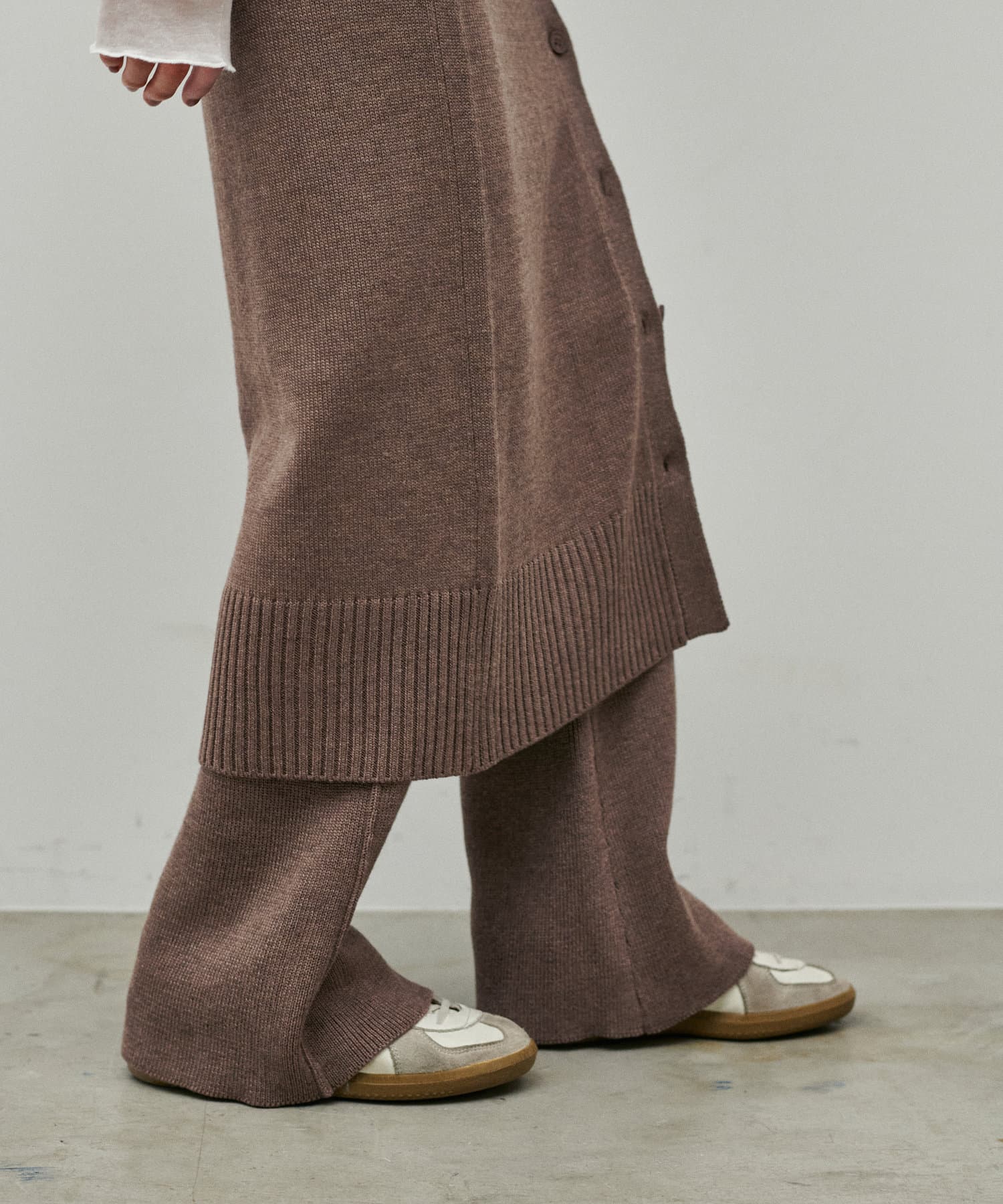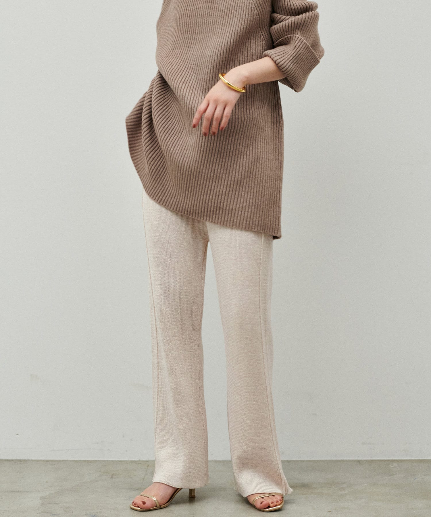 程よいサイジングのニットパンツが登場。