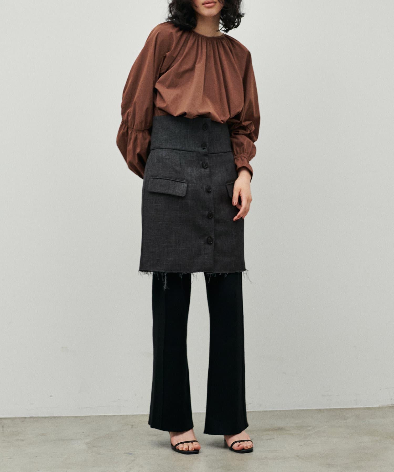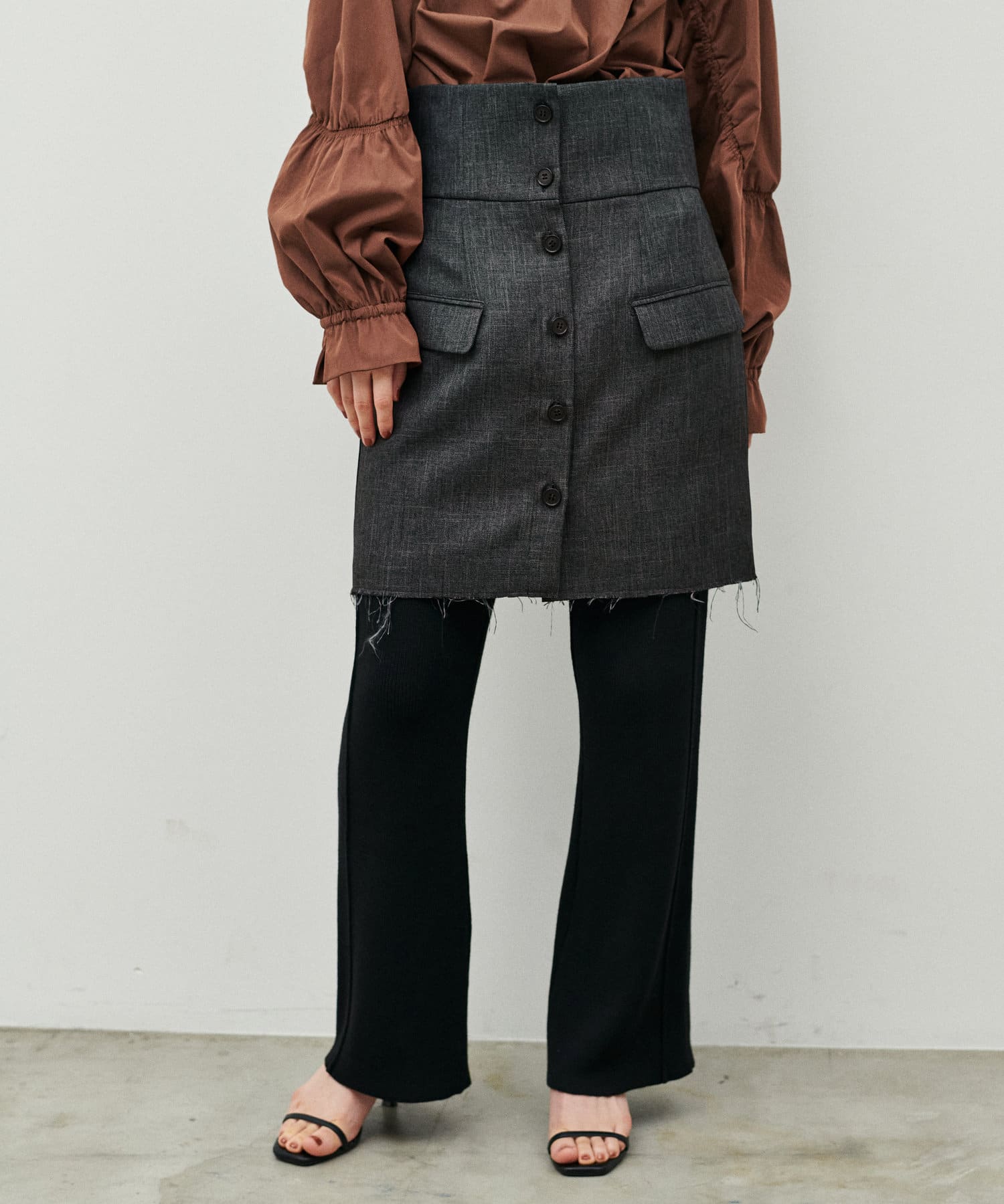 3042010140 ウール混前開き2WAYスカートと