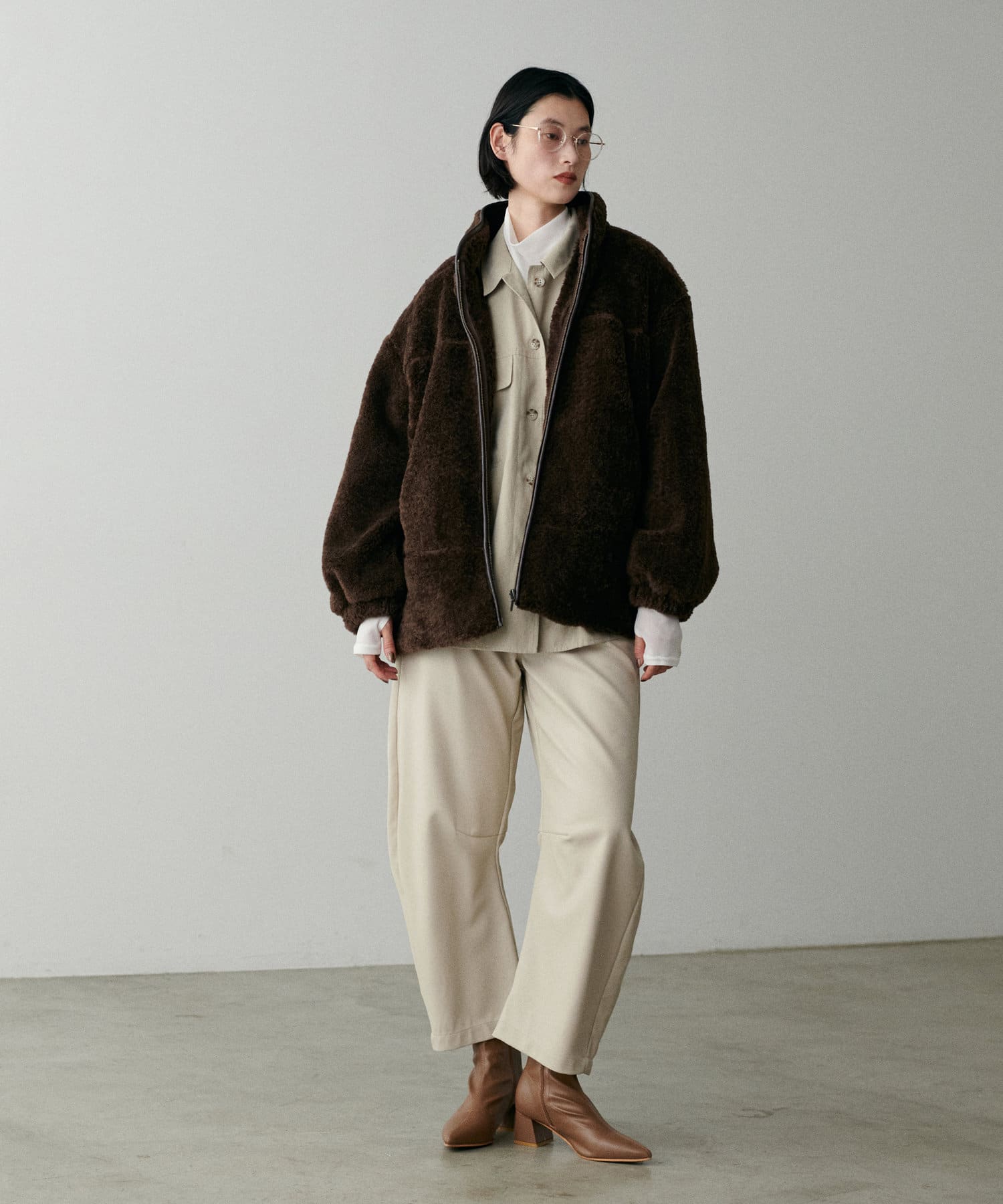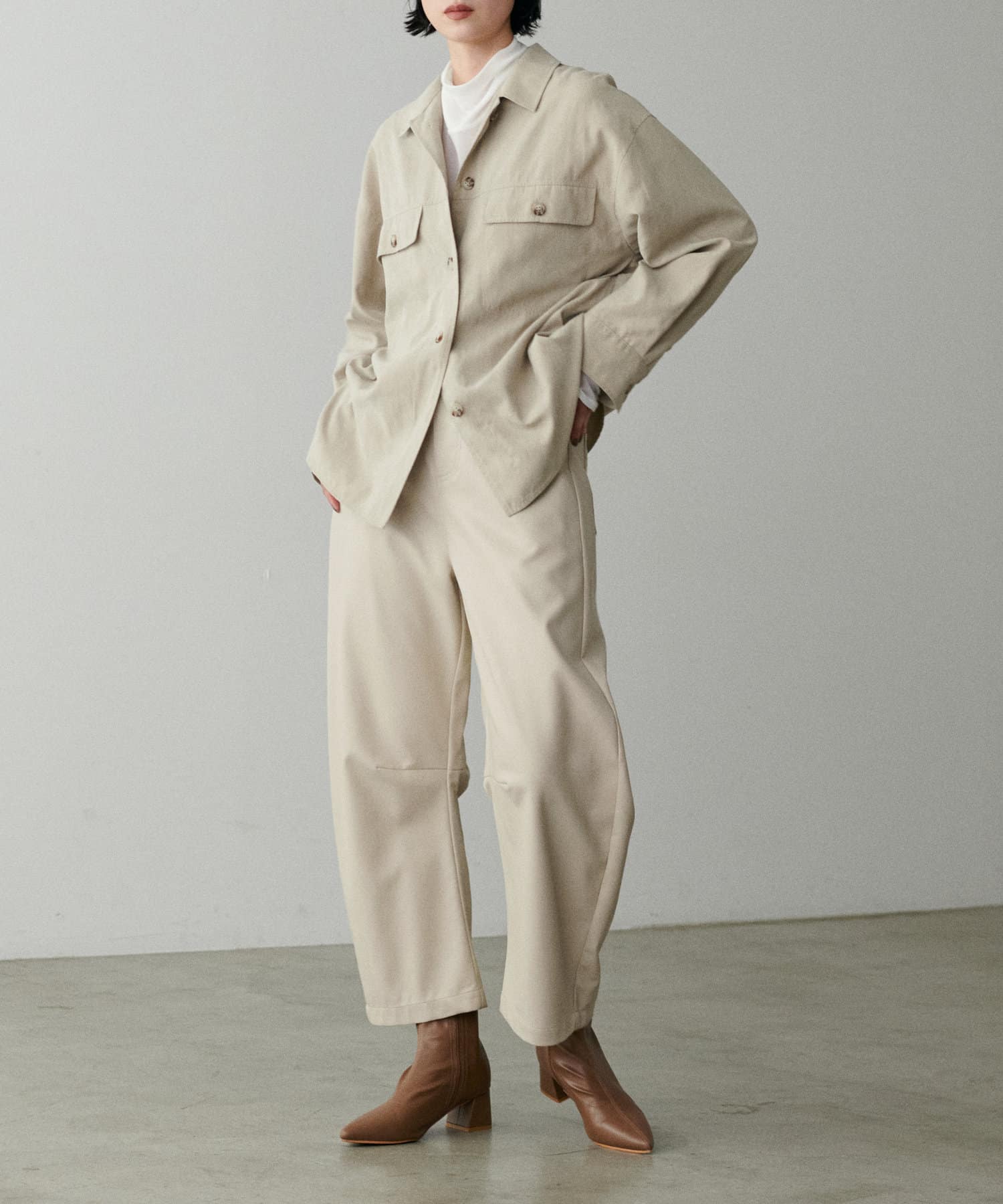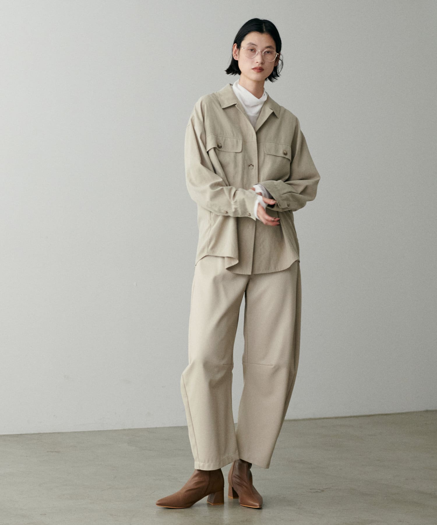 程よくマットツヤ感でモードなスタイルを取り入れやすい素材です。