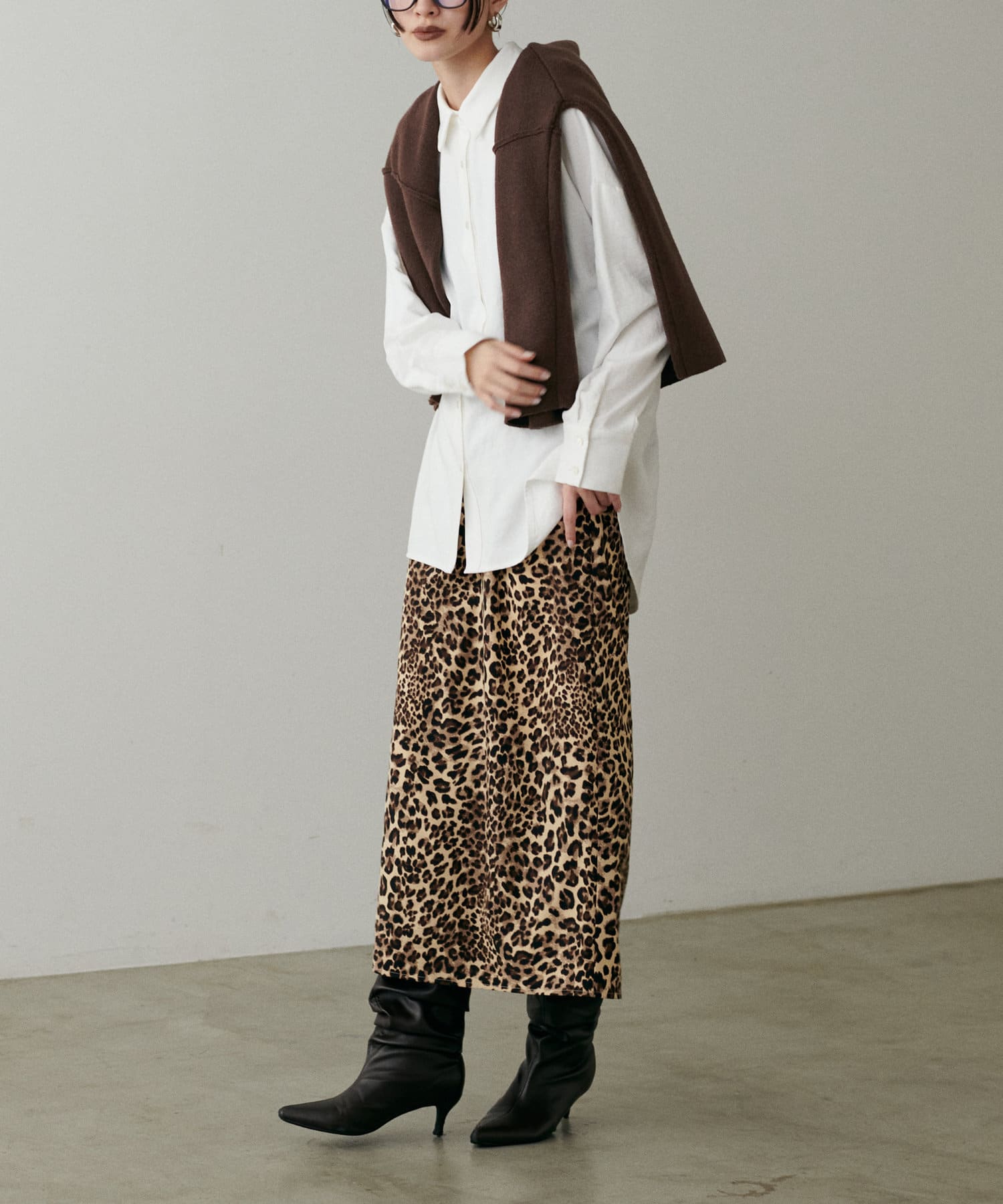 柔らかい素材感なのでニットやカーディガンのインナーにしても