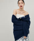 シャギー片畦Vネックニットカーディガン