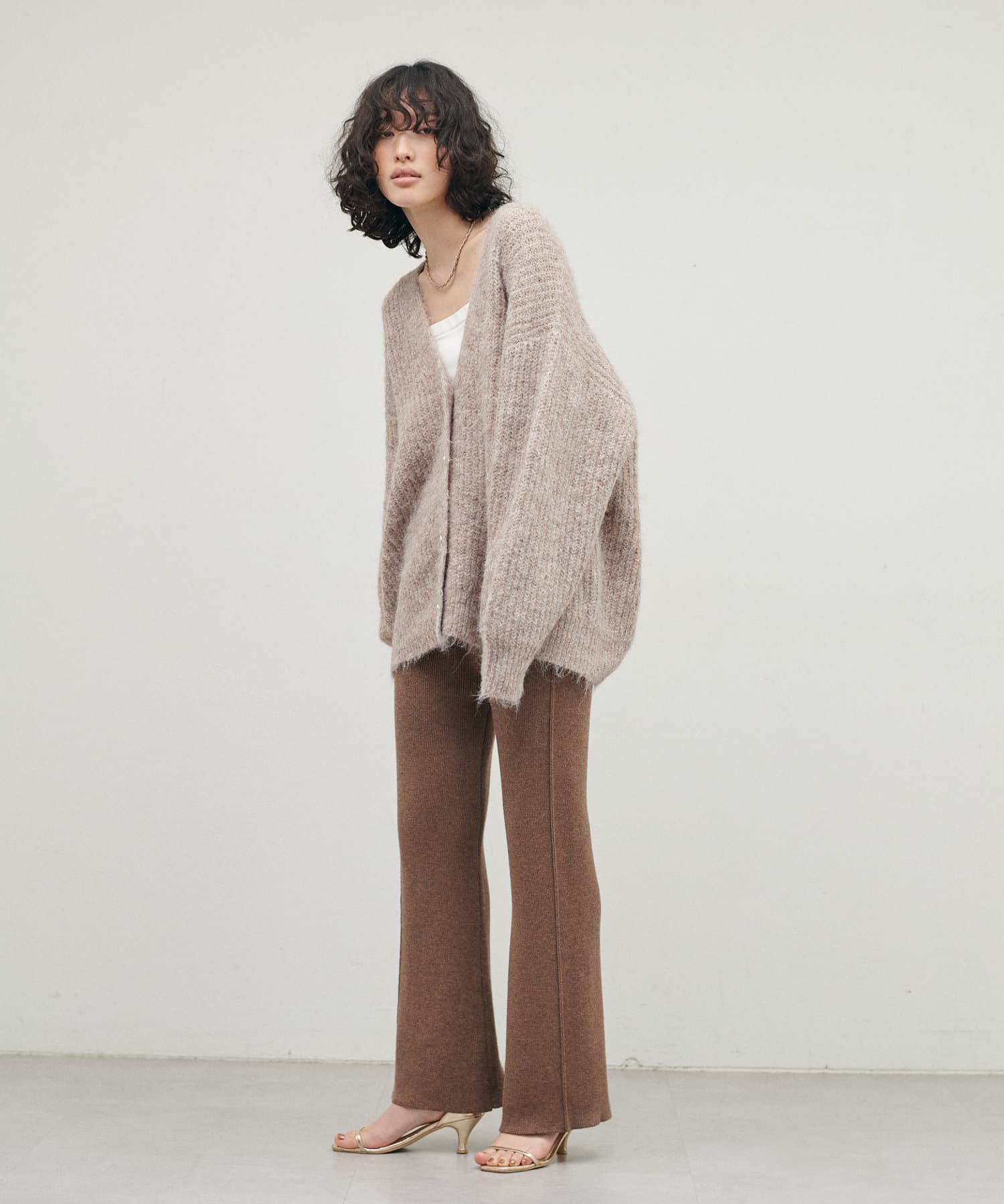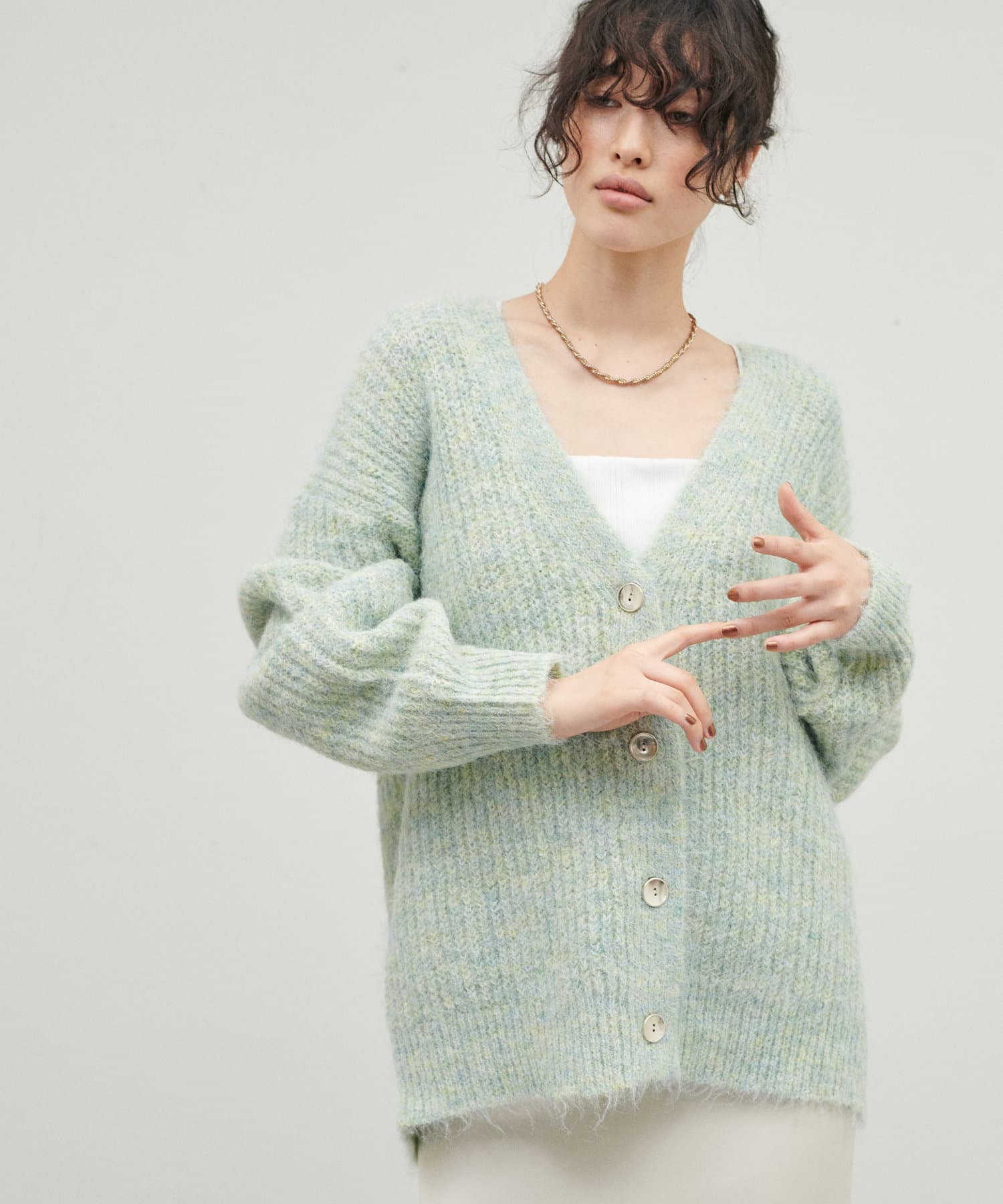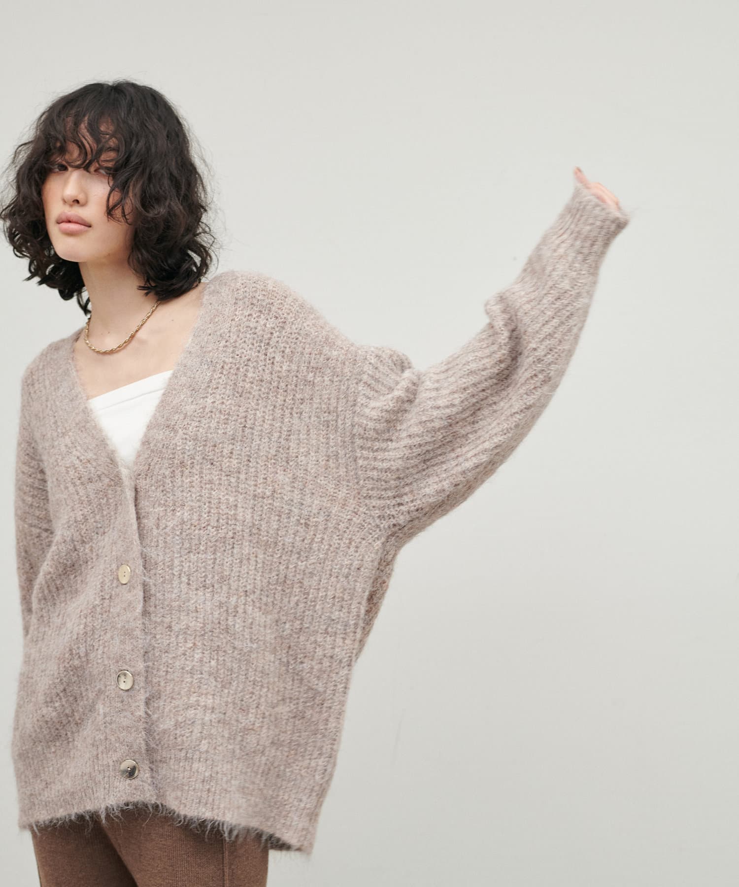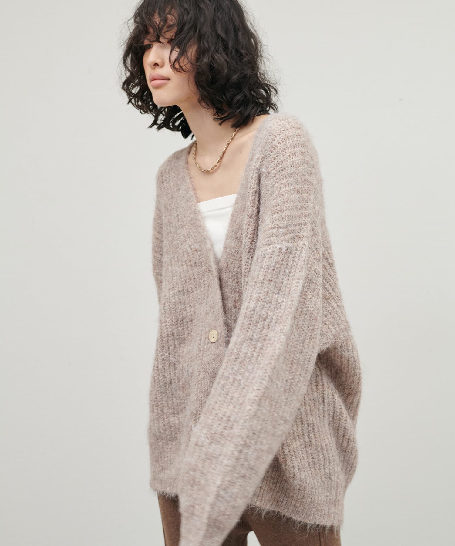 シャギー片畦Vネックニットカーディガン