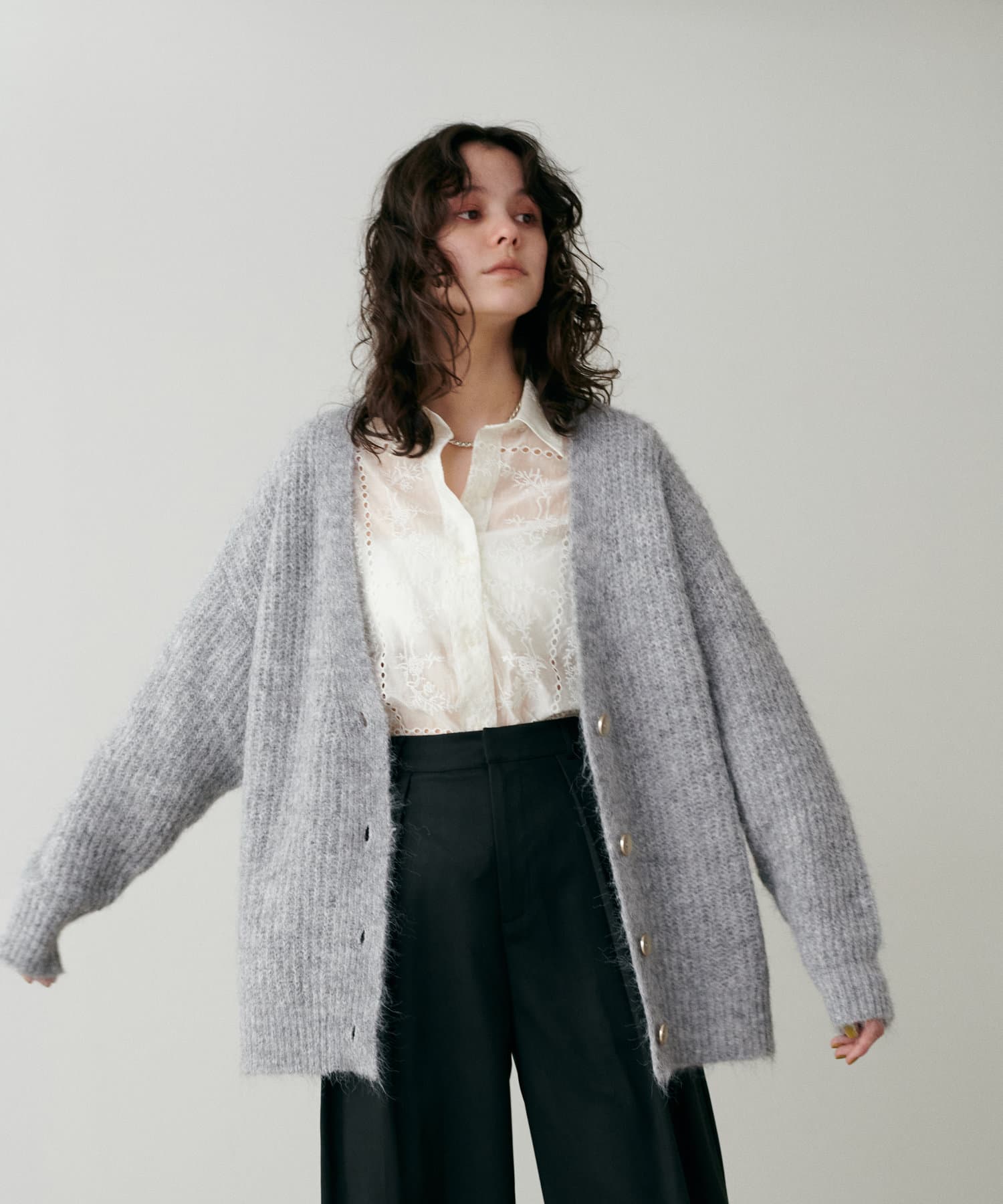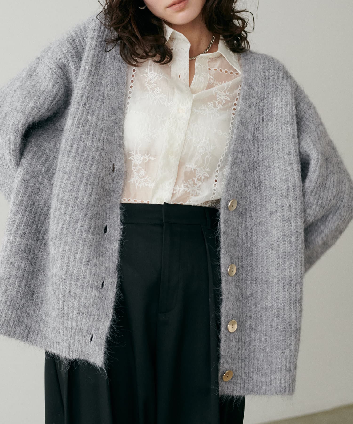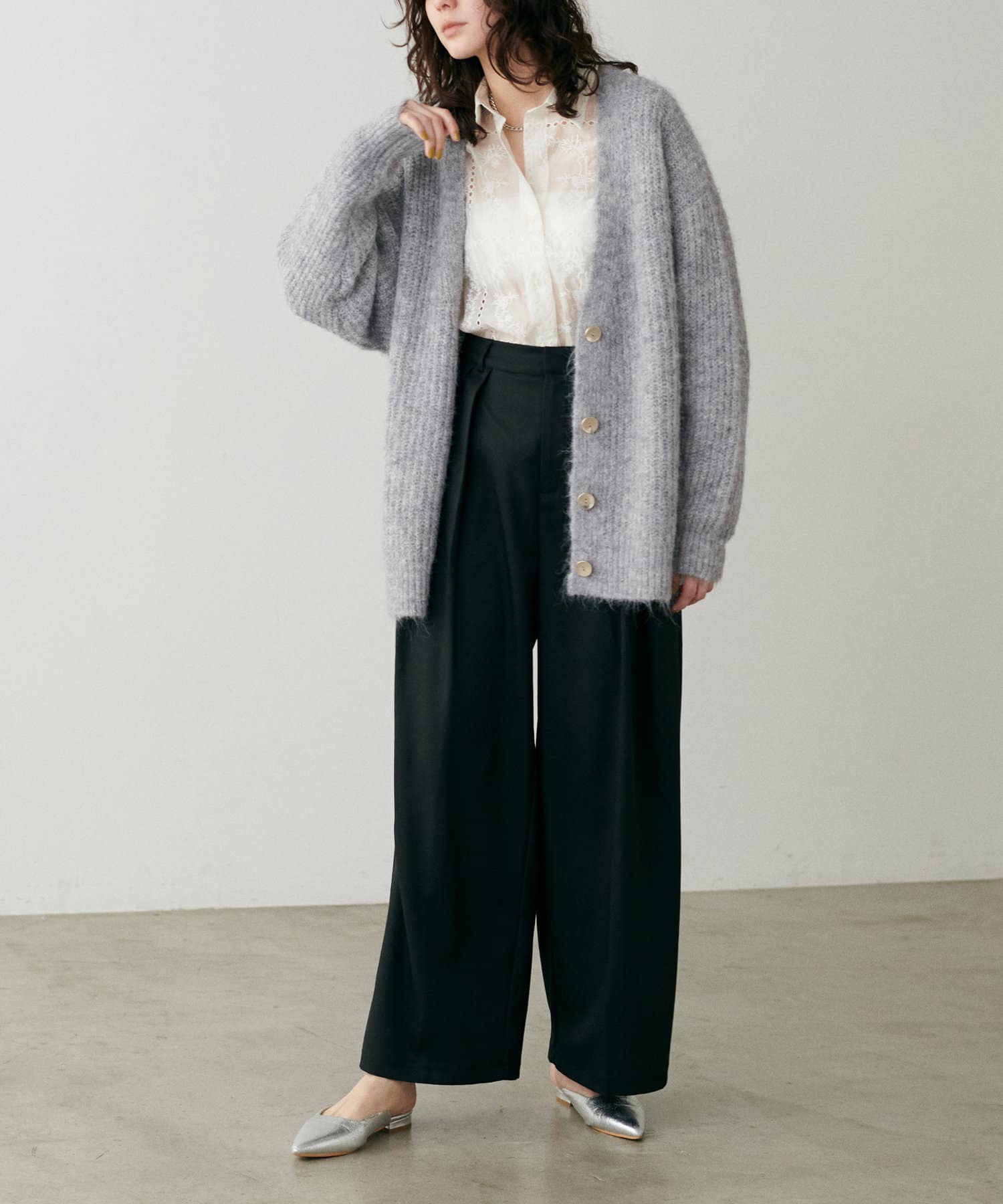 スタイリングにやわらかなニュアンス感を演出してくれる一着。