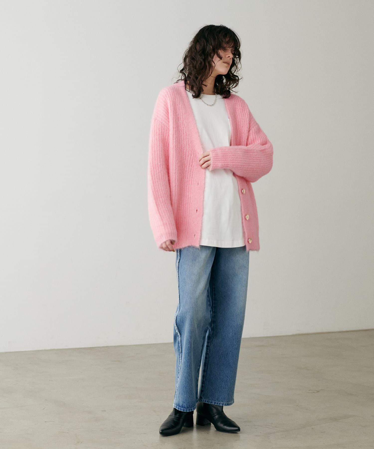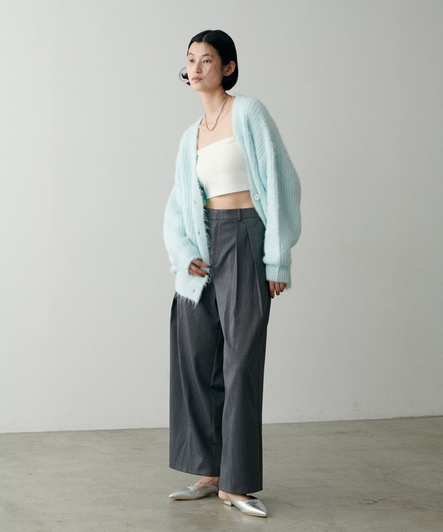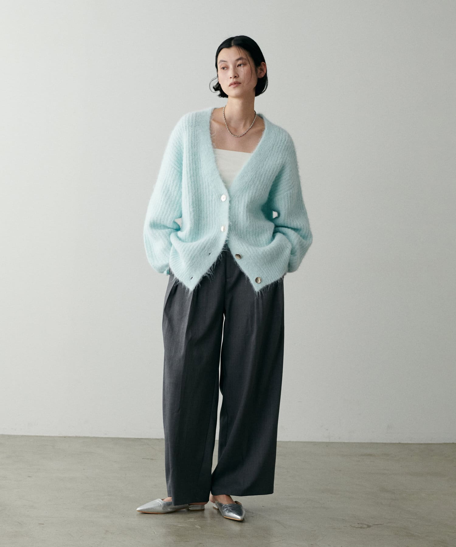 スタイリングにやわらかなニュアンス感を演出してくれる一着。