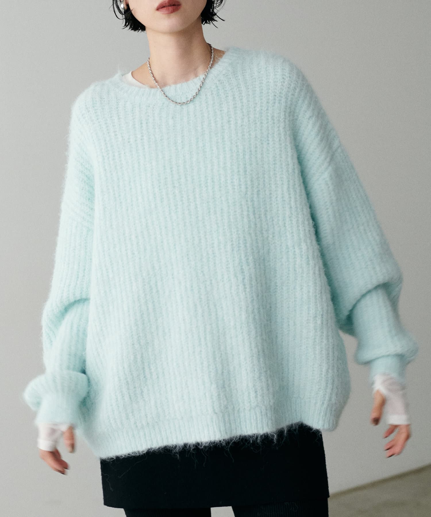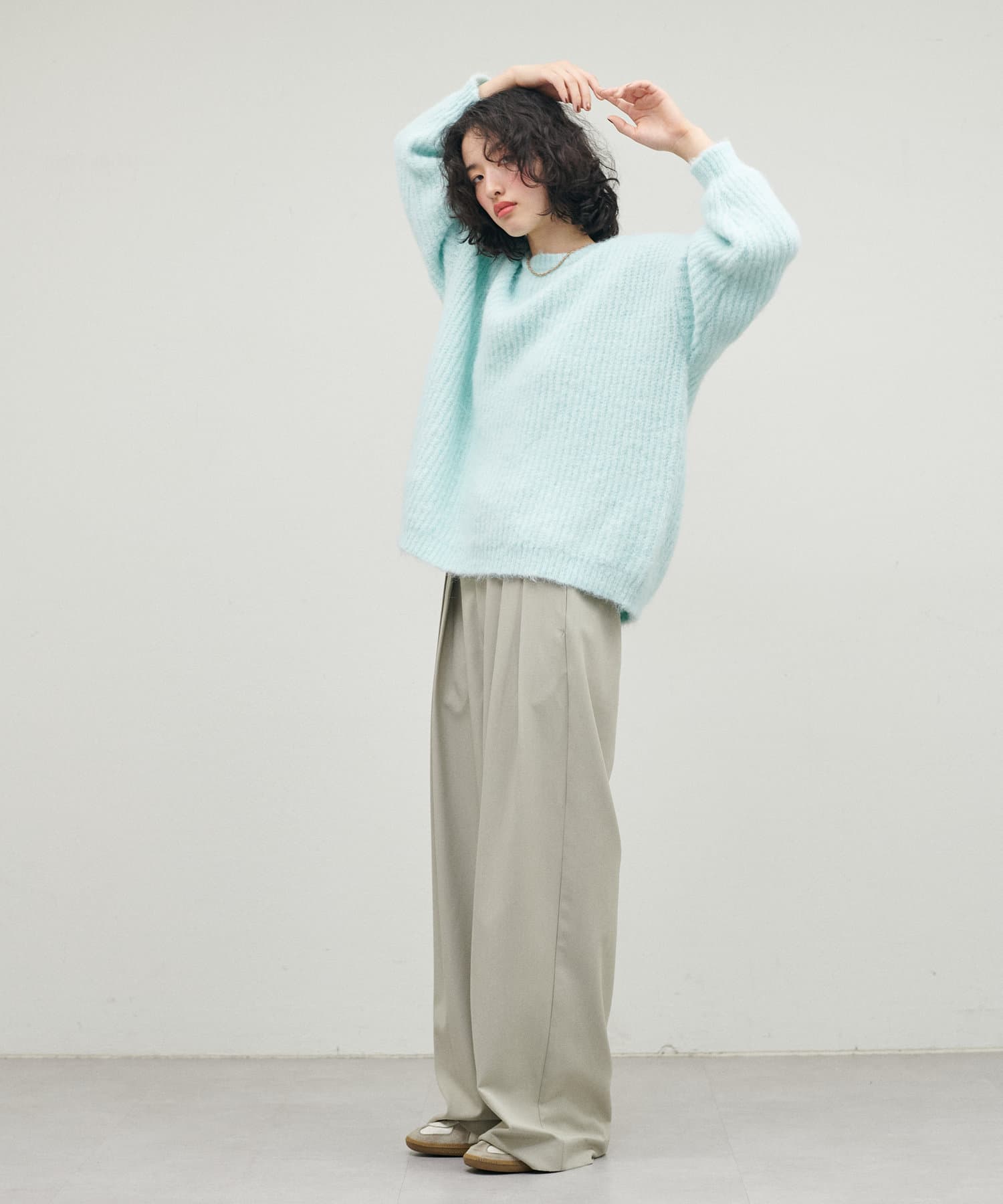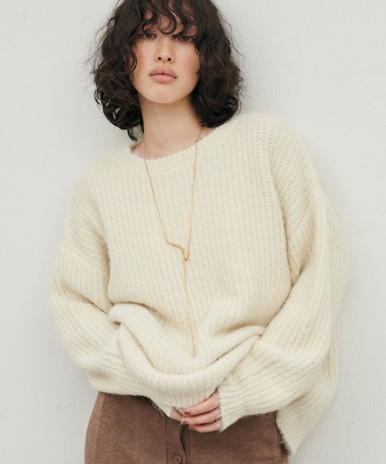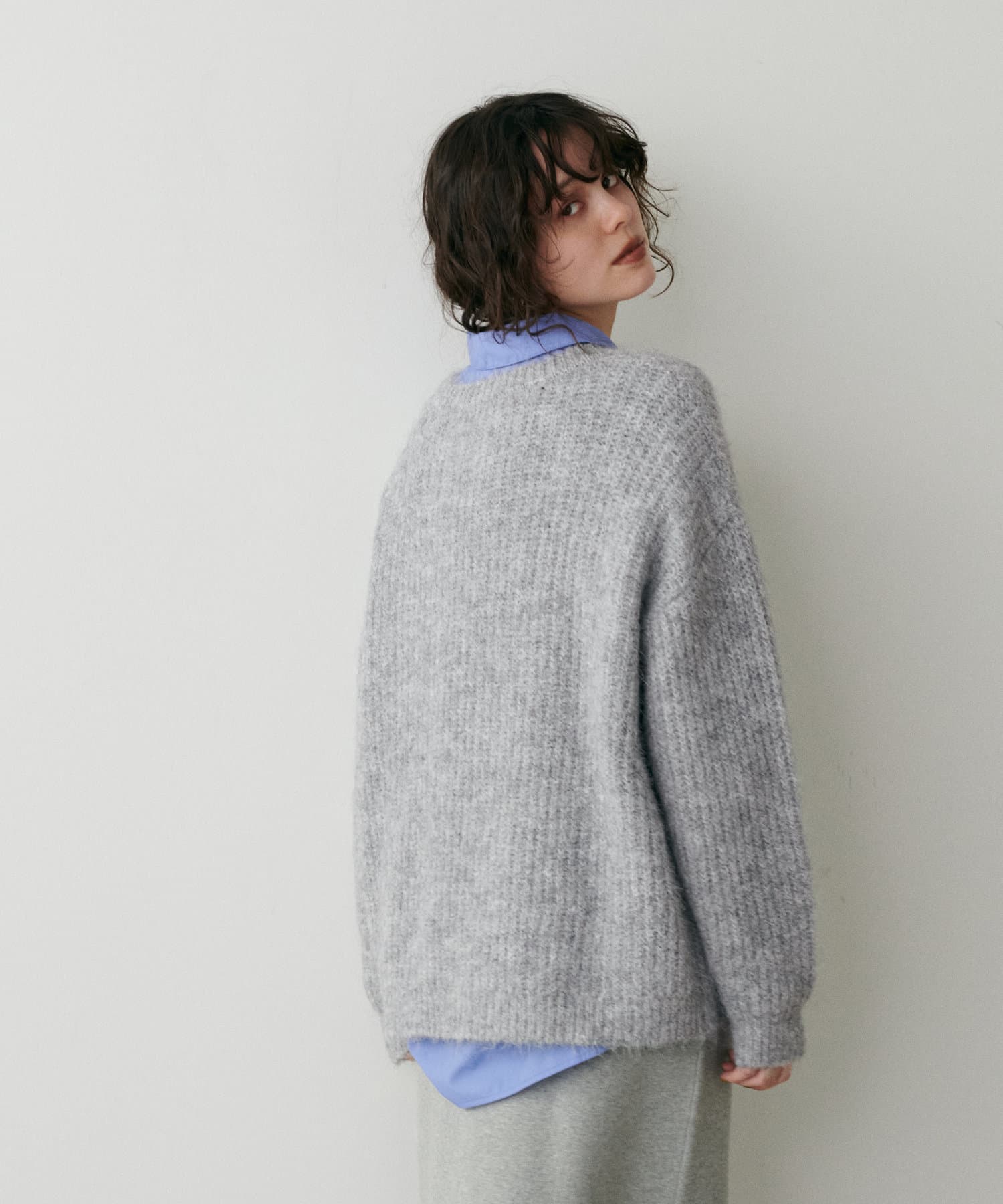 柔らかな質感のふわふわ毛足を楽しめるシャギー素材を使用したニット。