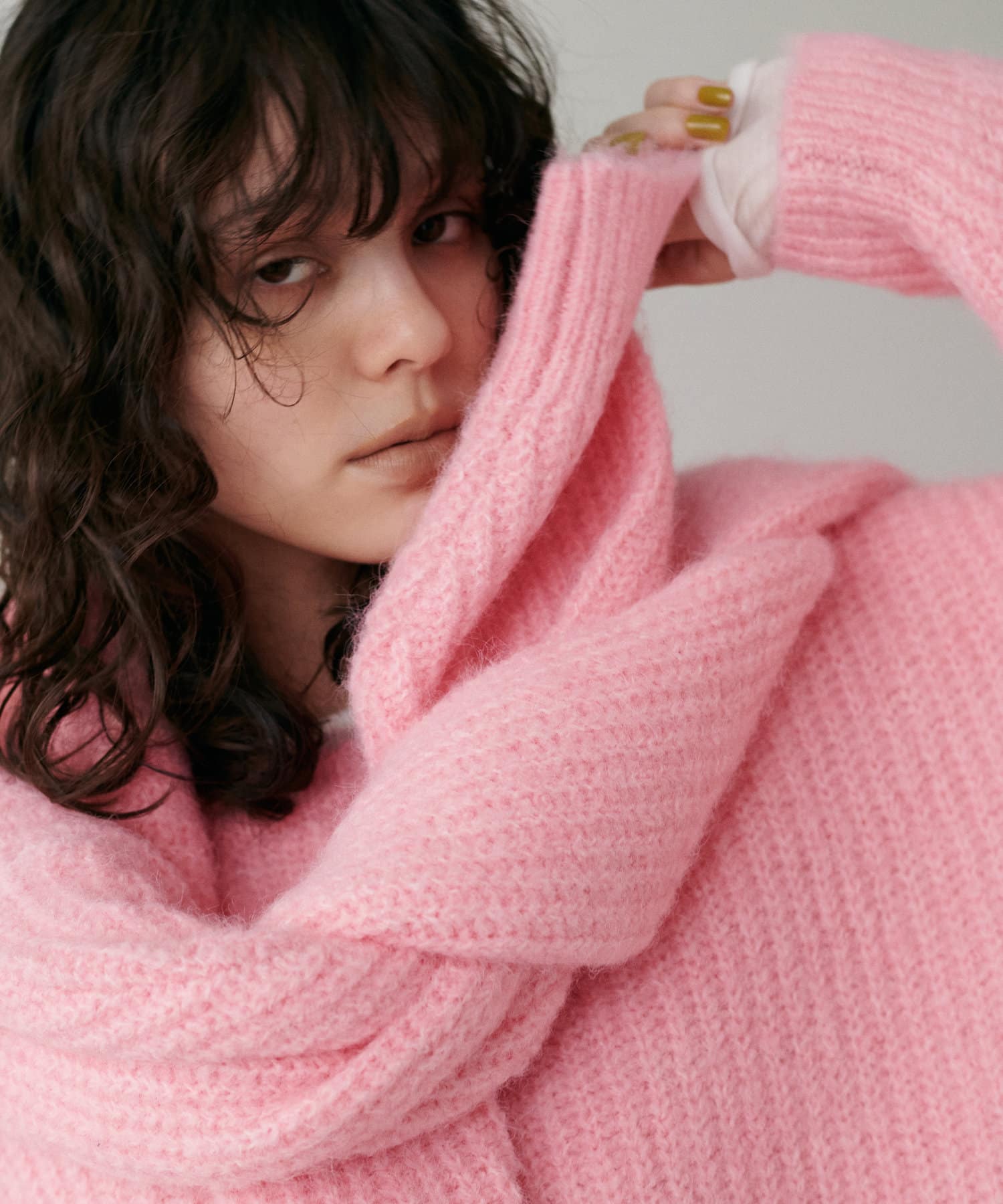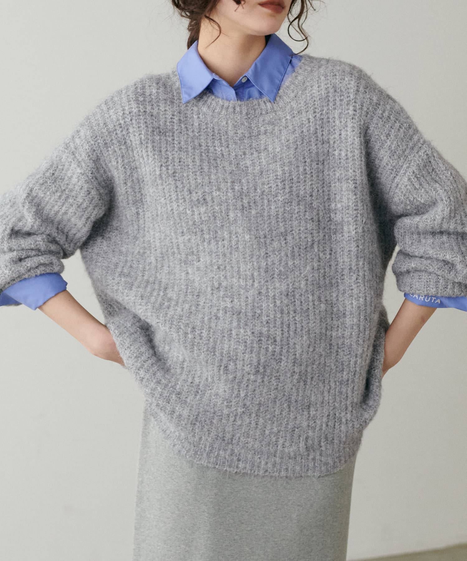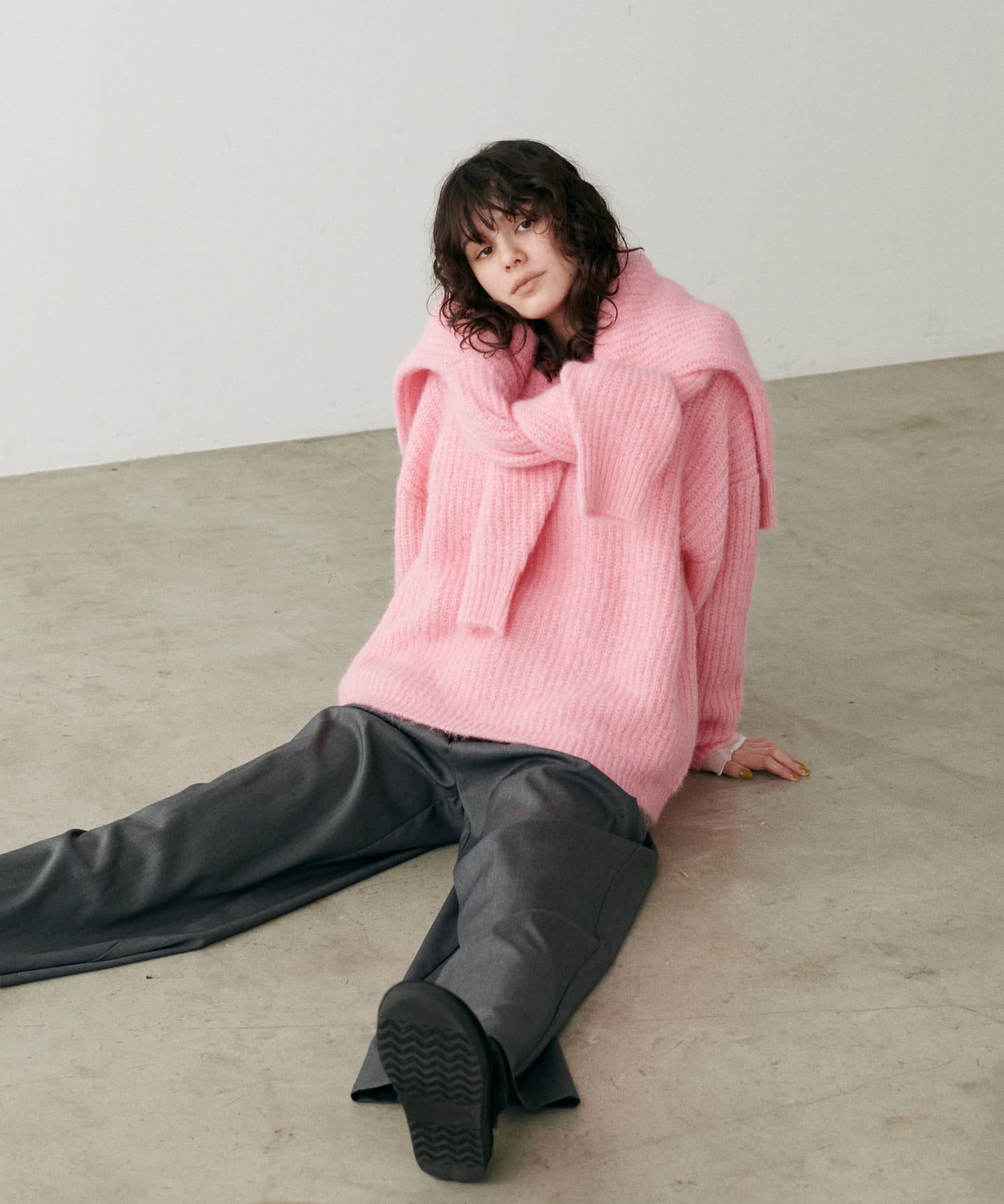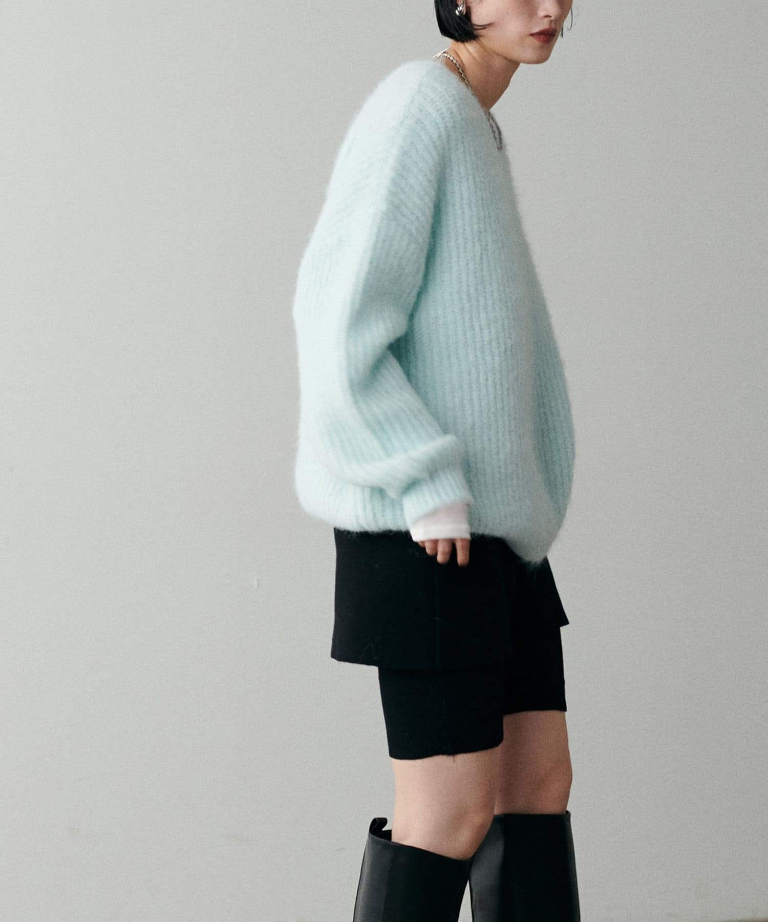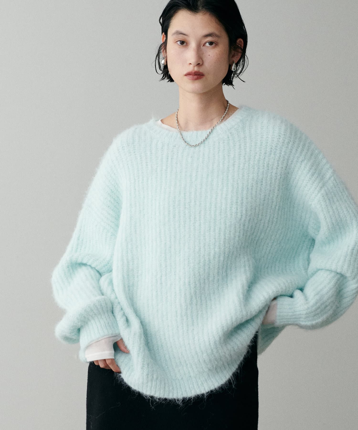柔らかな質感のふわふわ毛足を楽しめるシャギー素材を使用したニット。
