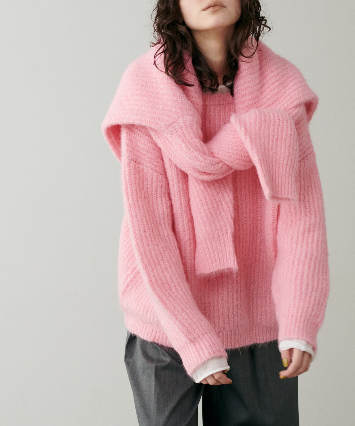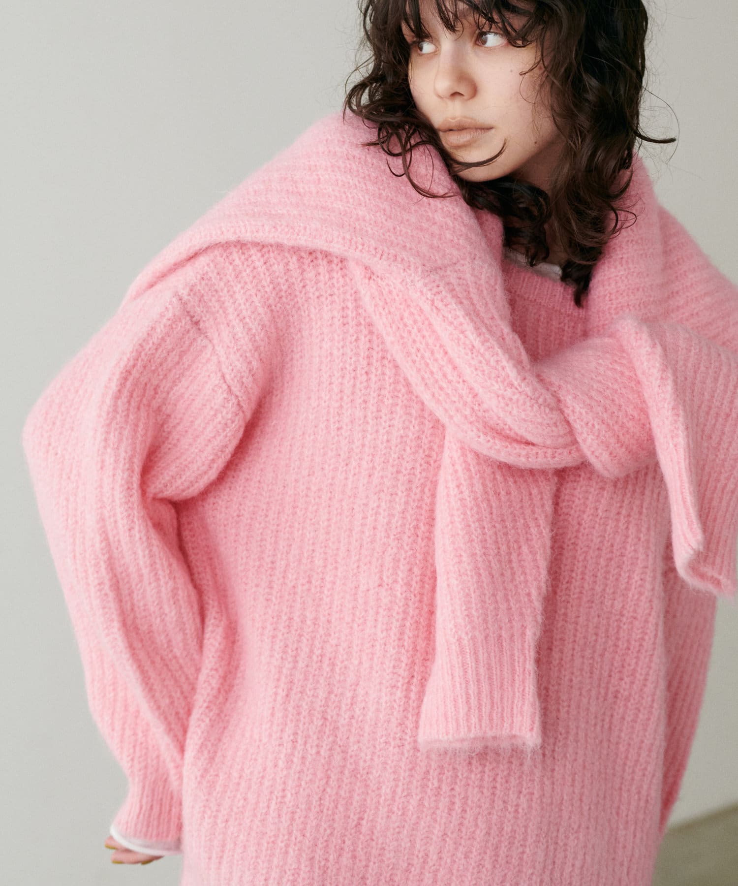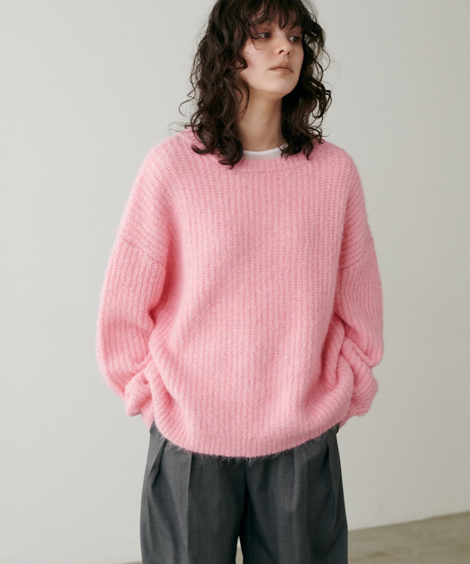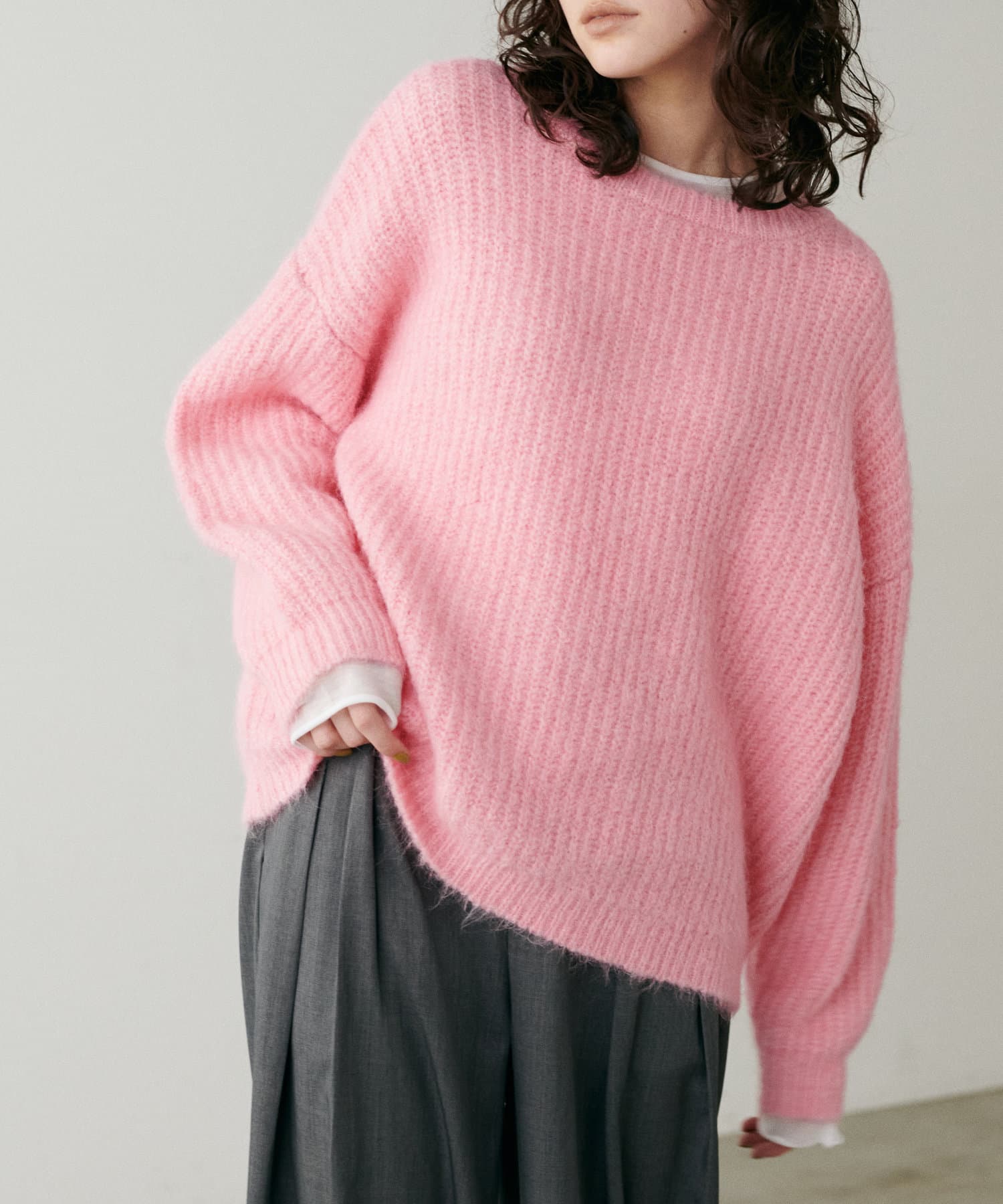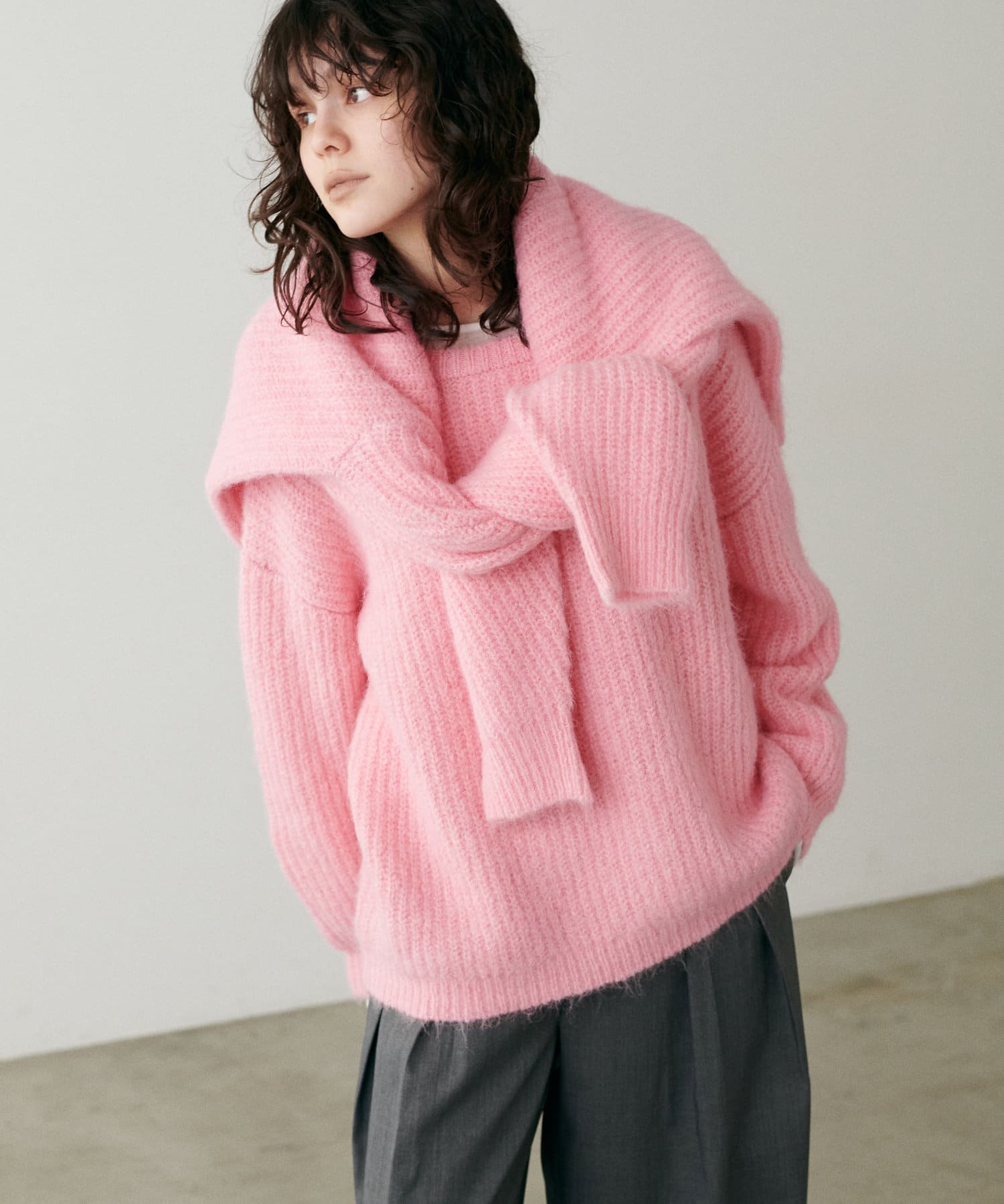 柔らかな質感のふわふわ毛足を楽しめるシャギー素材を使用したニット。