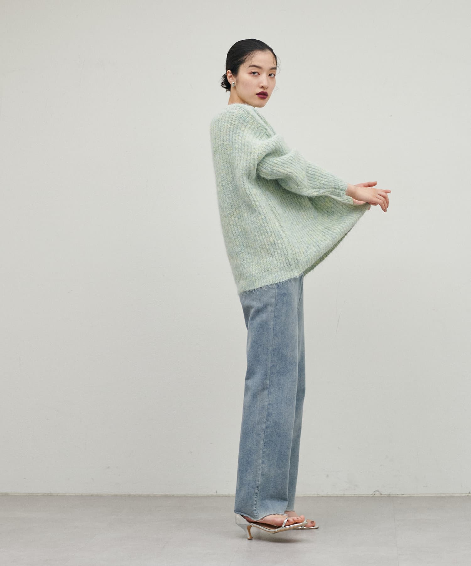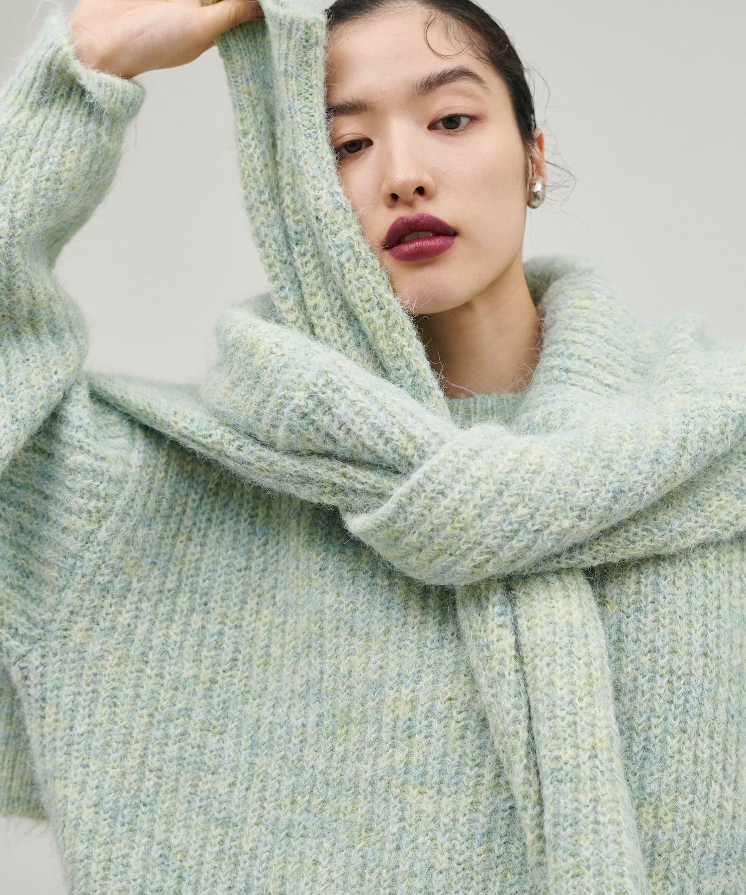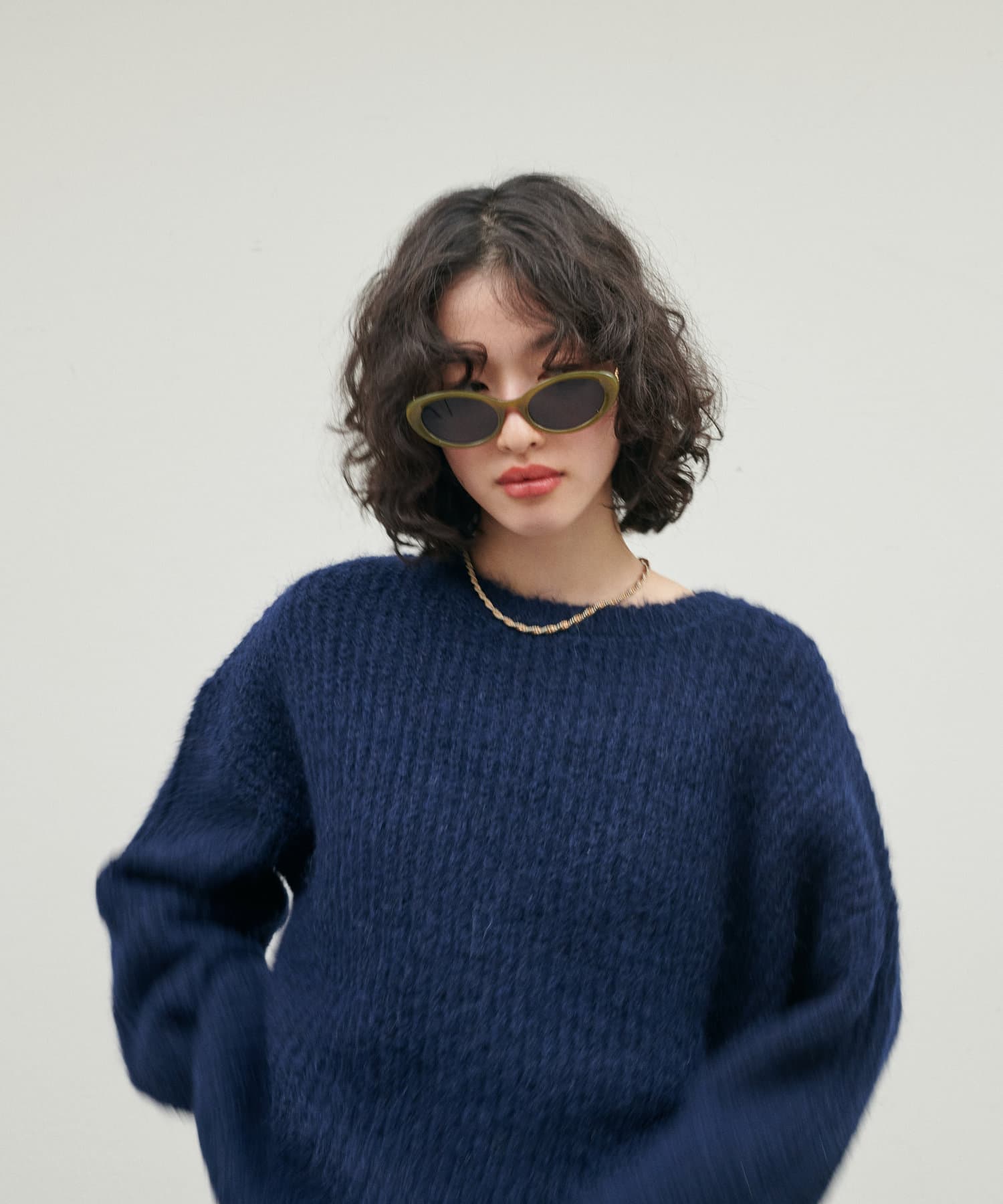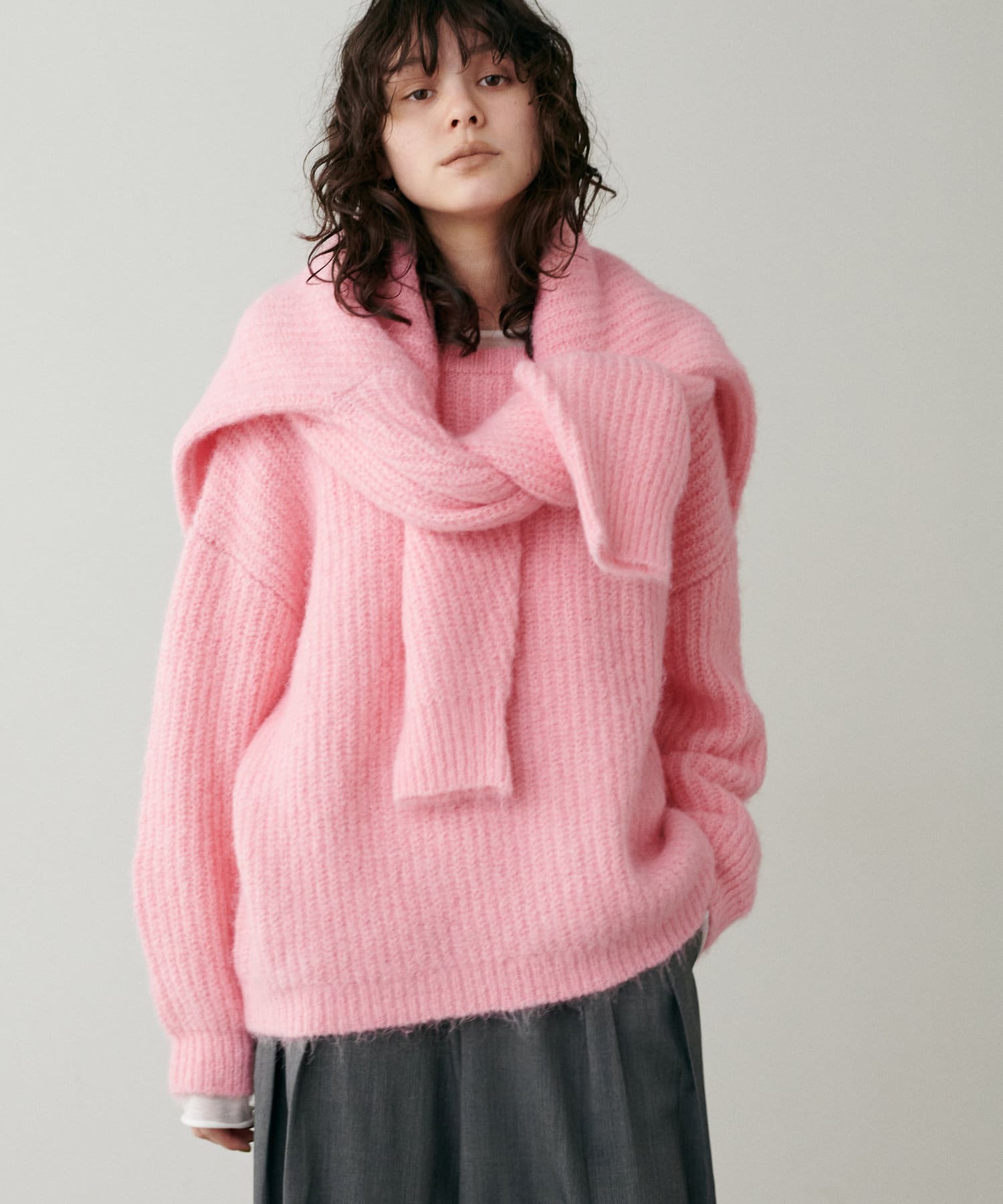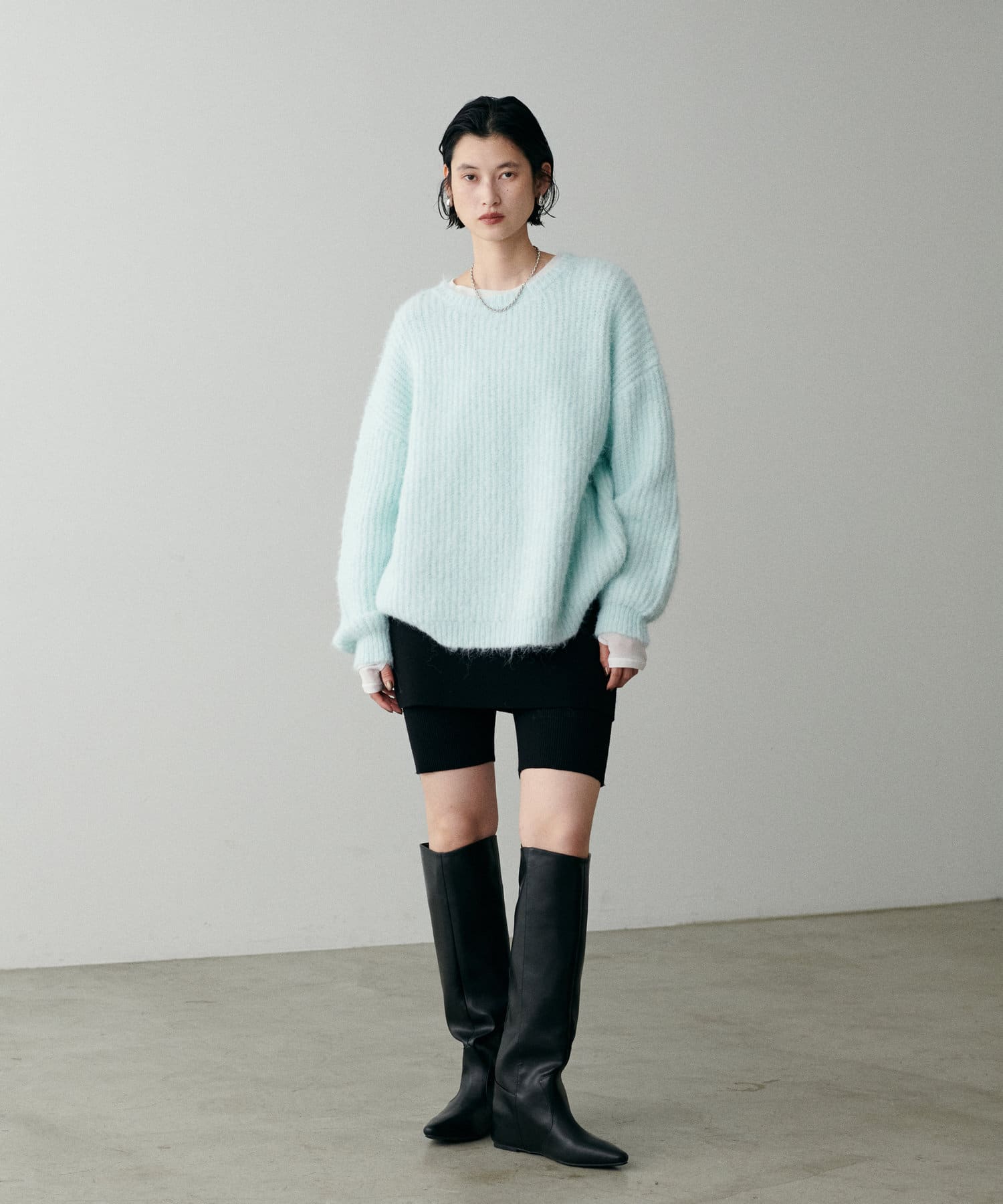 柔らかな質感のふわふわ毛足を楽しめるシャギー素材を使用したニット。