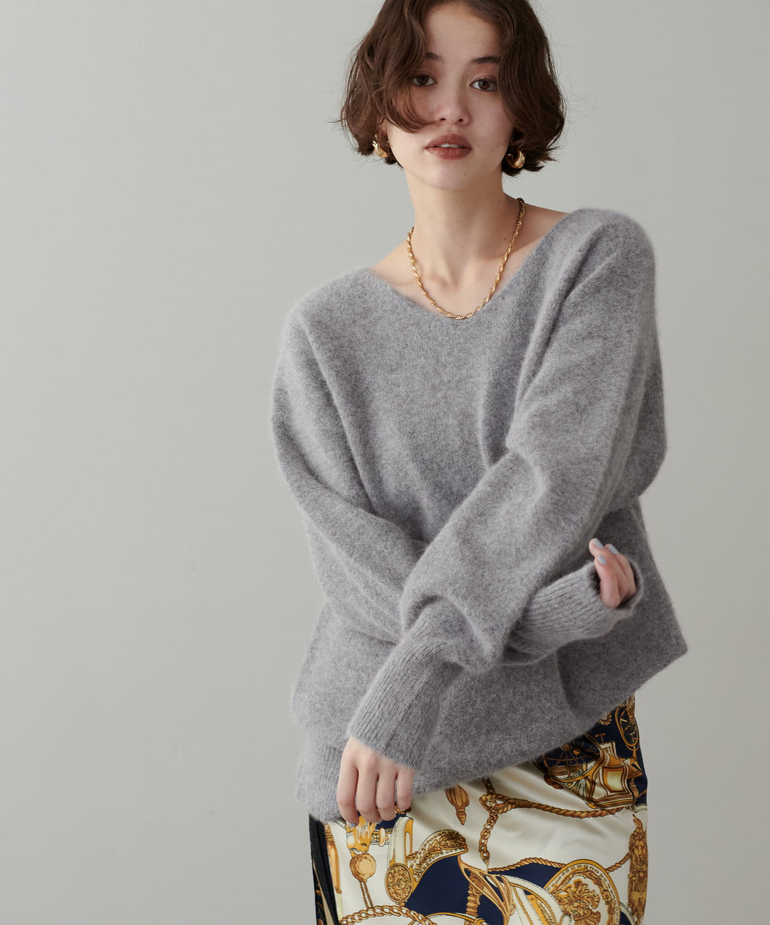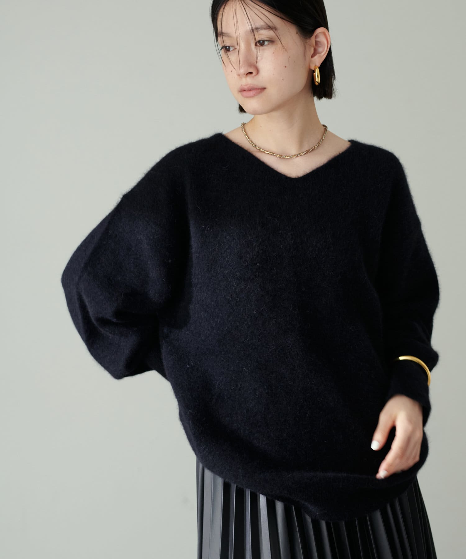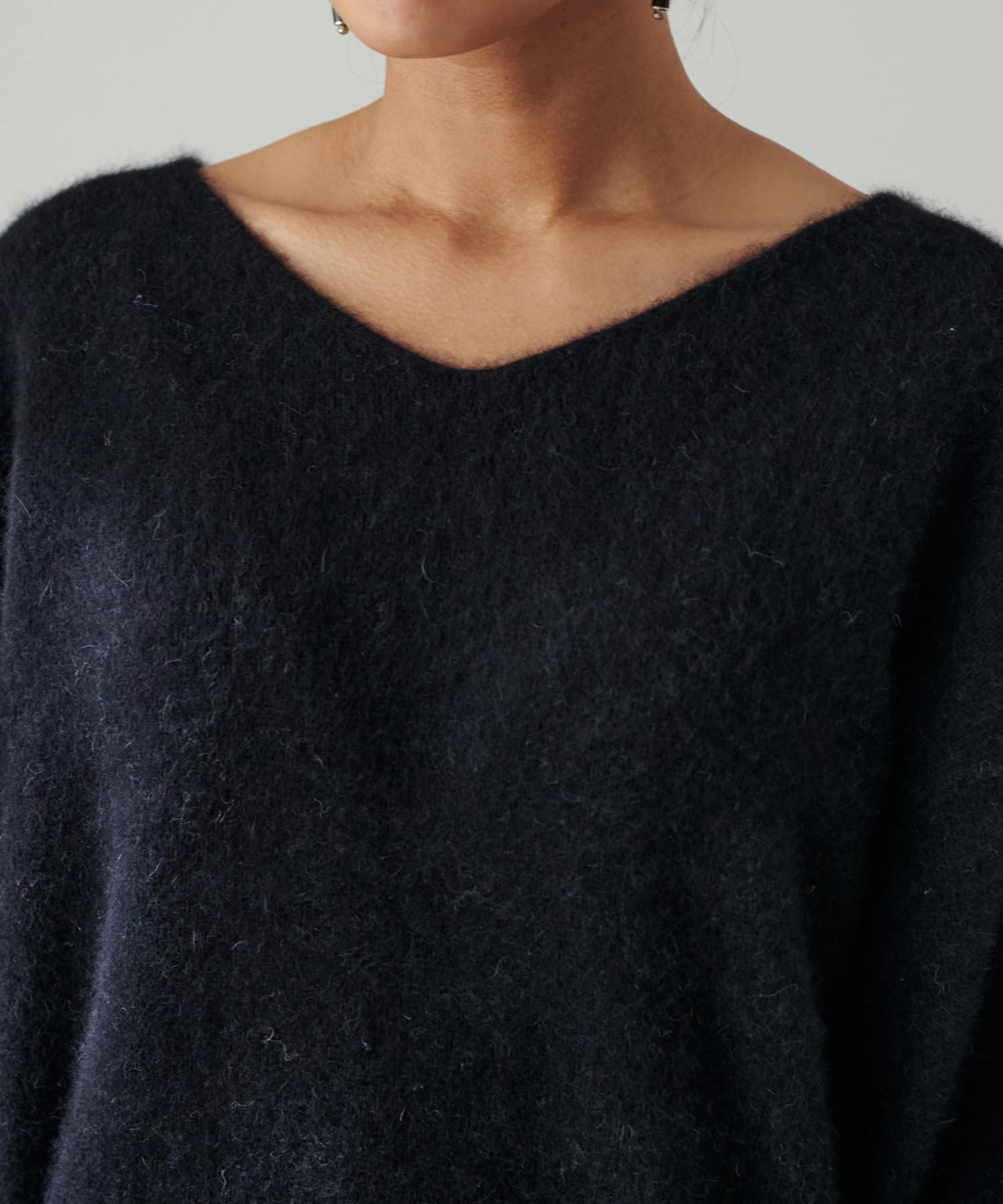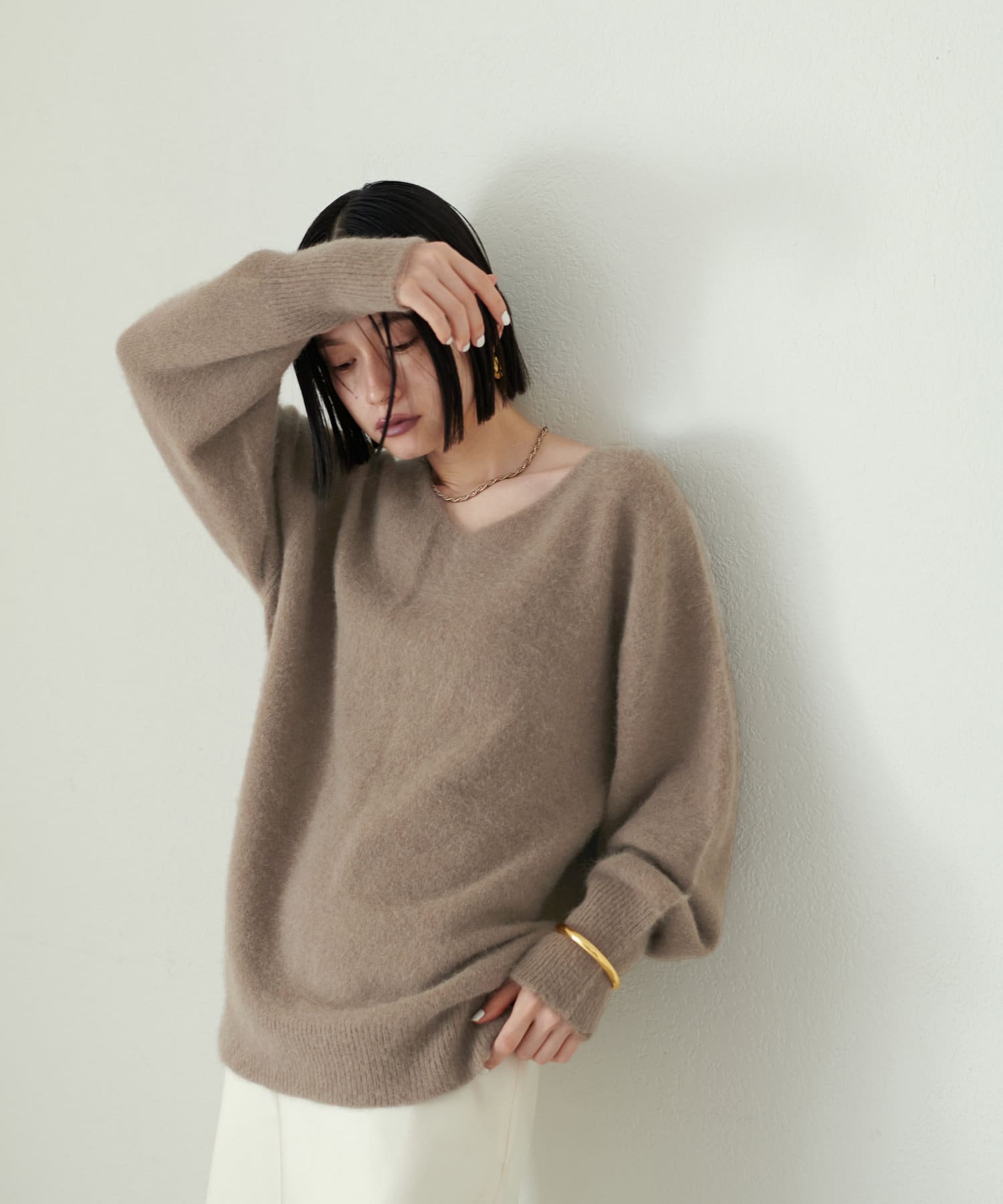 ゆるめのVネックデザインが顔回りをスッキリと見せてくれます。