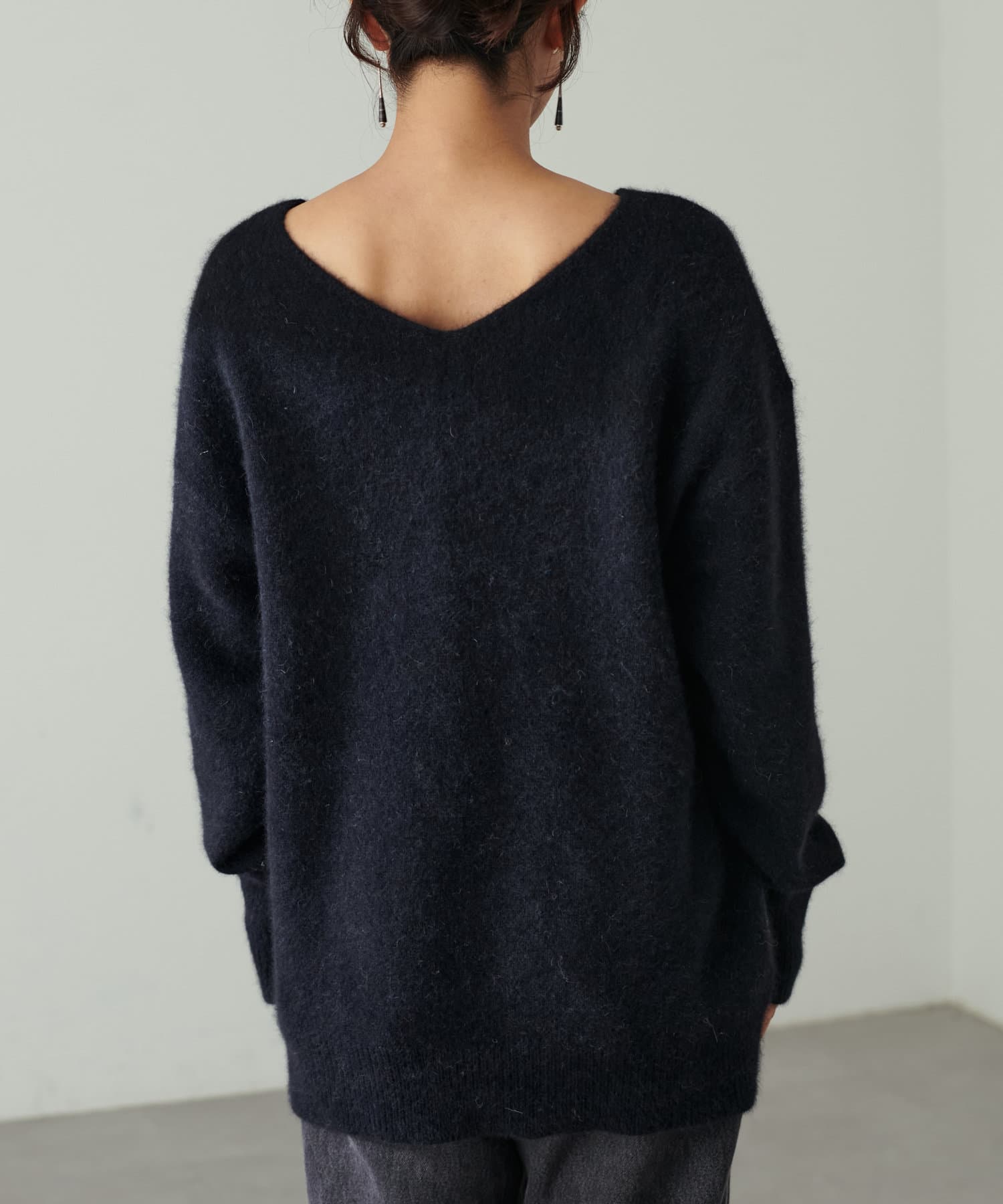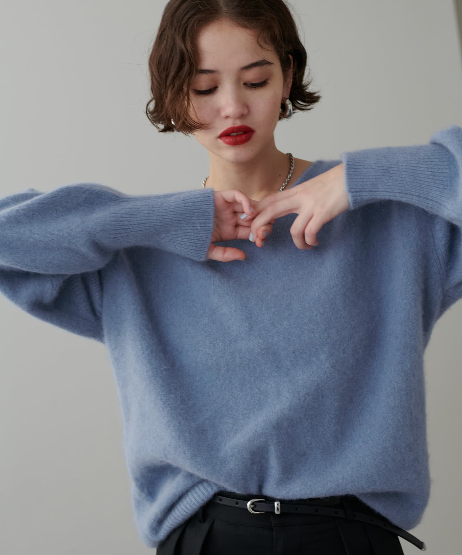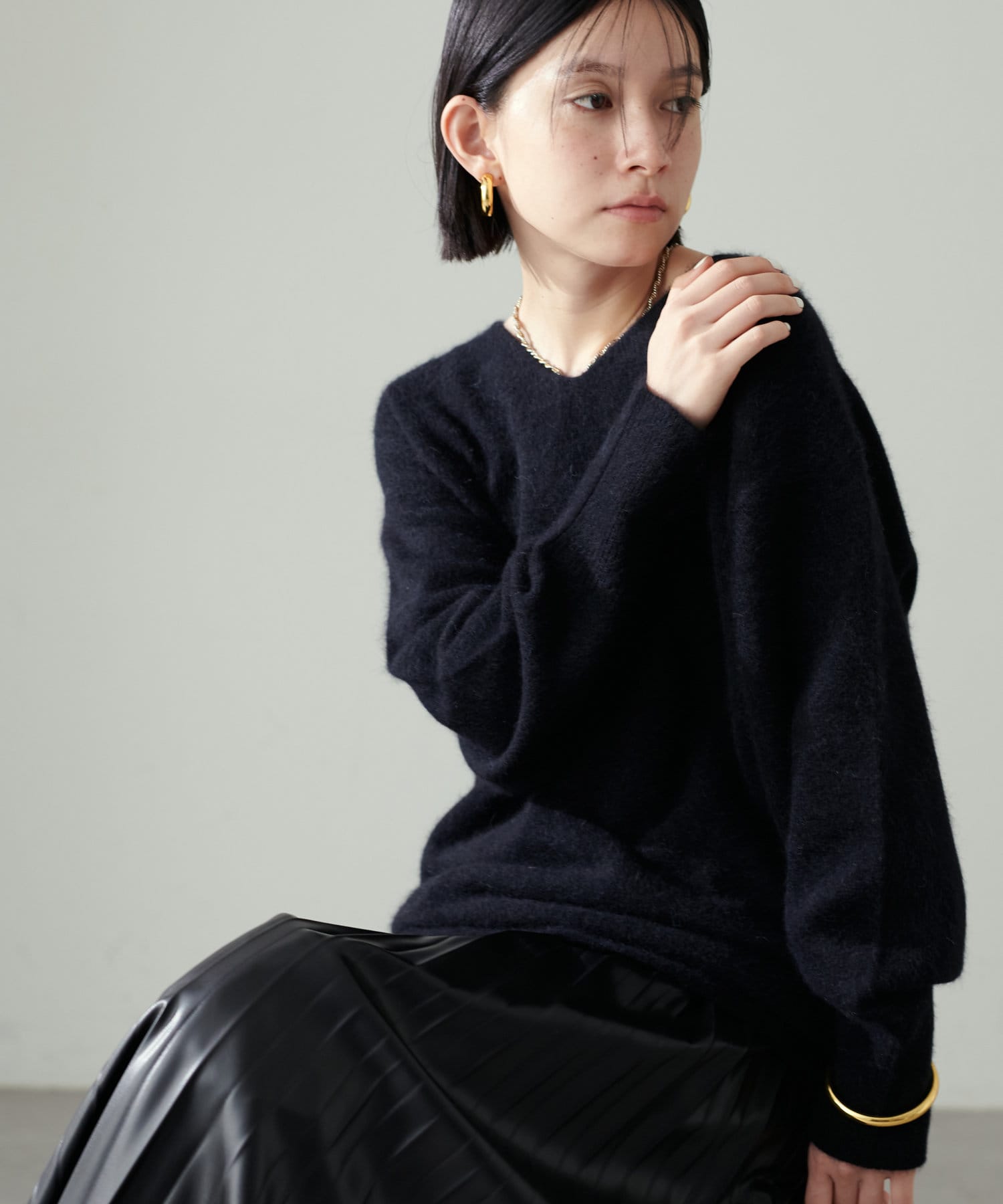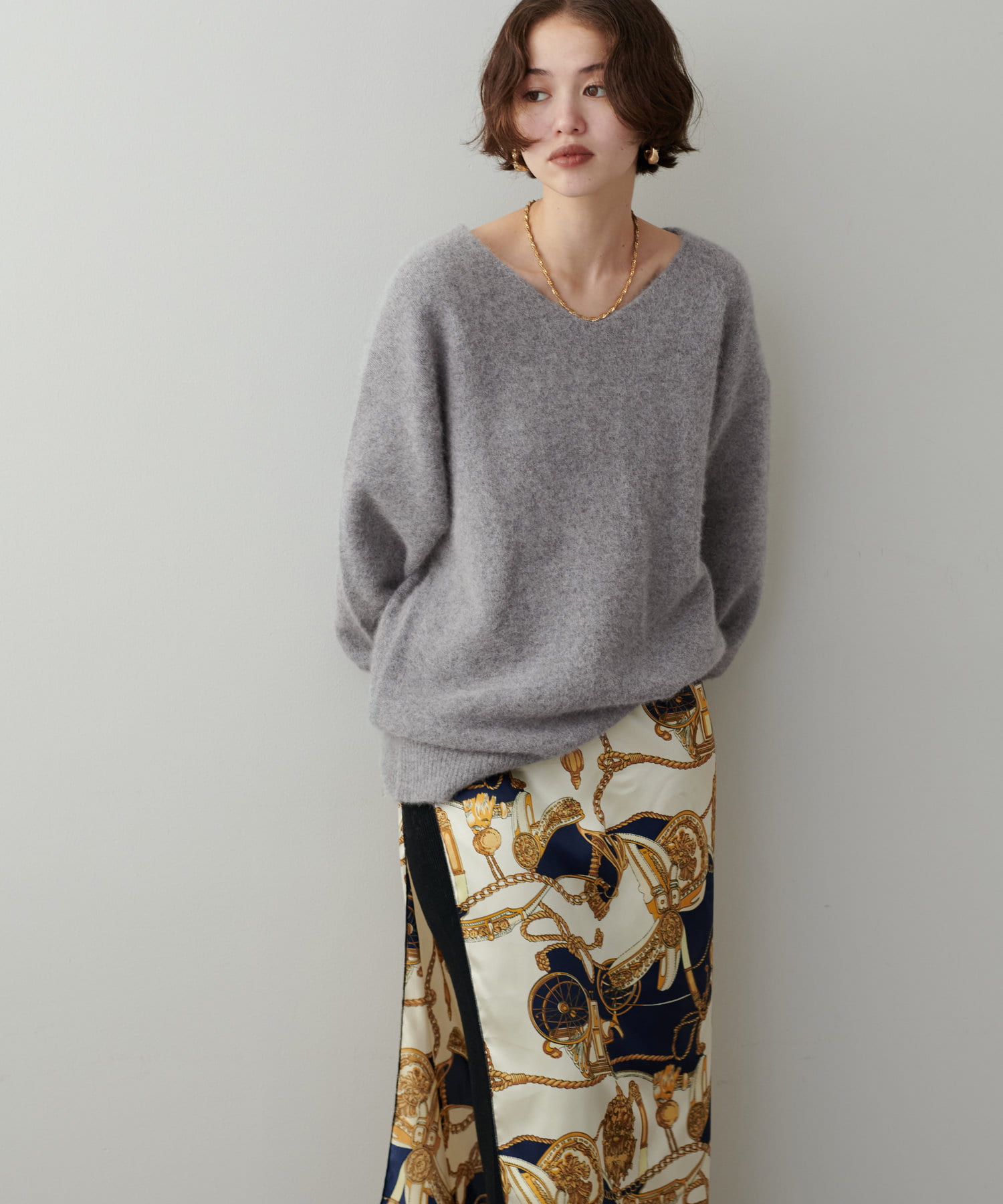 ゆるめのVネックデザインが顔回りをスッキリと見せてくれます。