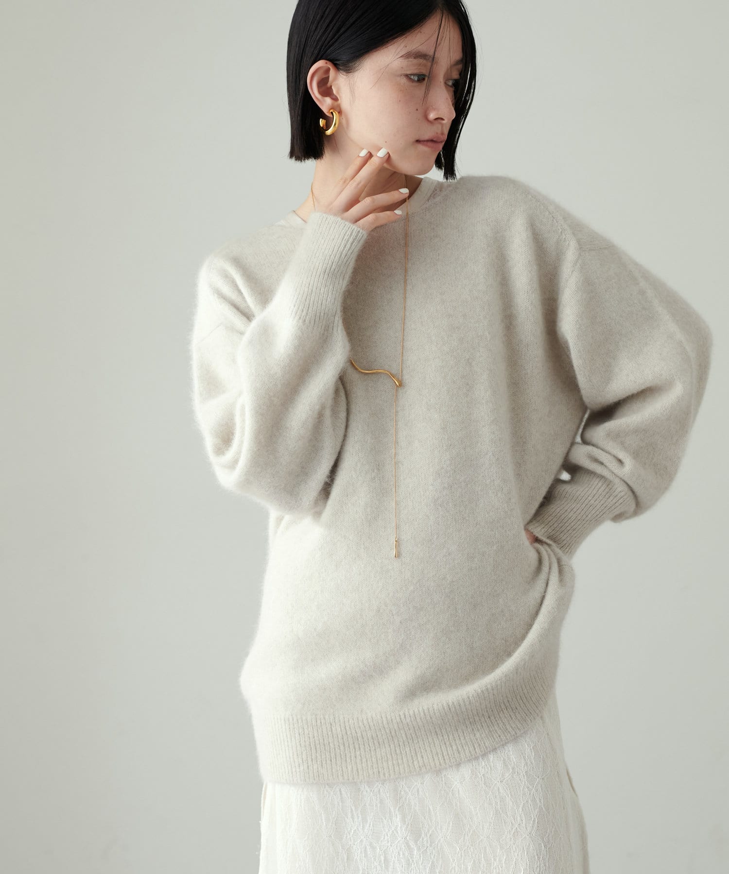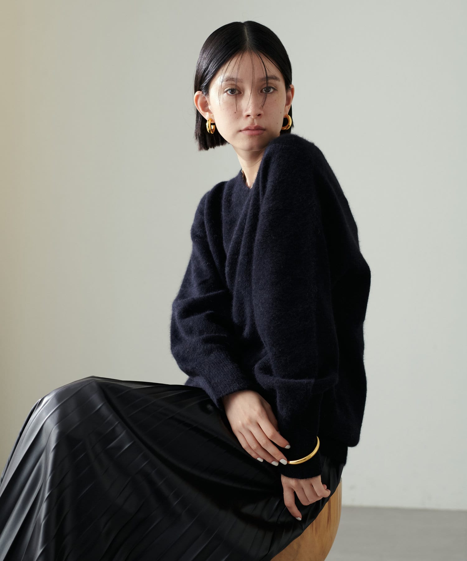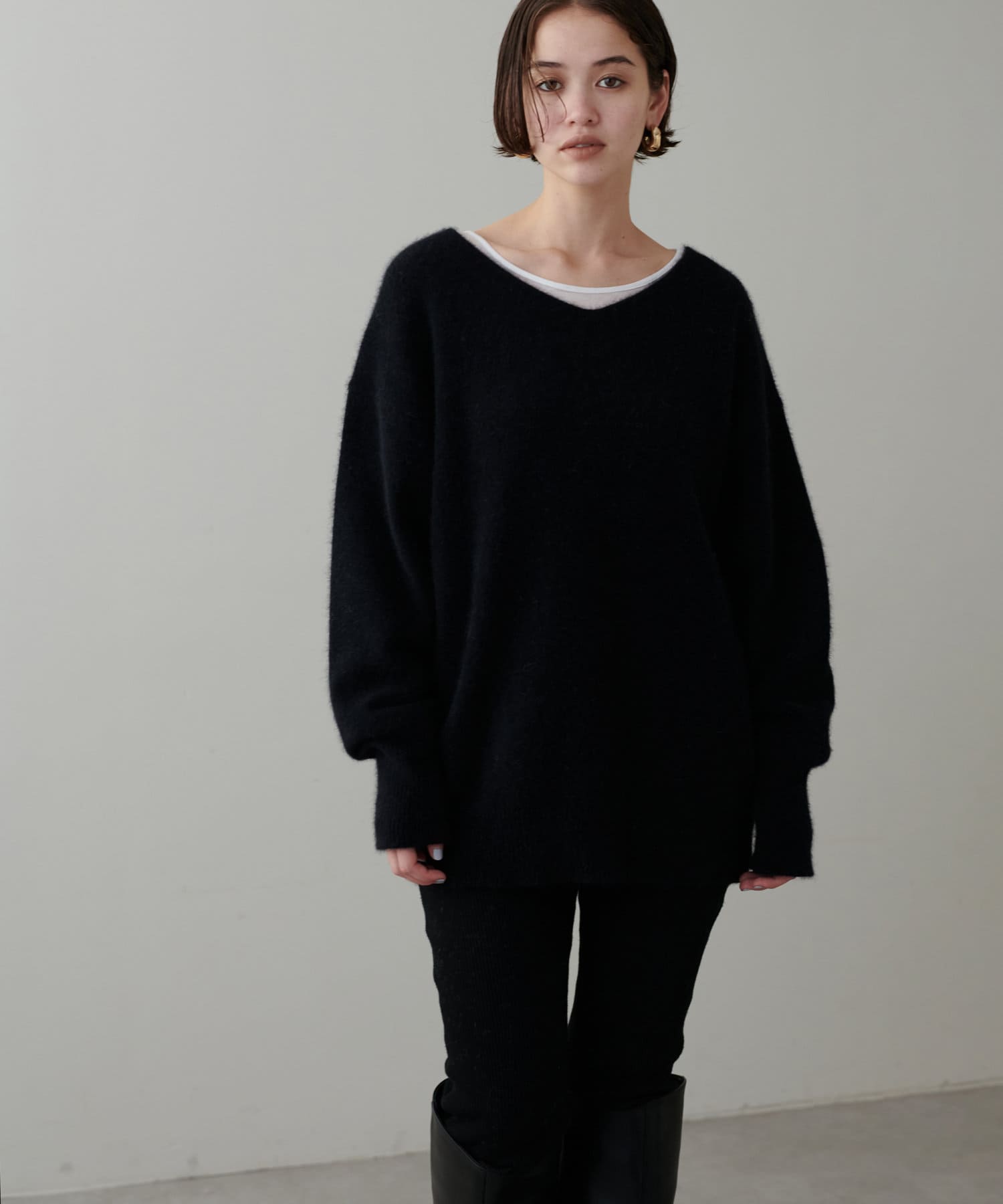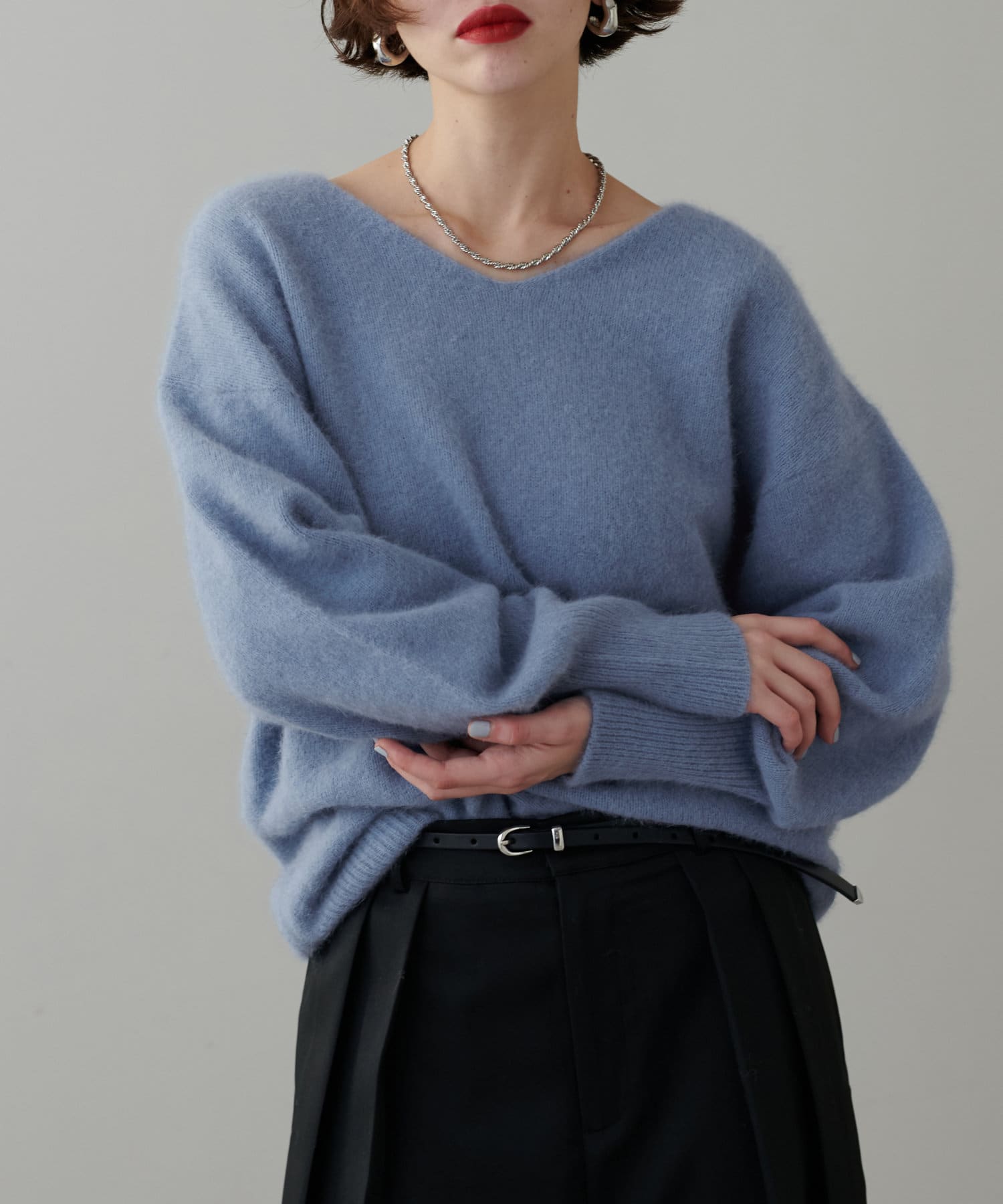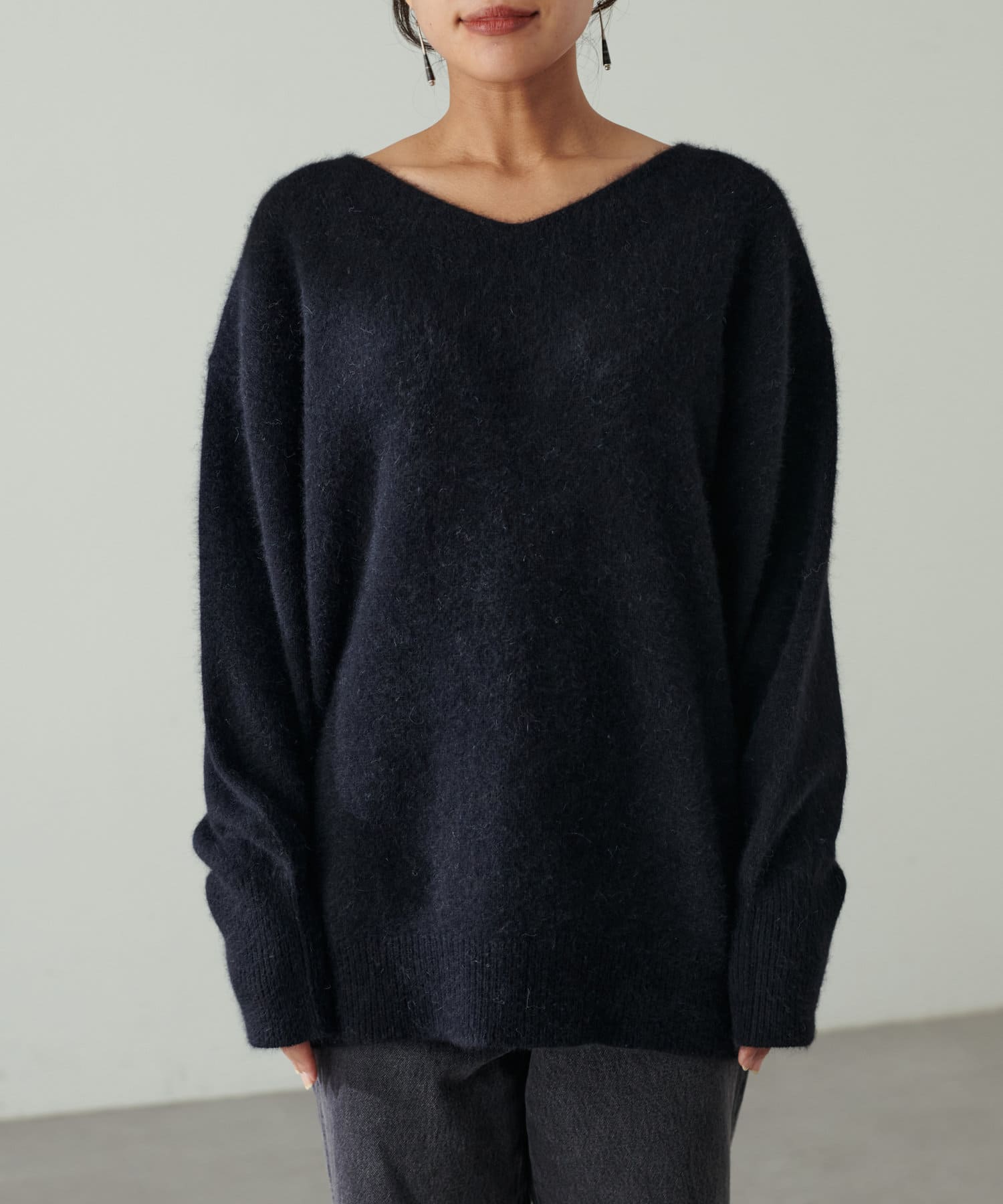 ゆるめのVネックデザインが顔回りをスッキリと見せてくれます。