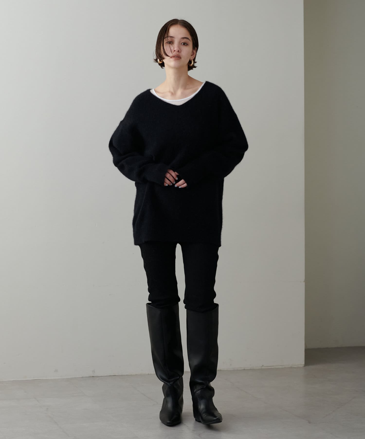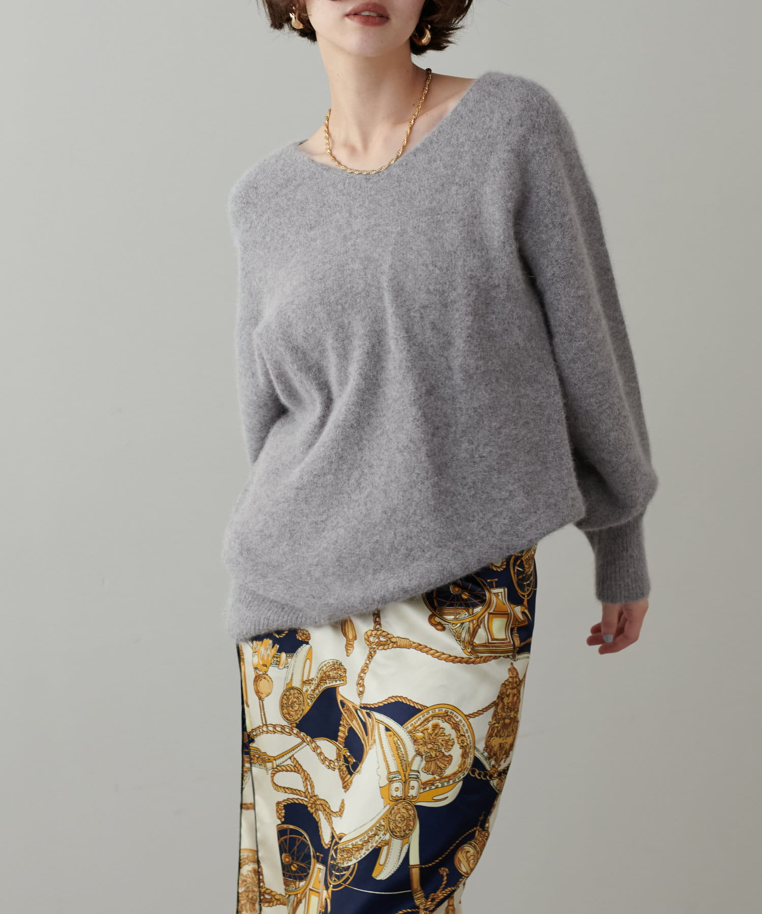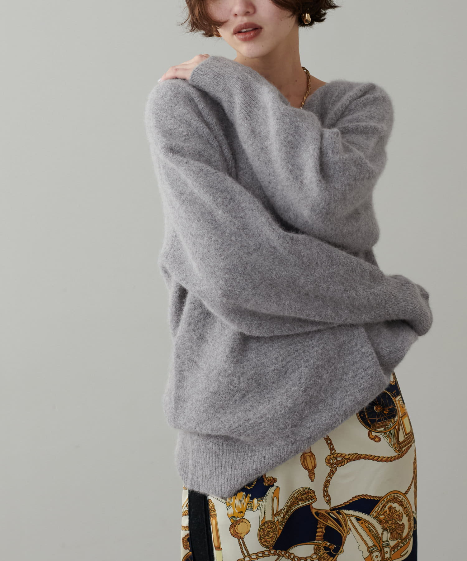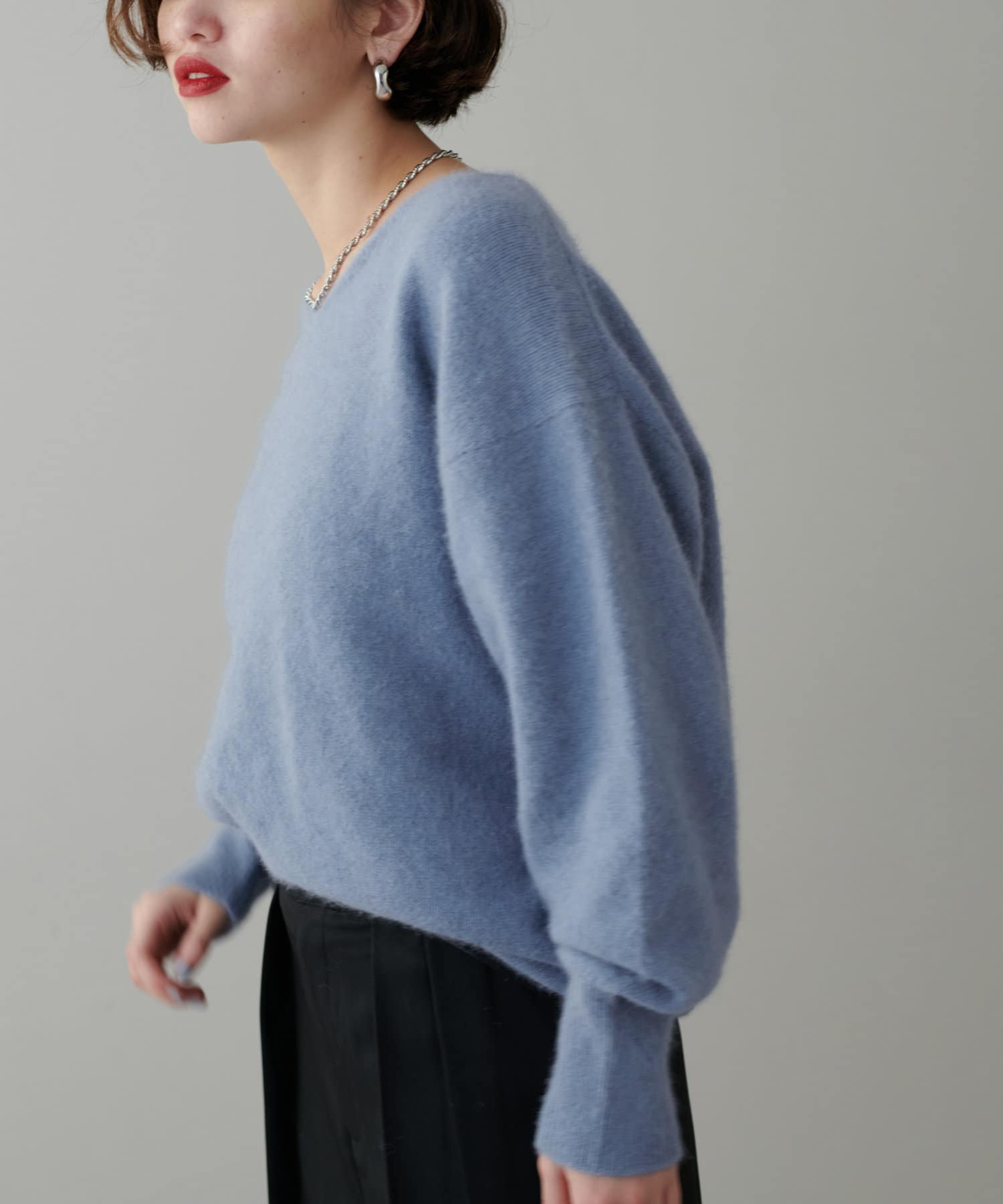 ゆるめのVネックデザインが顔回りをスッキリと見せてくれます。