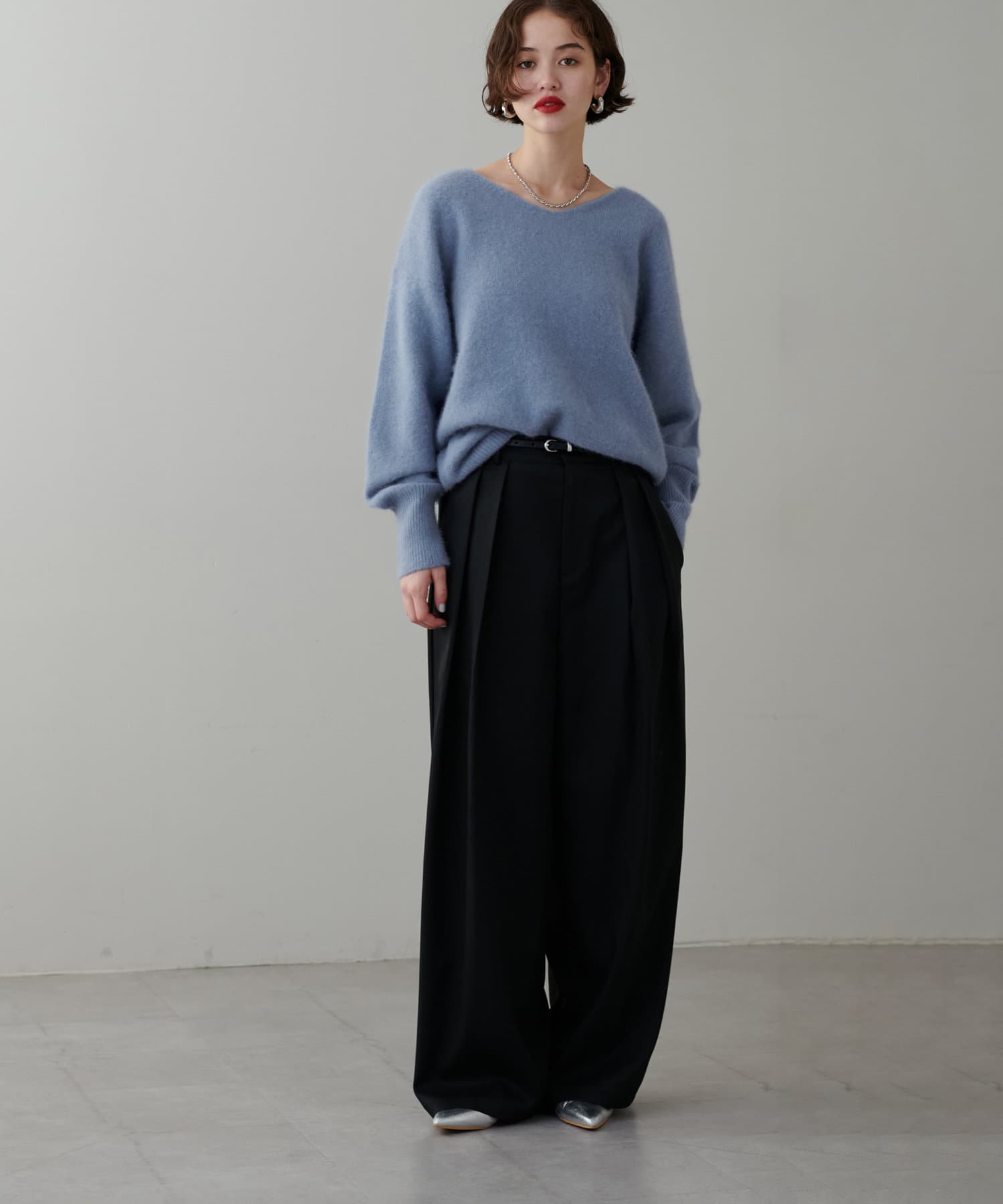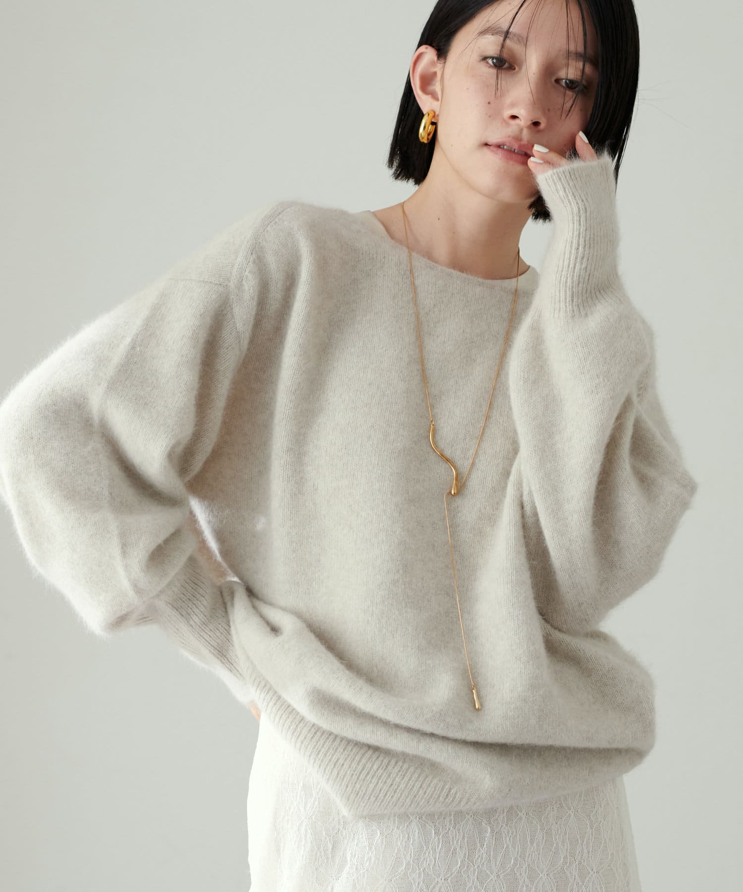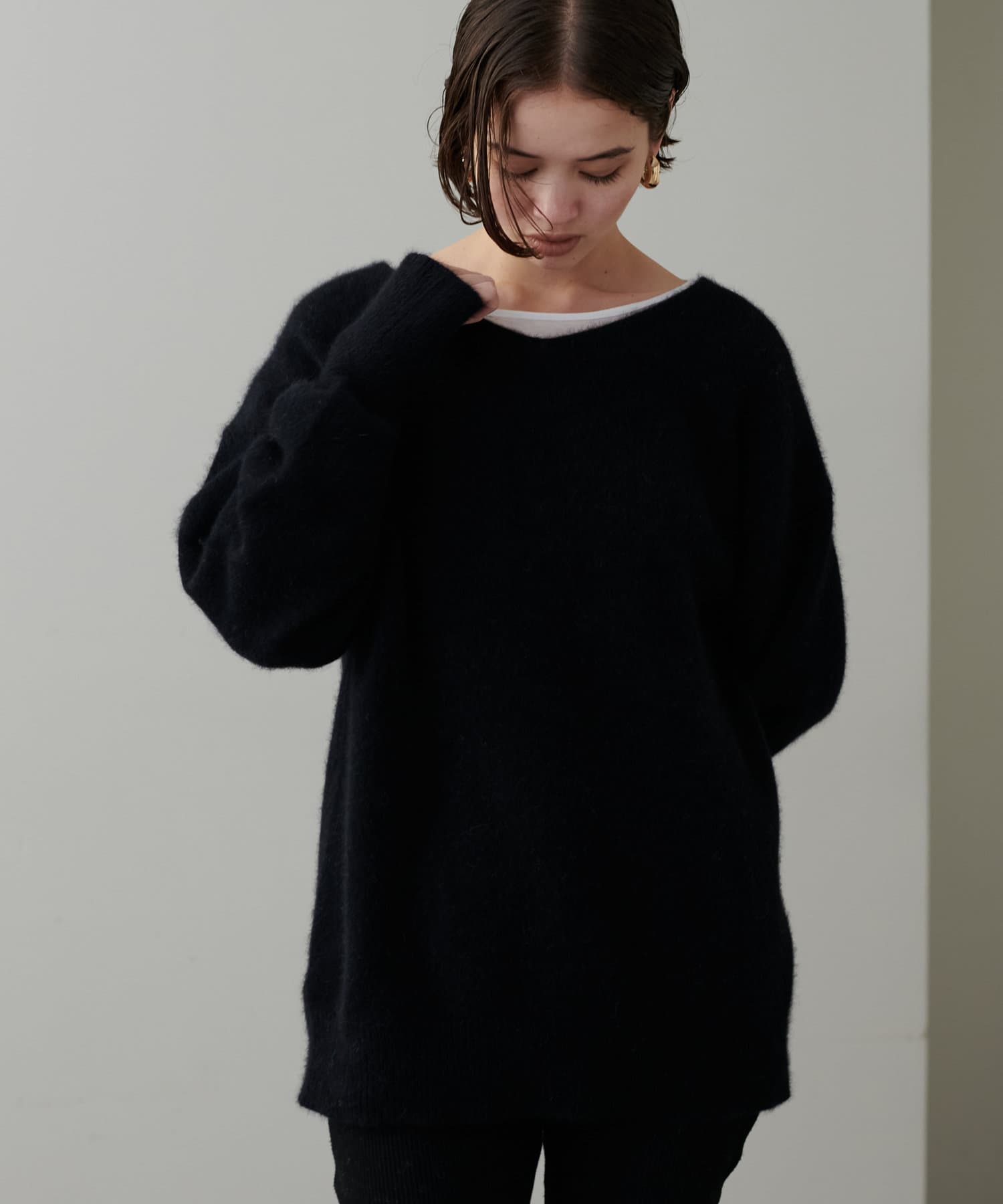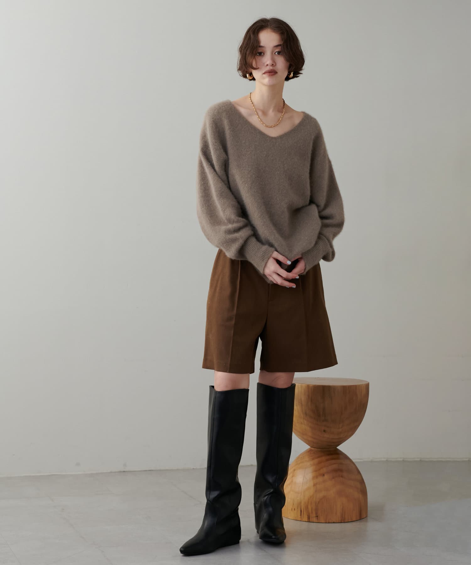 ゆるめのVネックデザインが顔回りをスッキリと見せてくれます。