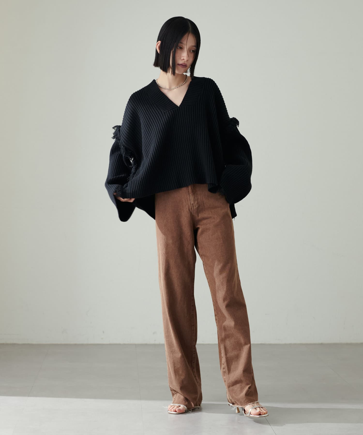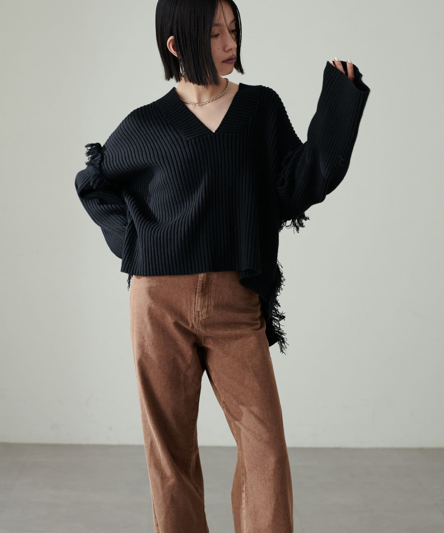 バルキーVネックニットプルオーバー