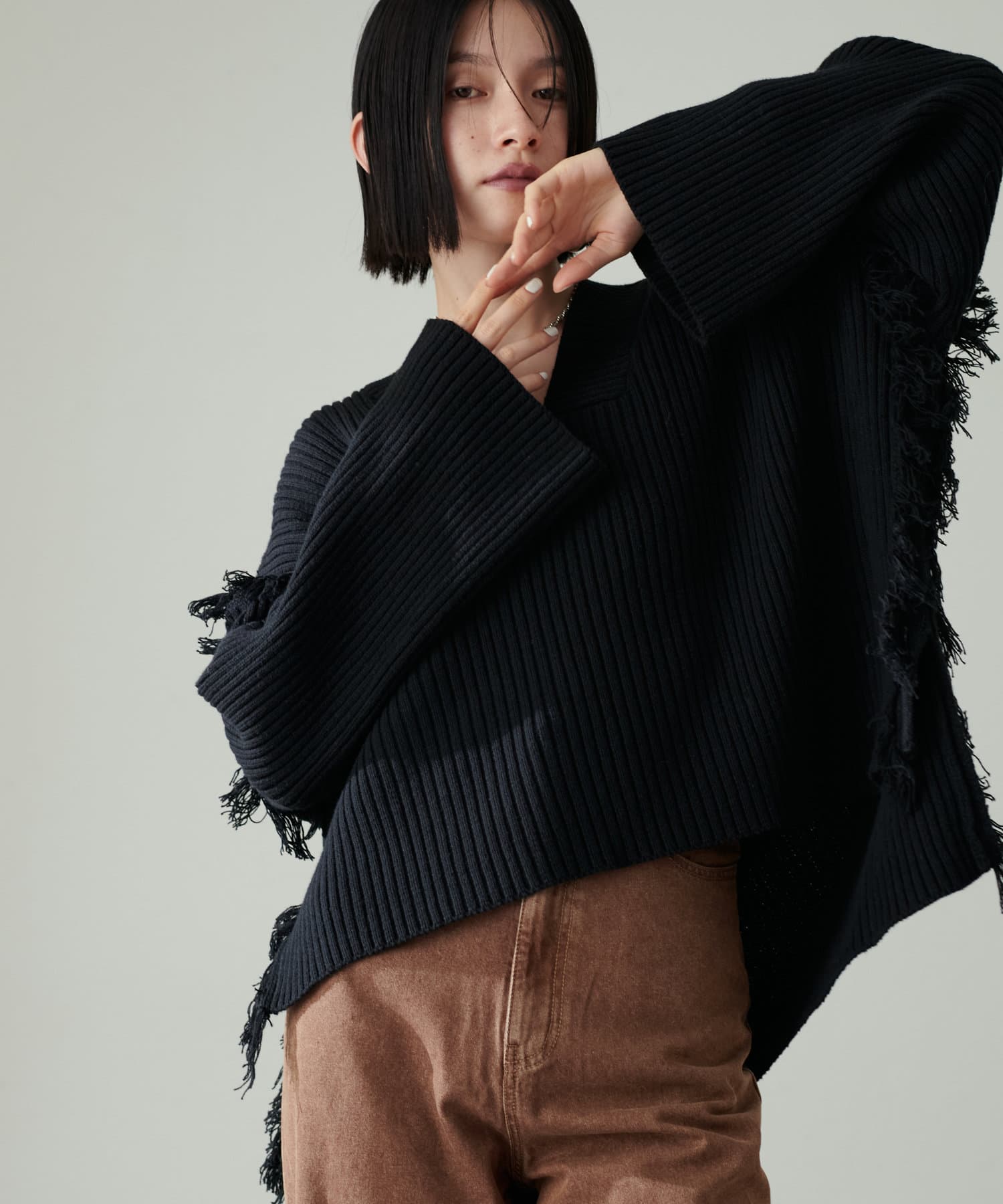 サイドにはフリンジをたっぷりと施し、味のあるデザインに仕上げました。