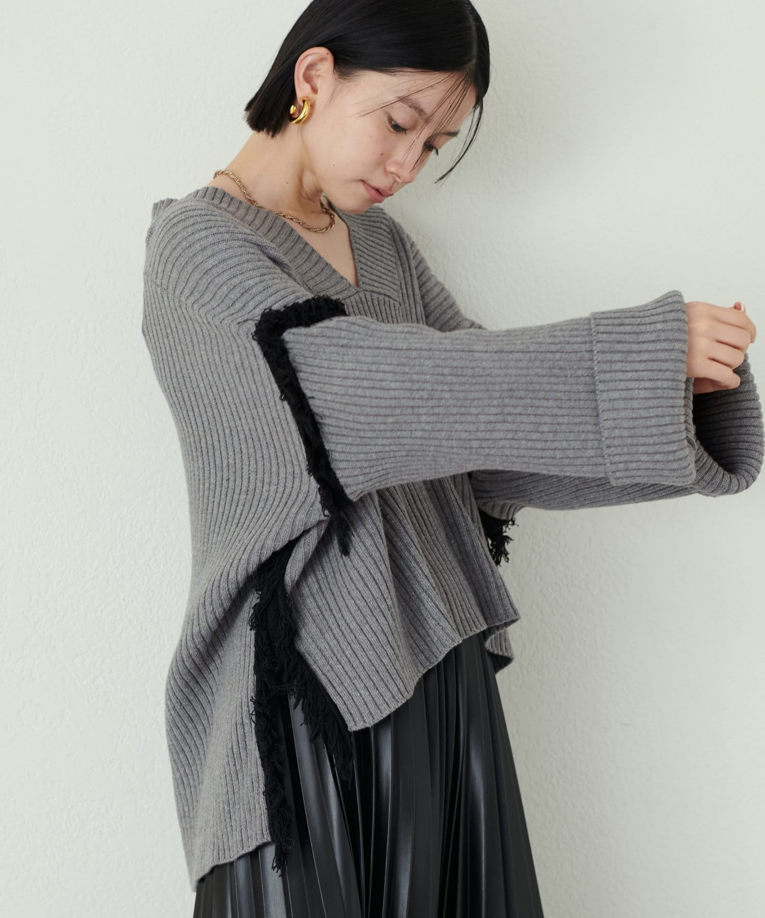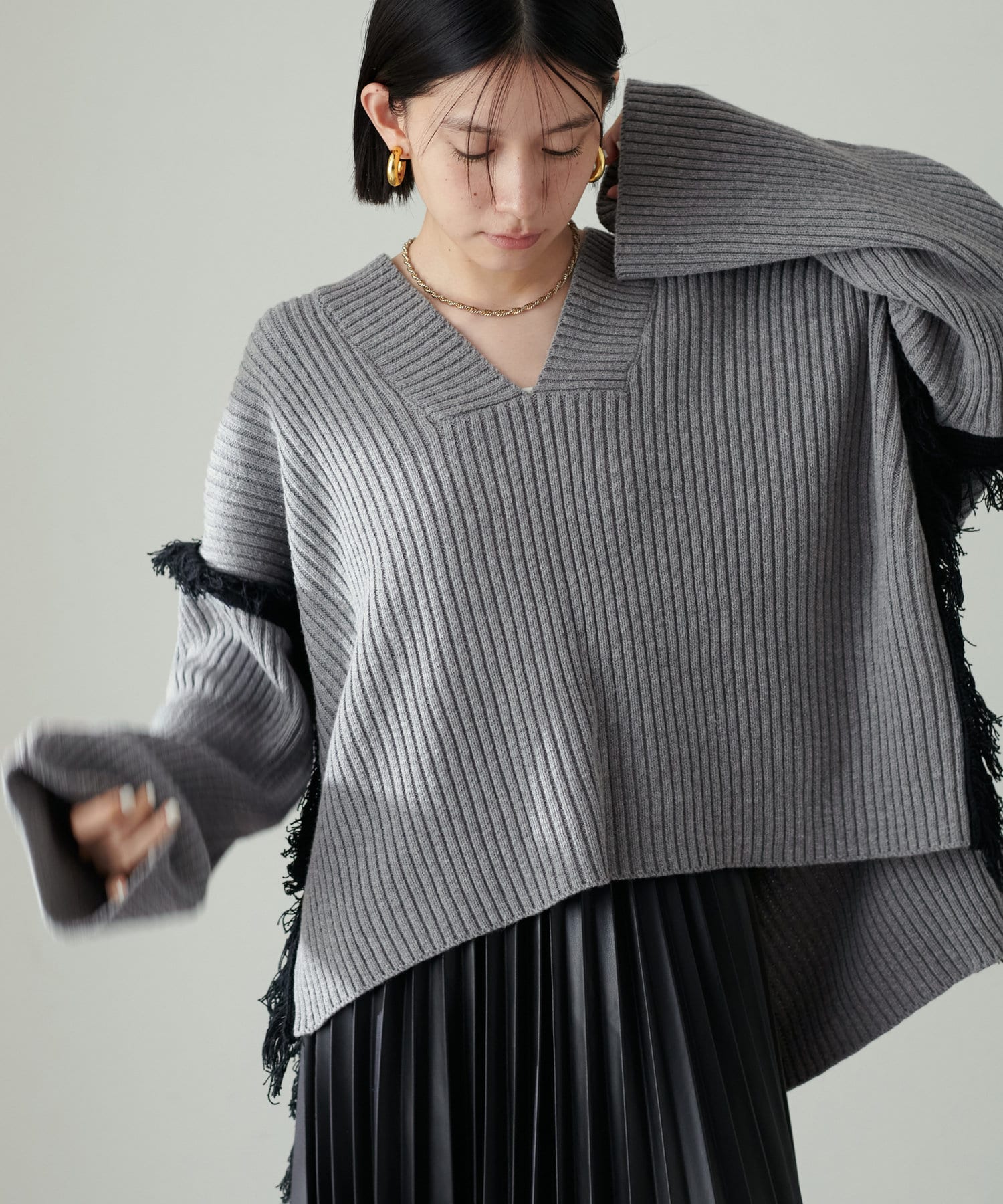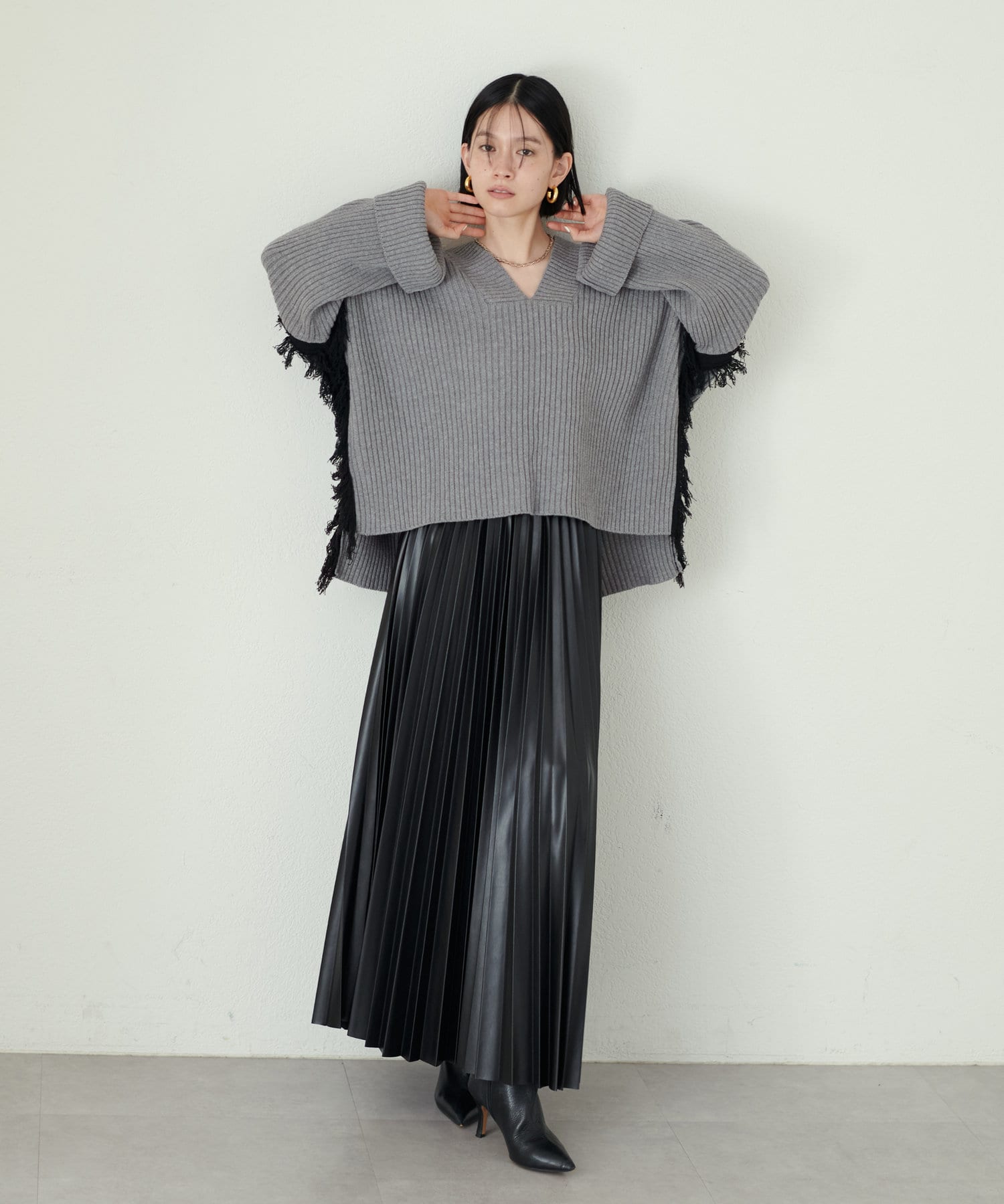 デニムやフェイクレザーのプリーツスカートと合わせて