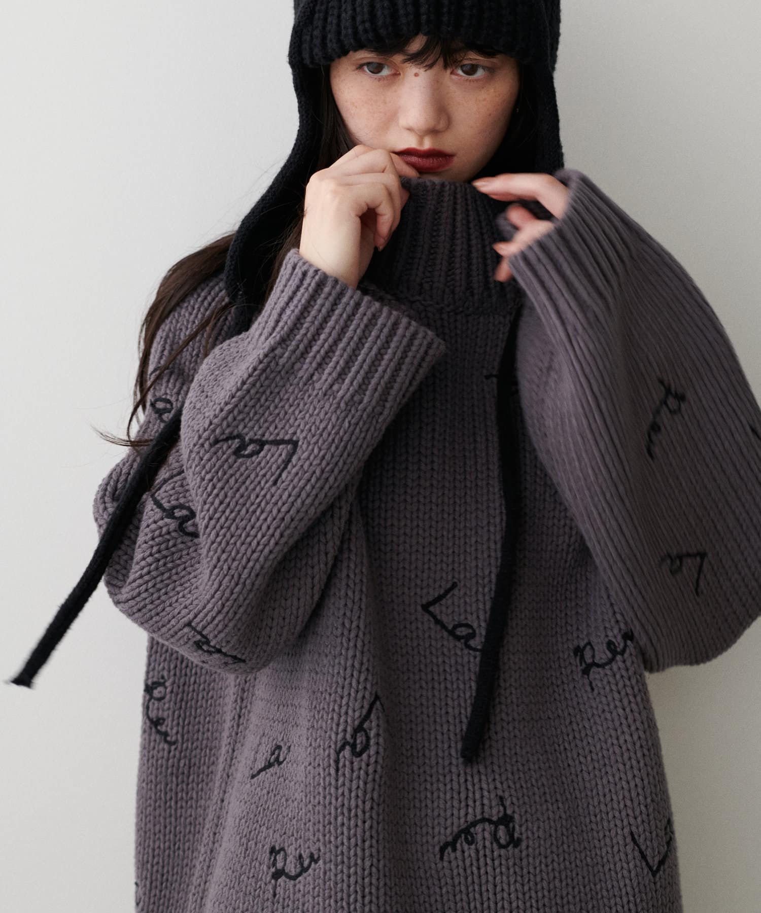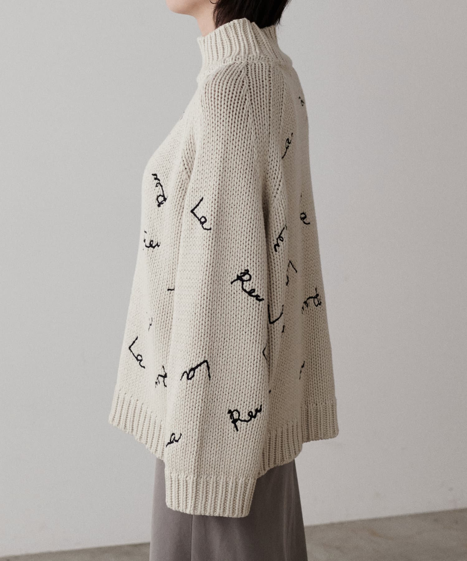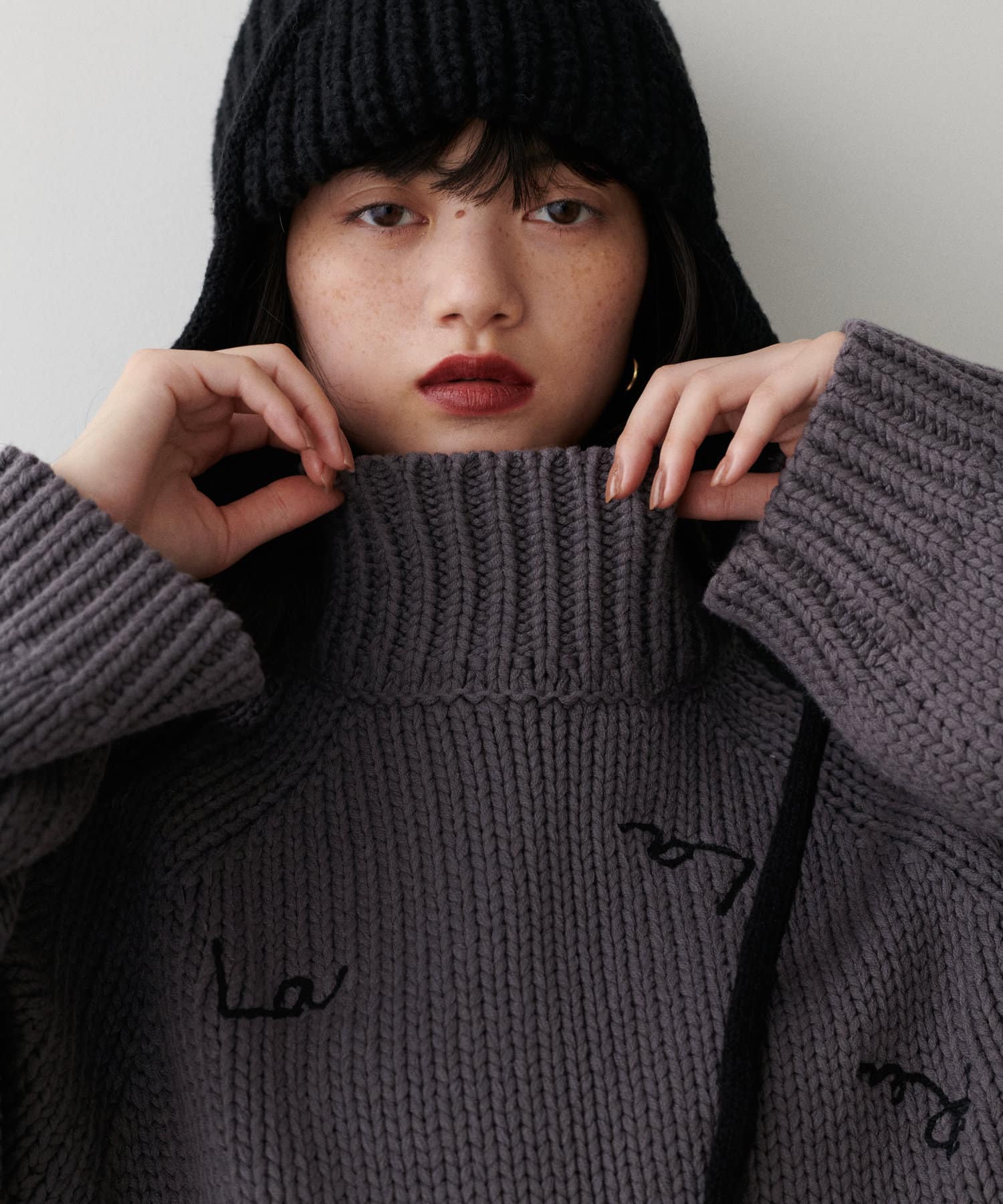 ハンド風に編み込まれたざっくりとした肉厚なニット素材。