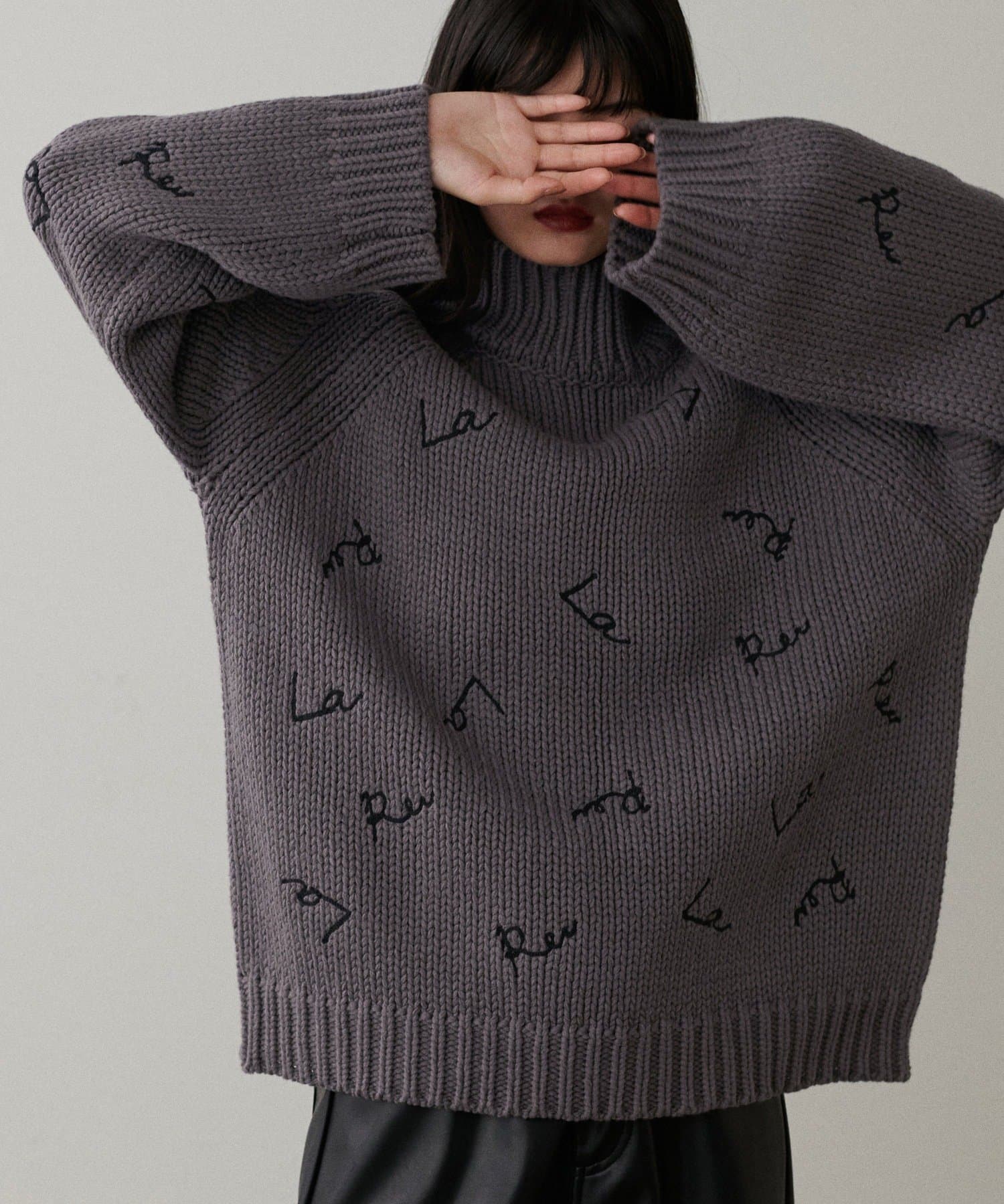 【LARUTA】ハンド風ロゴ刺繍ニット